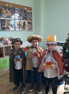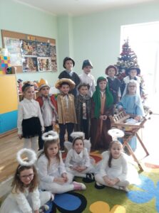 Dnia 23 grudnia dzieci z grupy „Pszczółki” przedstawiły jasełka dla swoich kolegów z grupy młodszej i zaproszonych gości. Głównym celem było wprowadzenie uczestników w radosną atmosferę Świąt Bożego Narodzenia. Przedstawienie było wyjątkowe, mali aktorzy we wspaniałych strojach prezentowali się doskonale. Dzieci przebrane w kostiumy postaci z jasełek recytowały teksty i interpretowały w […]