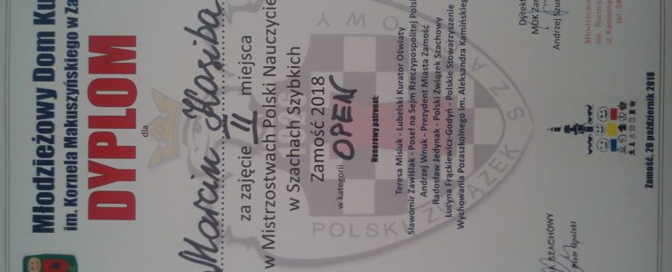 W sobotę, 20 października 2018 r. w Młodzieżowym Domu Kultury w Zamościu odbyły się Mistrzostwa Polski Nauczycieli w Szachach Szybkich. Patronat Honorowy nad imprezą objęli: Teresa Misiuk, Lubelski Kurator Oświaty, Sławomir Zawiślak, Poseł na Sejm RP, Andrzej Wnuk, Prezydent Miasta Zamość, Polskie Stowarzyszenie Wychowania Pozaszkolnego im. Aleksandra Kamińskiego w Krakowie, Aleksander Jedynak, Prezes Polskiego Związku […]