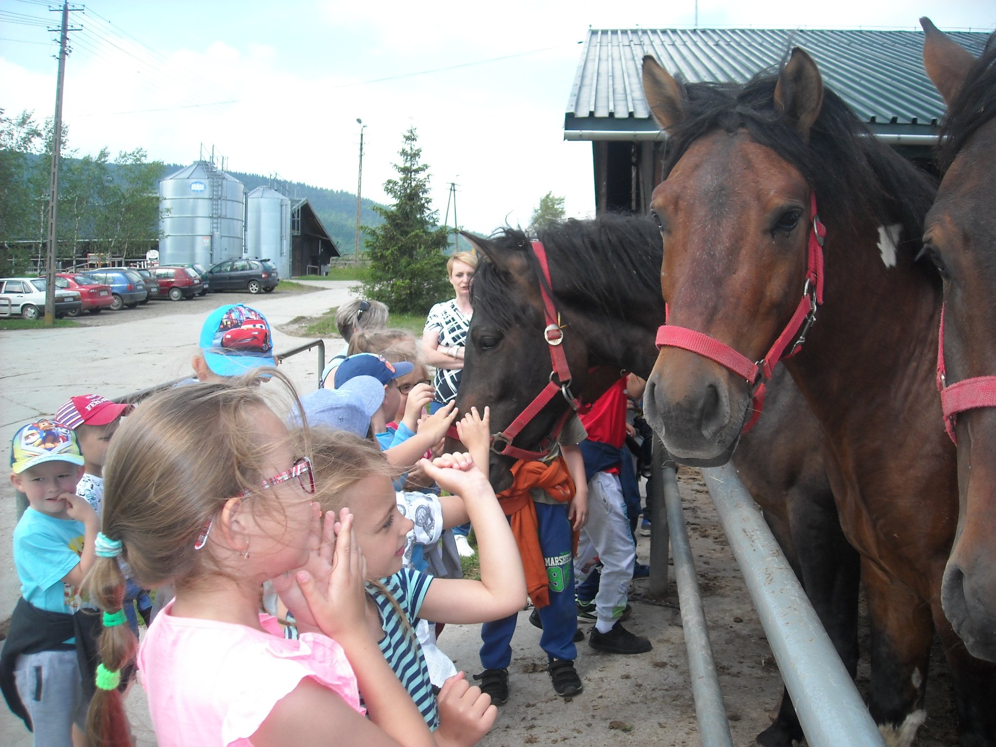 W dn. 06.06.2017 r. przedszkolaki wybrały się na wycieczkę do Regietowa. Pogoda dopisała, więc dzieci miło spędziły czas na świeżym powietrzu korzystając z atrakcji na placu zabaw. Miały możliwość indywidualnej przejażdżki na koniach, zwiedziły również Stadninę Koni Huculskich.