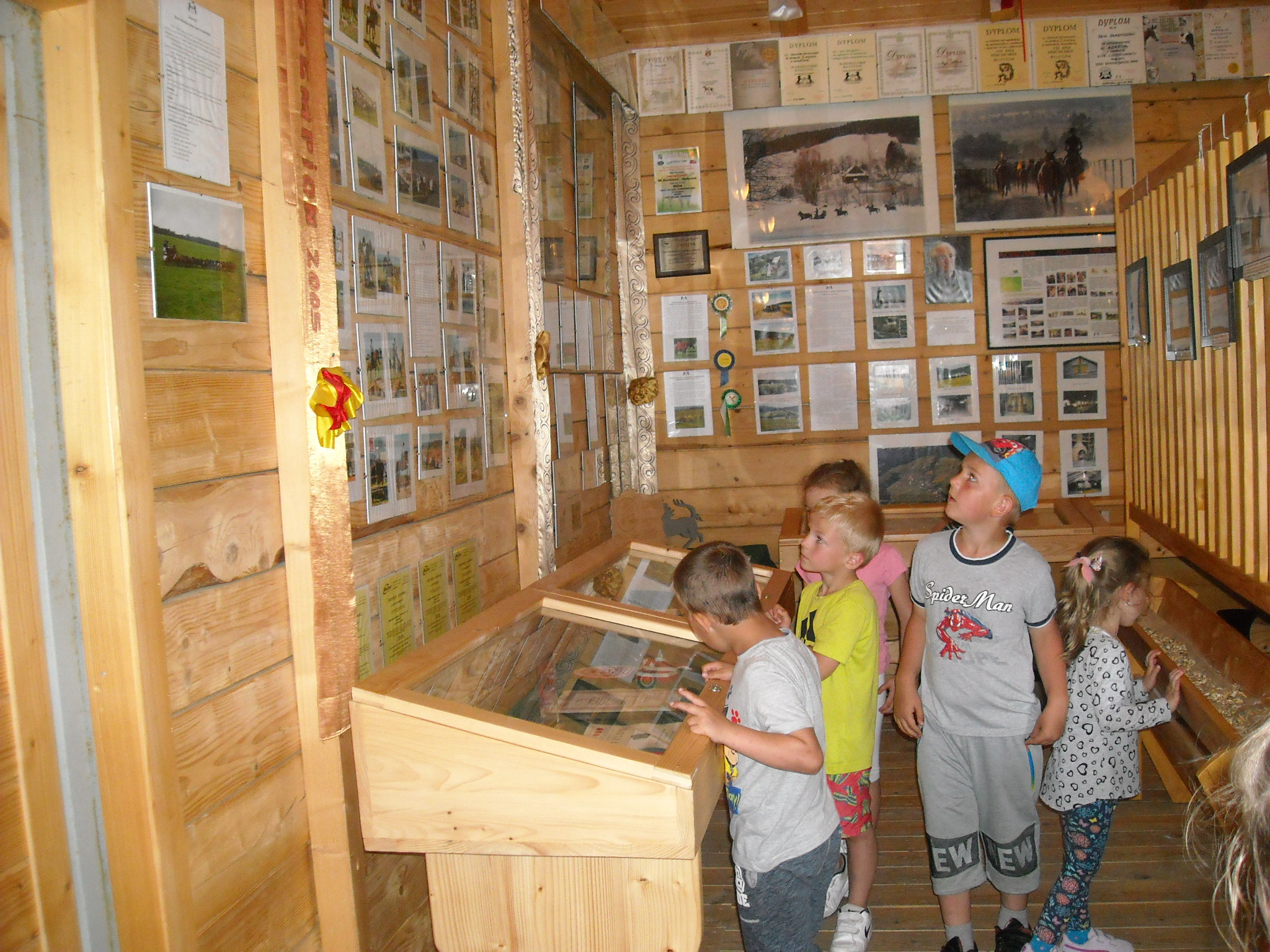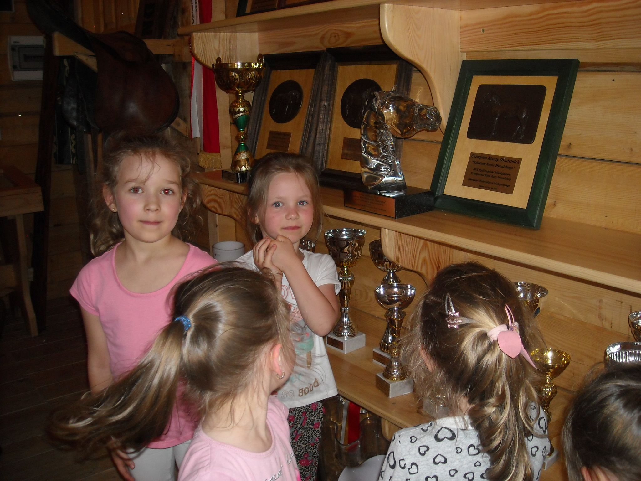 Na zakończenie dzieci oglądały puchary, dyplomy, medale zdobyte przez konie huculskie. Na pamiątkę pobytu każdy przedszkolak zakupił podkówkę na szczęście, magnes lub breloczek oczywiście z koniem.