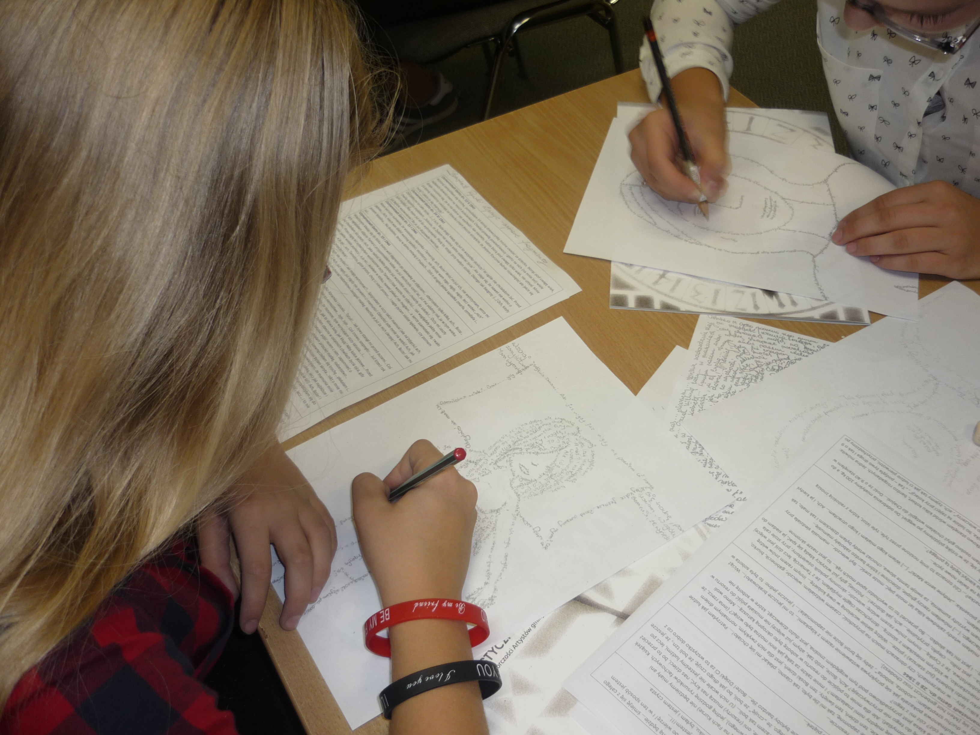 W trakcie zajęć, wszyscy uczestnicy mieli za zadanie wykonać techniką mikrografii portret Rywki Lipszyc – młodej dziewczyny, piszącej pamiętnik w łódzkim getcie.