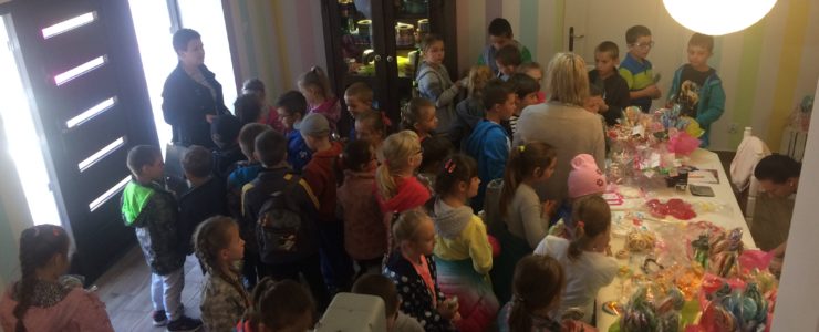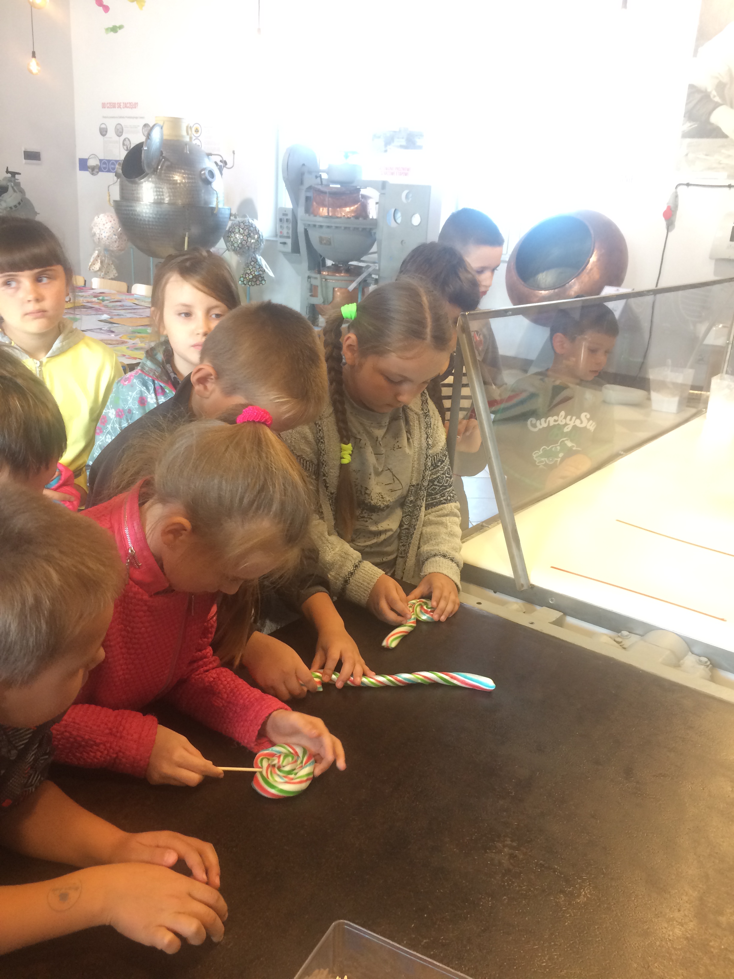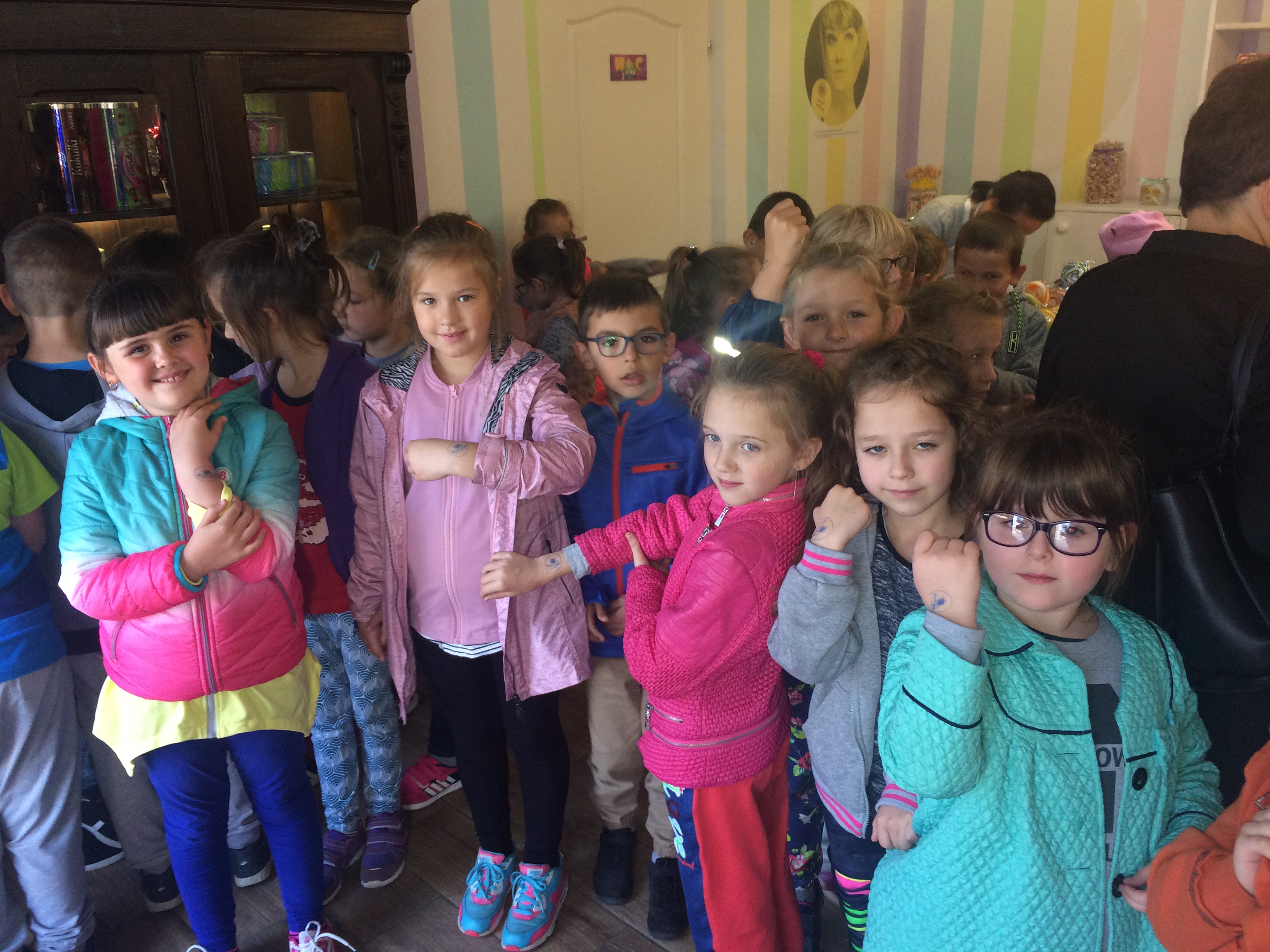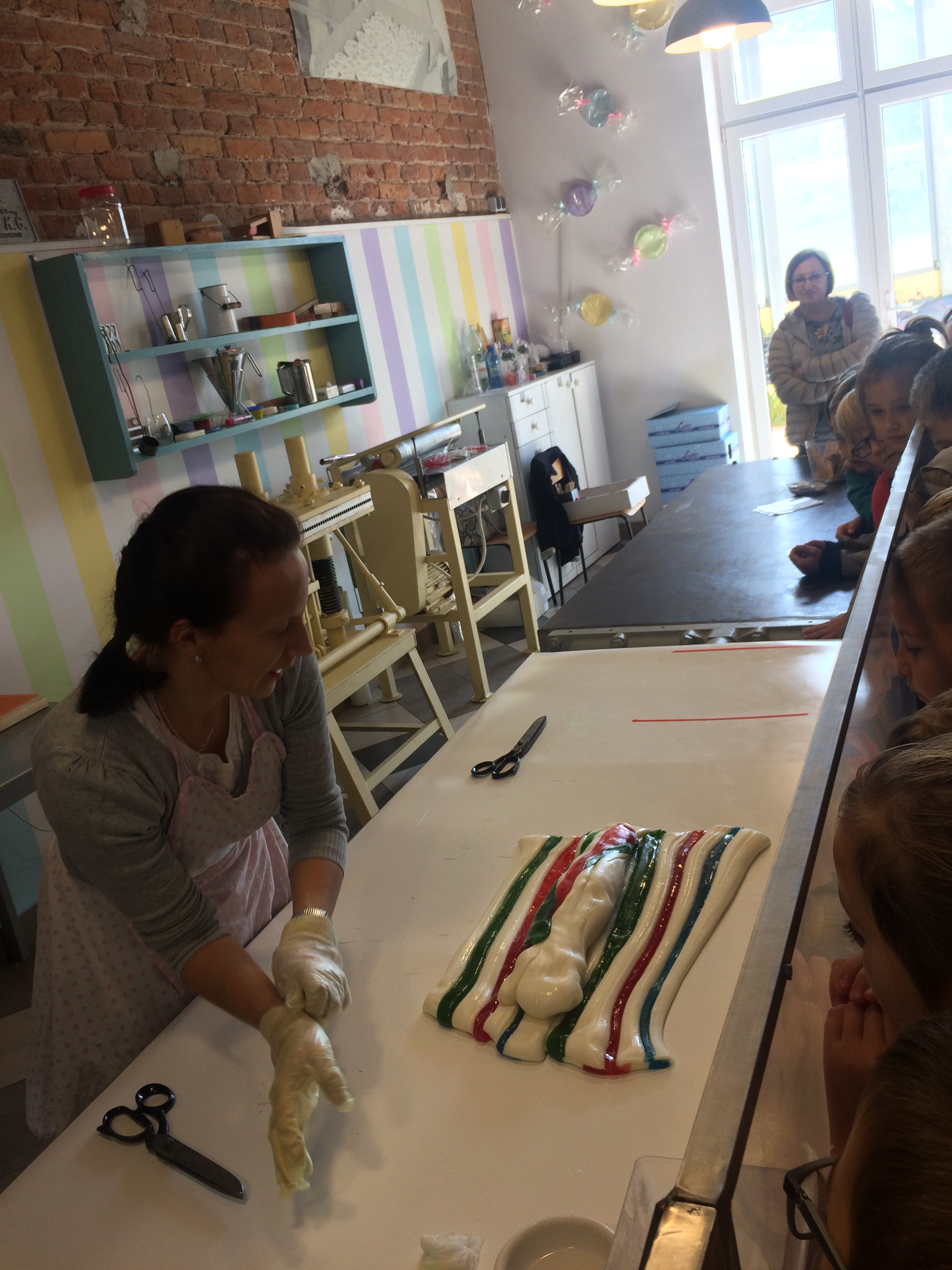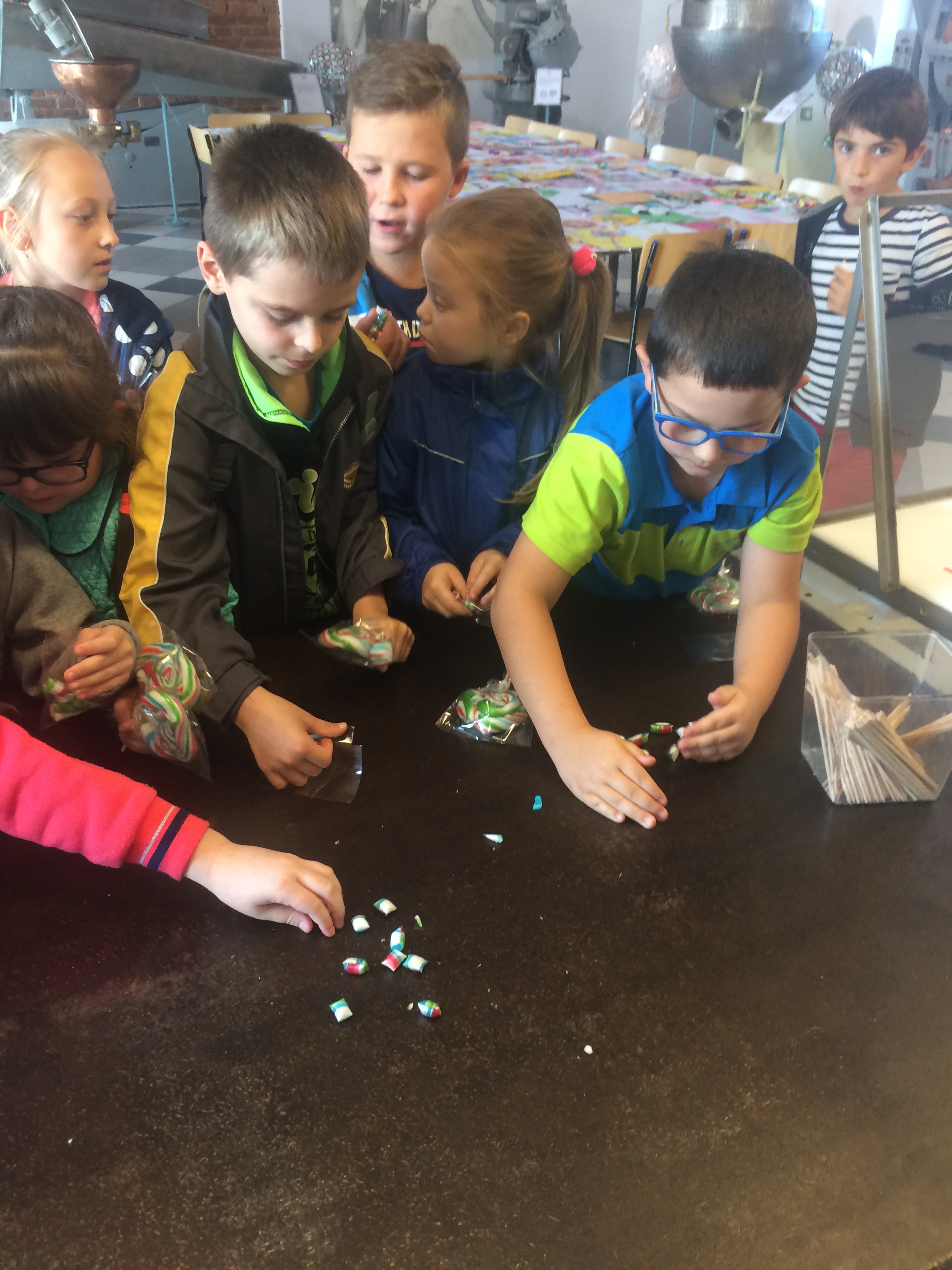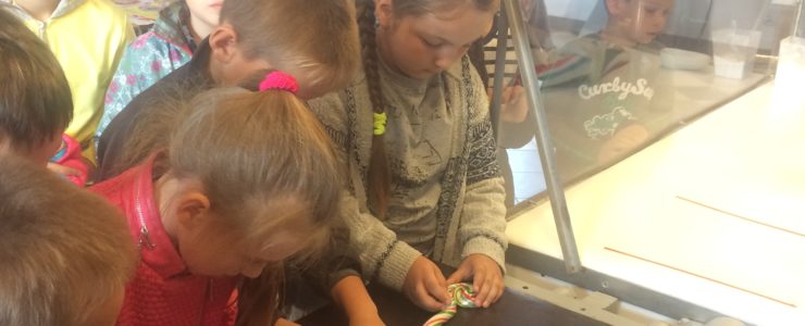 Wizyta w muzeum była również okazją do udziału wszystkich dzieci w ,,słodkich” warsztatach ,, ZRÓB SAM LIZAKA”, które były największą atrakcją i wzbudziły olbrzymie zainteresowanie wśród uczniów. Podczas warsztatów dzieci poznały pracę cukiernika, obserwowały tworzenie słodkiej masy, wybierały barwniki, zaznajomiły się z procesem powstawania i łączenia kolorowych mas, a następnie własnoręcznie wykonywały i pakowały swoje niepowtarzalne, wykonane z wielką precyzją i przejęciem kolorowe, słodkie lizaki. Na zakończenie warsztatów każdy z uczestników otrzymał na pamiątkę piękny dyplom wraz z gratulacjami.
