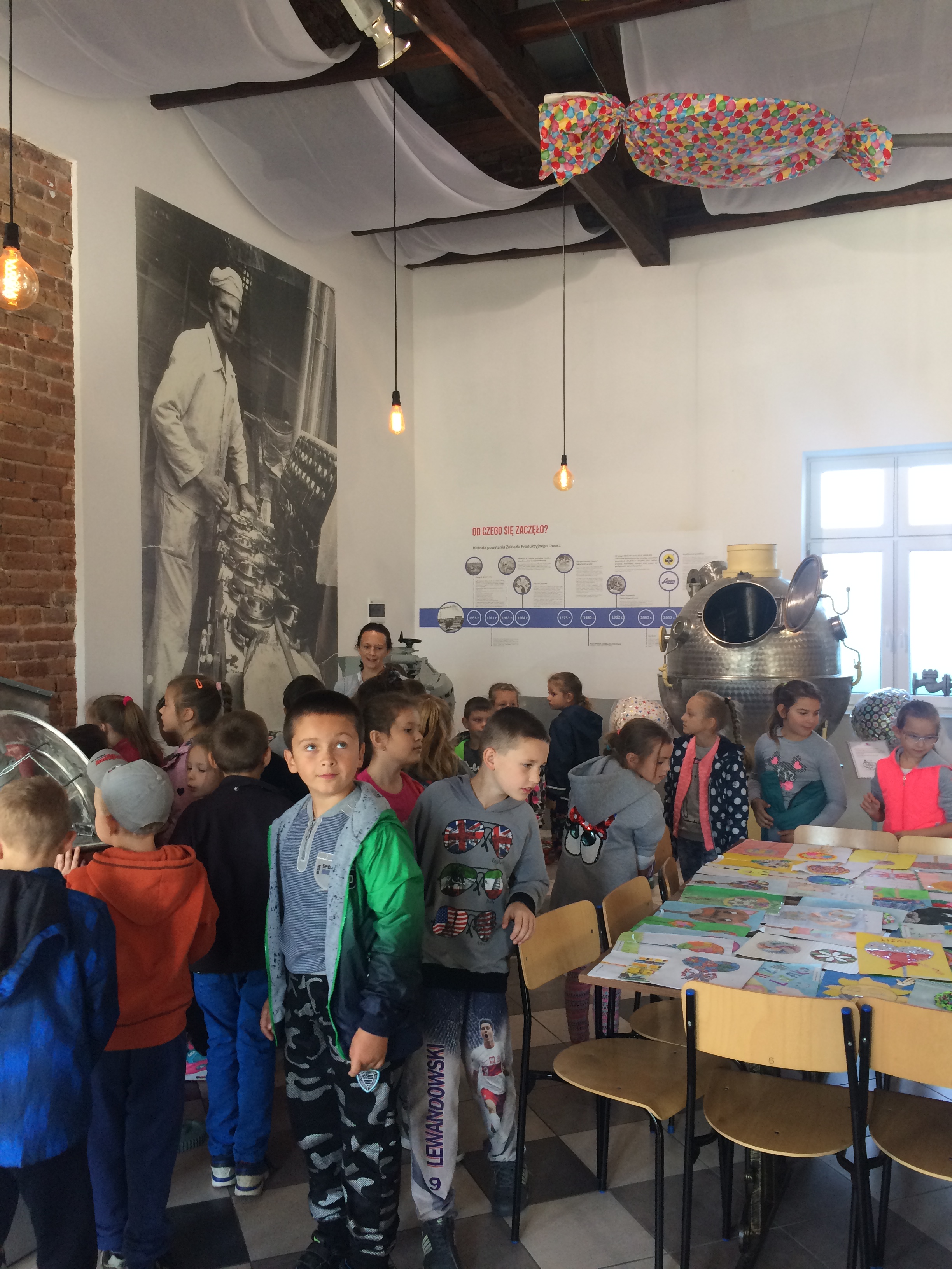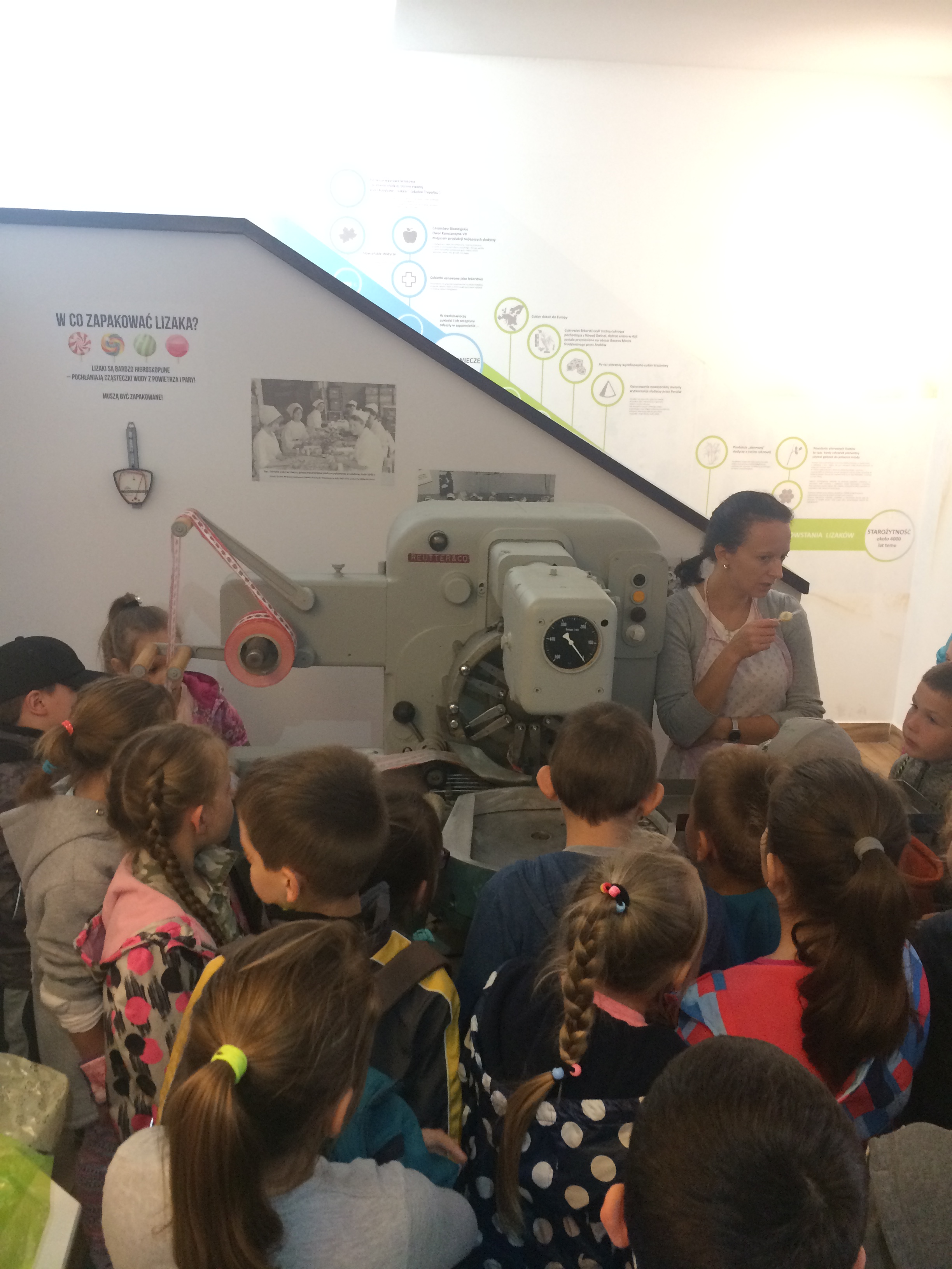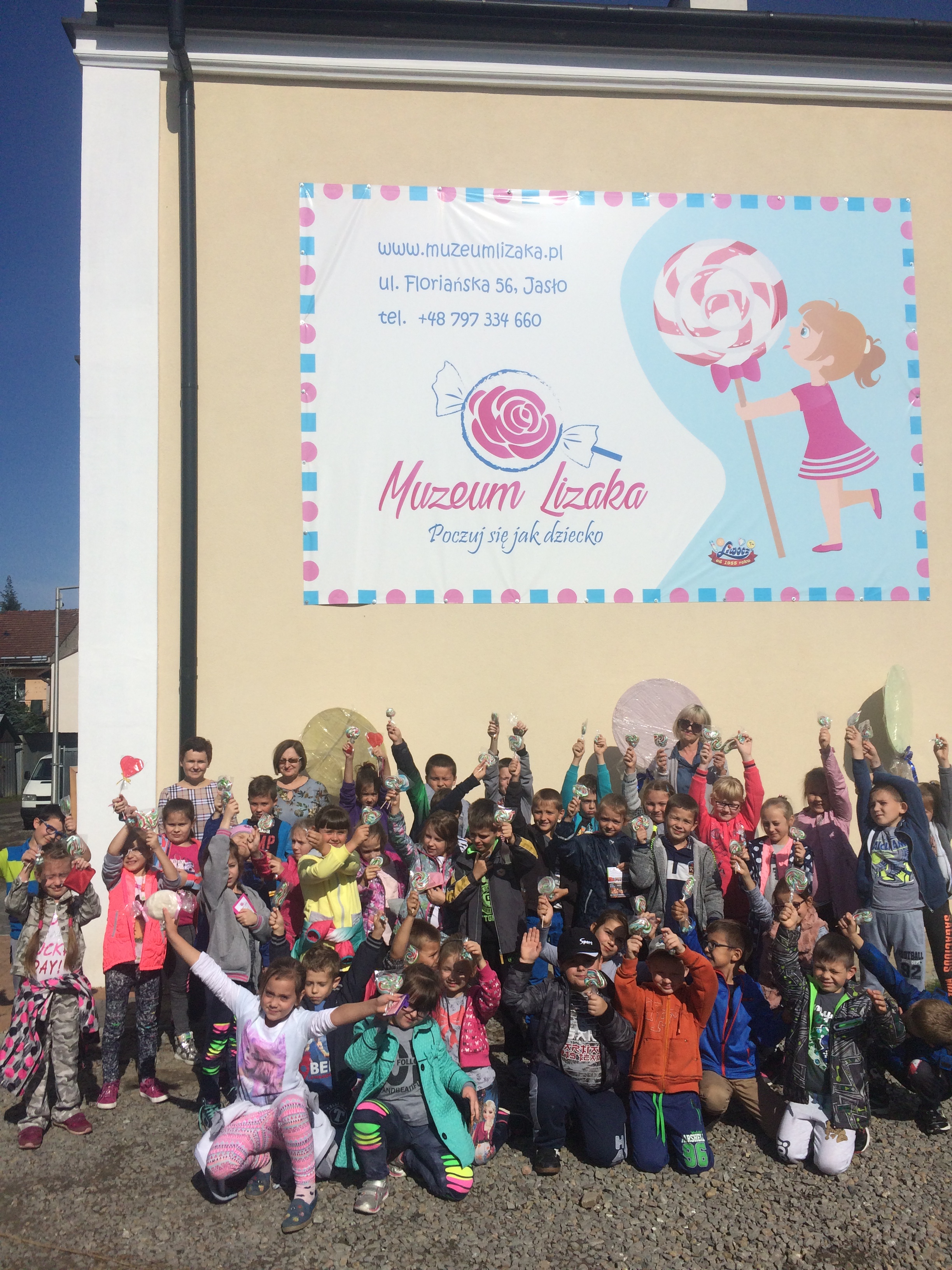 Kolejnym punktem naszej wycieczki było zwiedzanie Jasielskiego Muzeum LIZAKA, które jest jedynym miejscem dziedzictwa technologii cukiernictwa na Podkarpaciu. W muzeum dzieci poznały historię cukiernictwa i proces technologiczny powstawania lizaka. Mogły poczuć różne aromaty, dotknąć oraz posmakować różnego rodzaje cukrów wykorzystywanych do produkcji słodyczy. Ponadto zobaczyły ekspozycję maszyn i urządzeń niezbędnych w wytwarzaniu karmelu i pakowaniu lizaków, a także podziwiały piękne, stare fotografie z nieistniejącego już Jasielskiego Zakładu Cukierniczego LIWOCZ.
