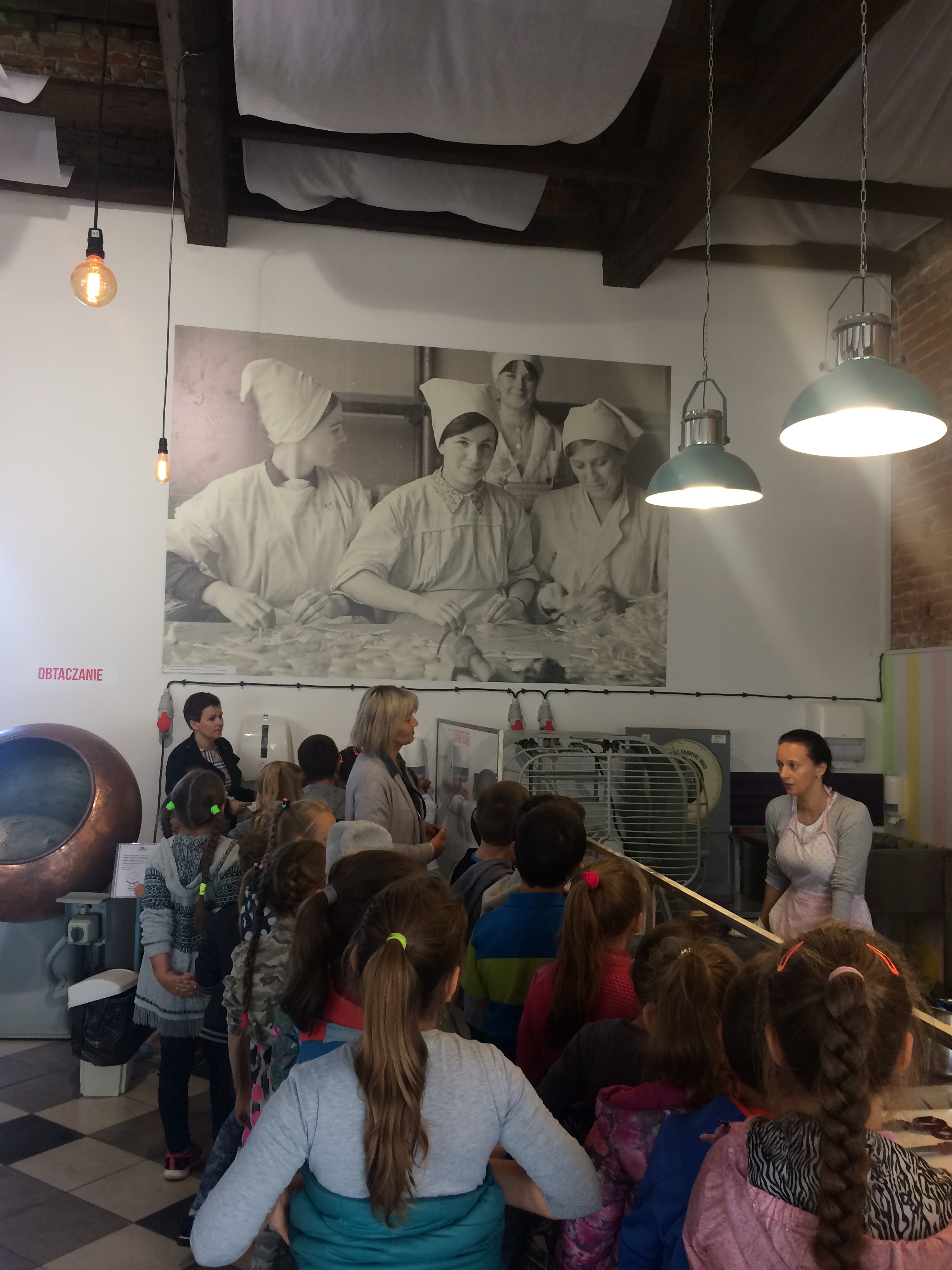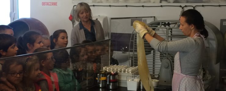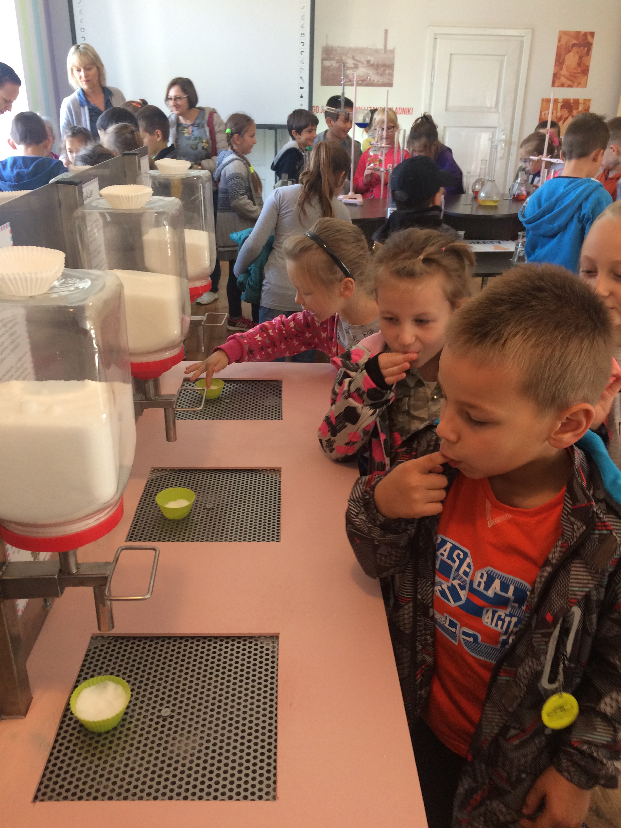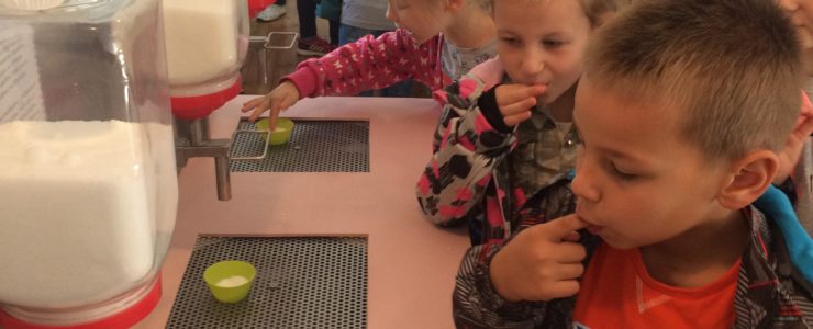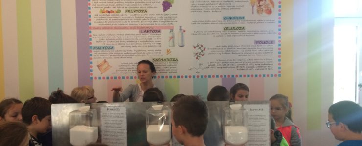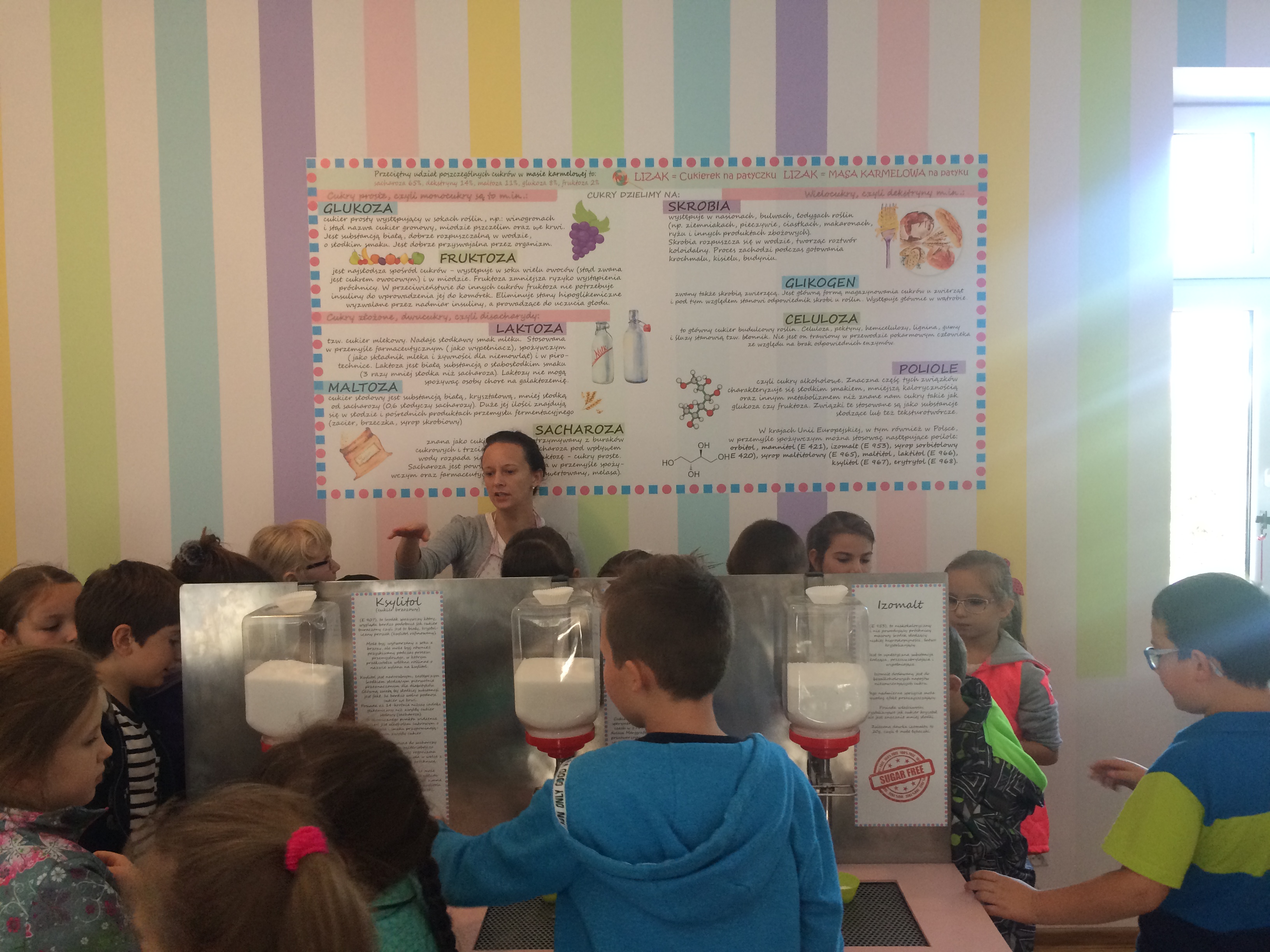 Kolejnym punktem naszej wycieczki było zwiedzanie Jasielskiego Muzeum LIZAKA, które jest jedynym miejscem dziedzictwa technologii cukiernictwa na Podkarpaciu. W muzeum dzieci poznały historię cukiernictwa i proces technologiczny powstawania lizaka. Mogły poczuć różne aromaty, dotknąć oraz posmakować różnego rodzaje cukrów wykorzystywanych do produkcji słodyczy. Ponadto zobaczyły ekspozycję maszyn i urządzeń niezbędnych w wytwarzaniu karmelu i pakowaniu lizaków, a także podziwiały piękne, stare fotografie z nieistniejącego już Jasielskiego Zakładu Cukierniczego LIWOCZ.