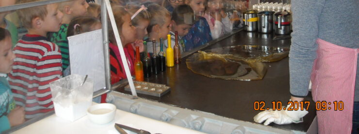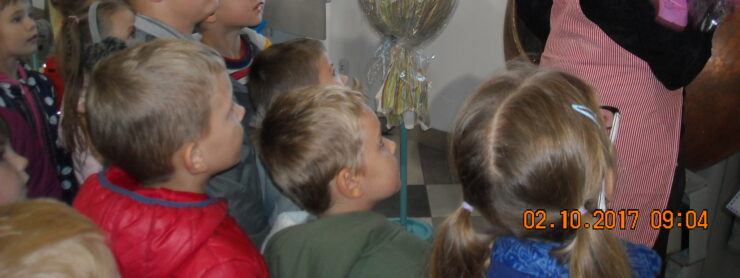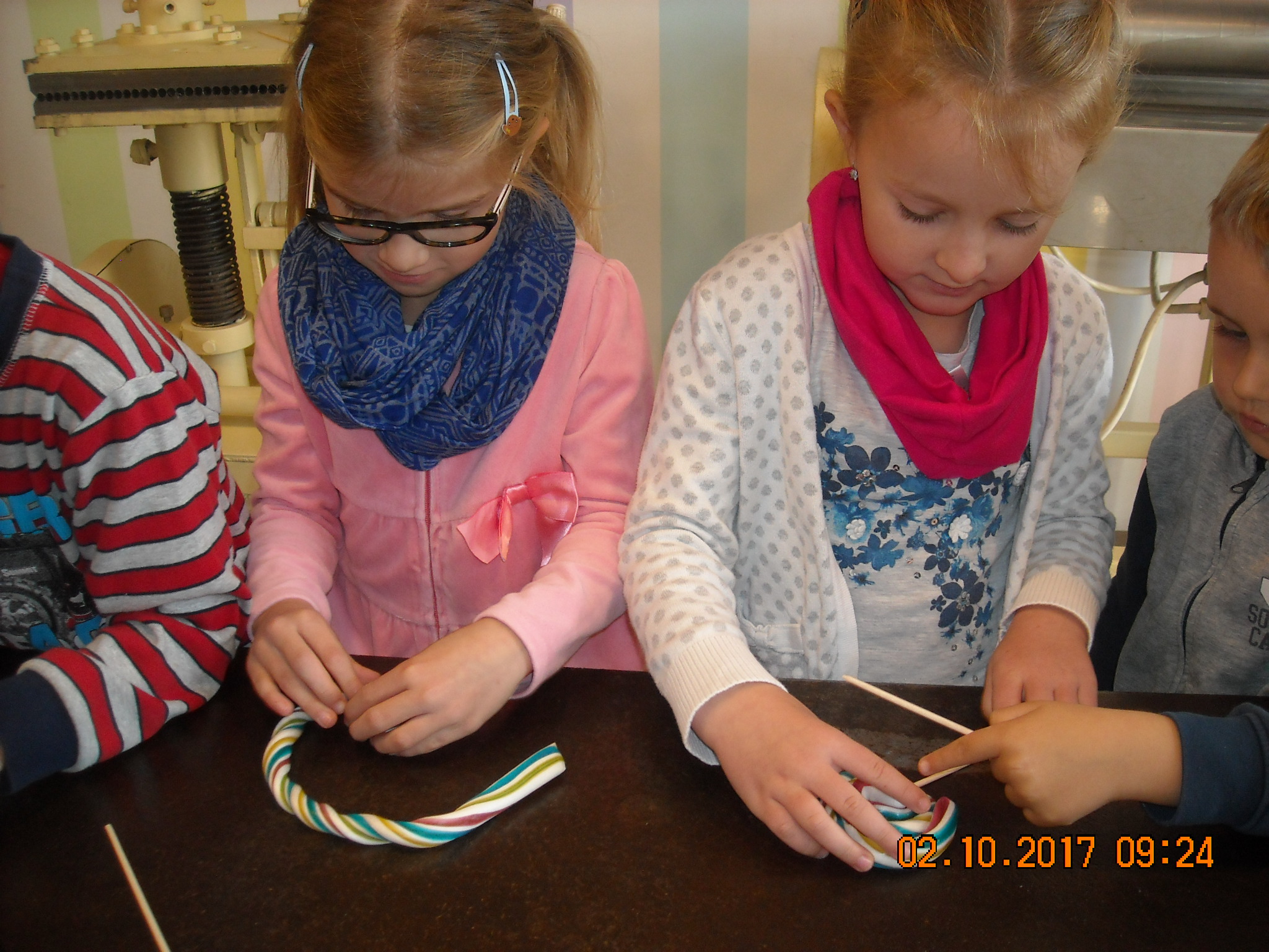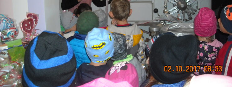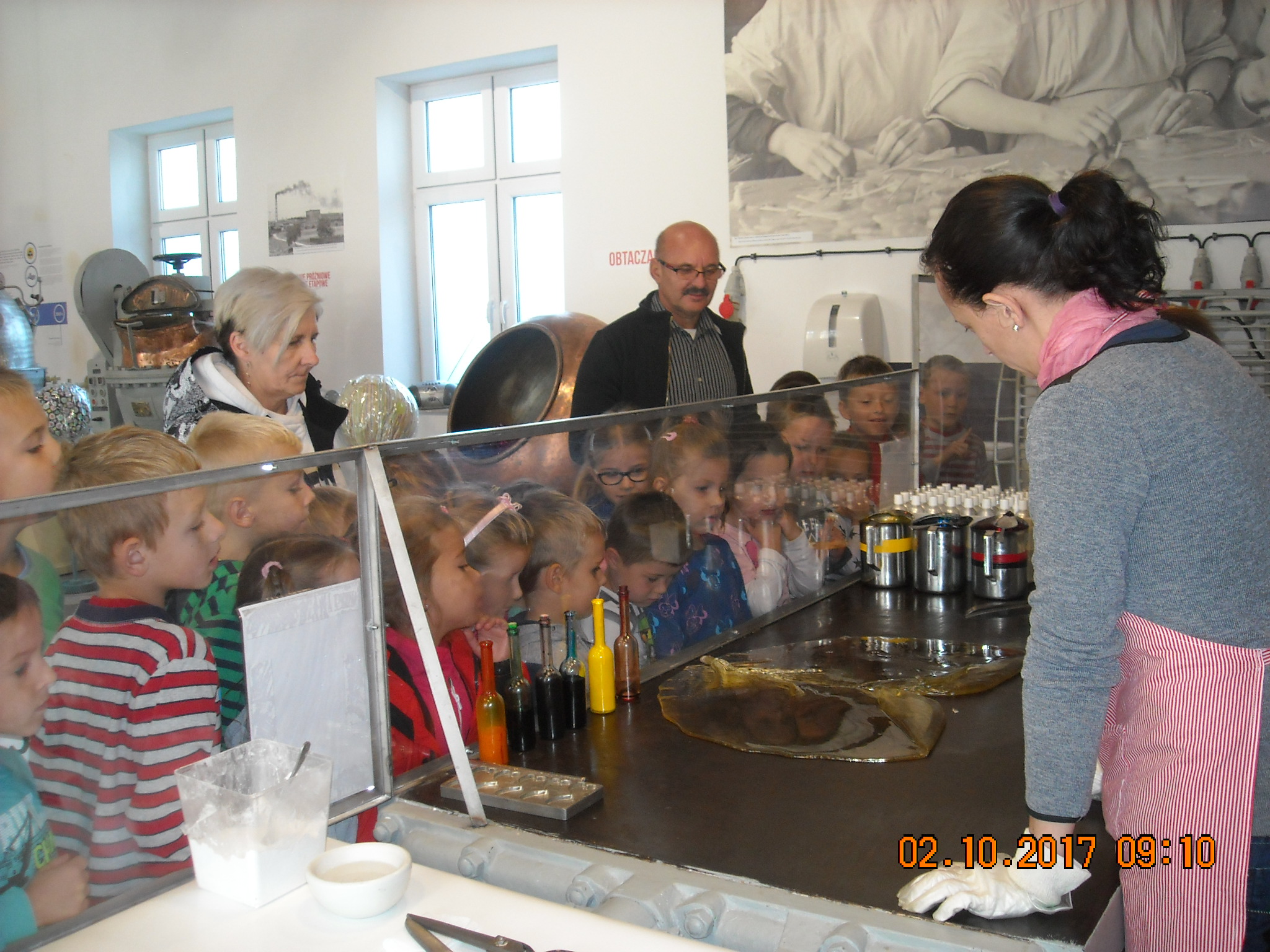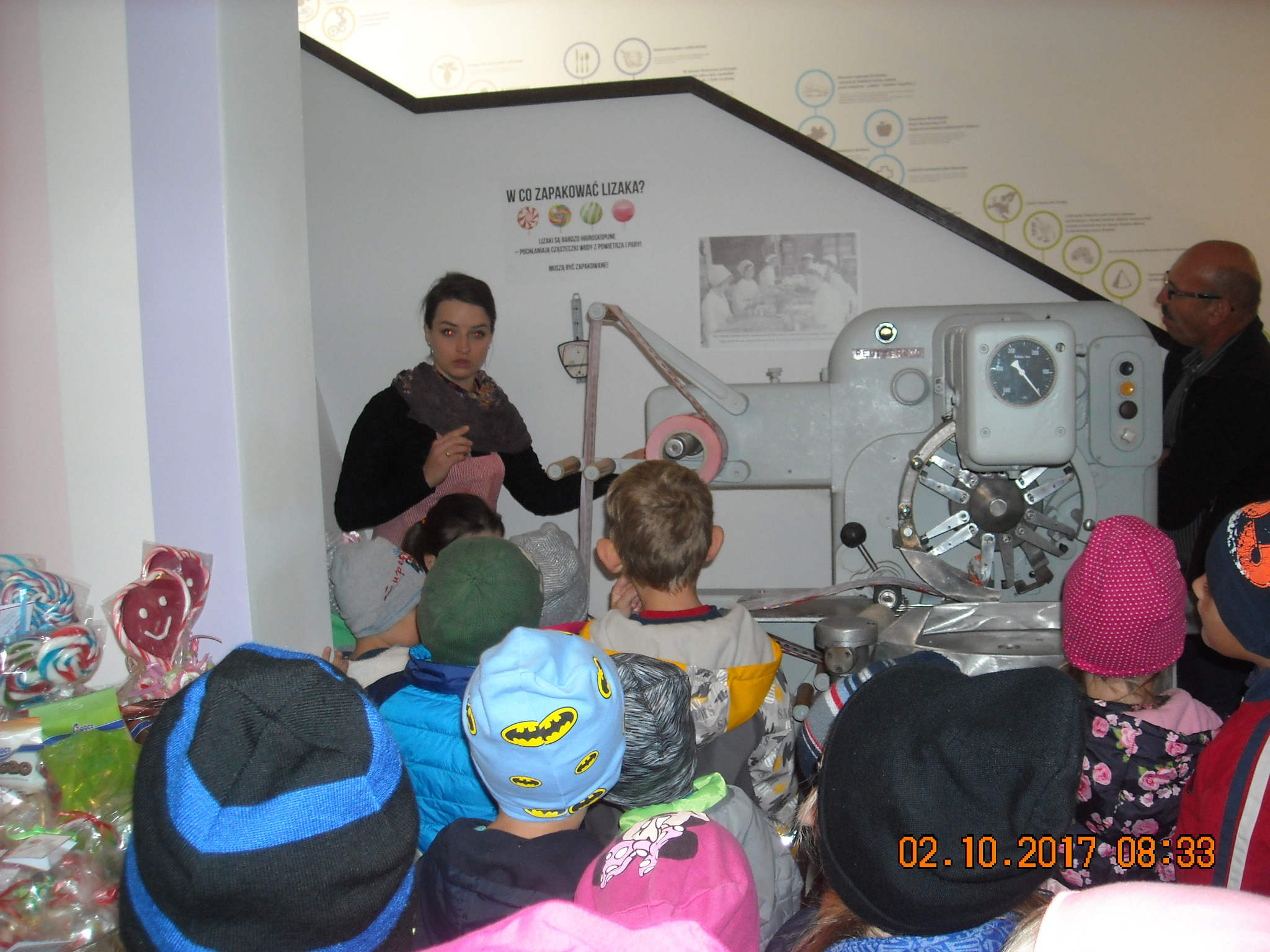 W dn. 02.10.2017r. dzieci 5,6-letnie udały się na wycieczkę do Muzeum Lizaka w Jaśle. Przedszkolaki mogły w muzeum powąchać, dotknąć i posmakować różnego rodzaju cukrów, które są wykorzystywane do produkcji słodyczy. Główną atrakcją była możliwość zobaczenia z bliska całego procesu powstawania lizaka, a także bezpośredni udział w nim. Odwiedzając Muzeum Lizaka dzieci mogły stworzyć lizak według własnego pomysłu.