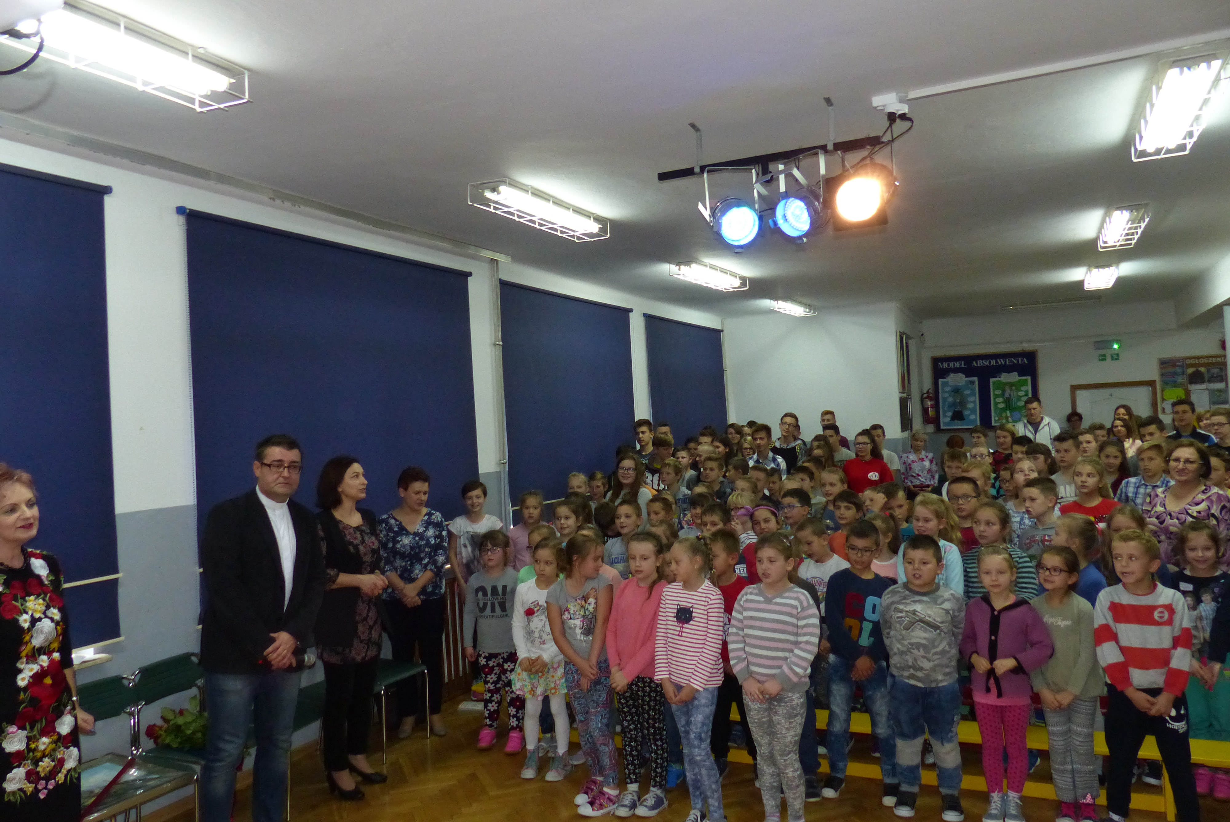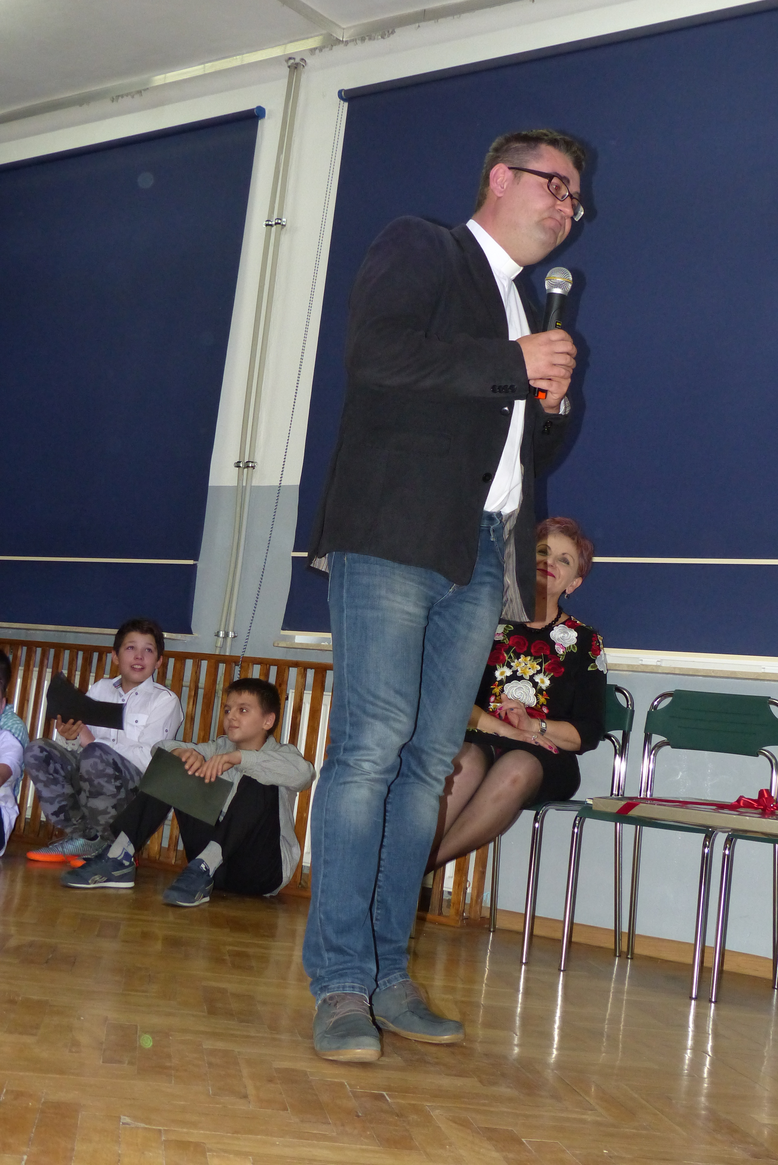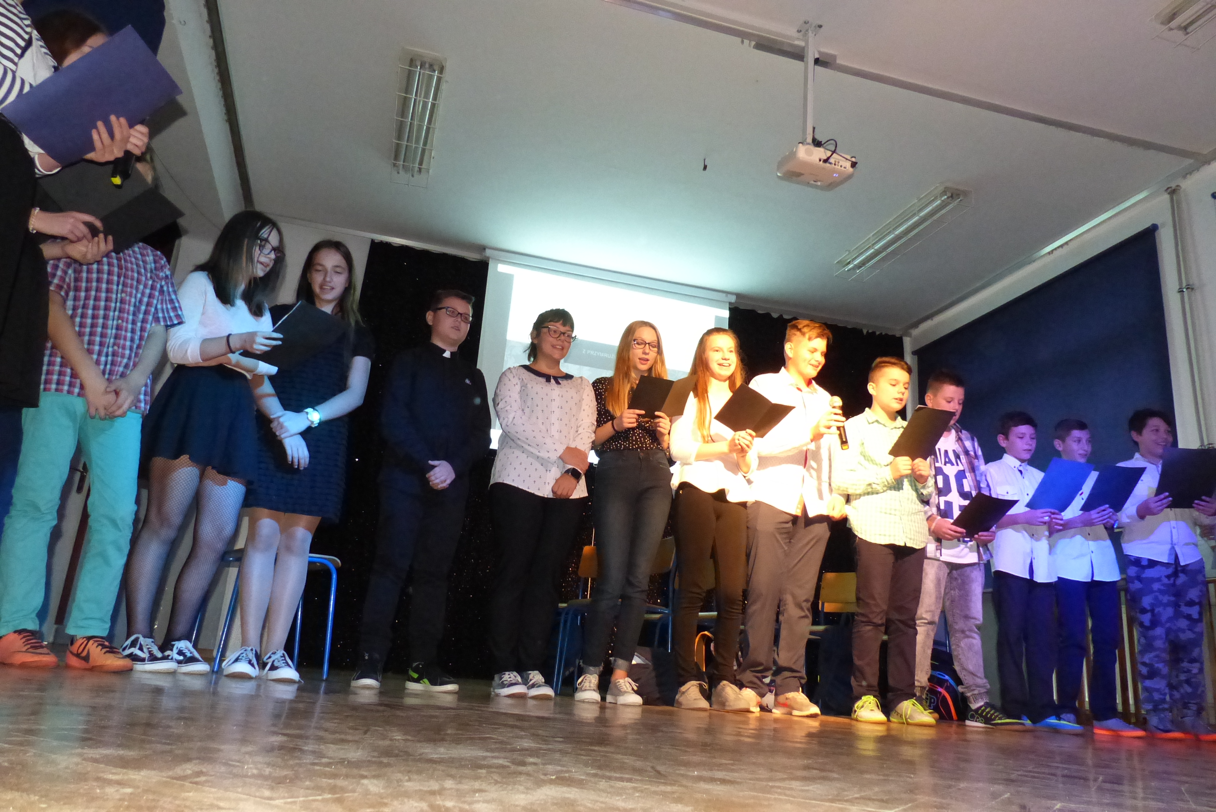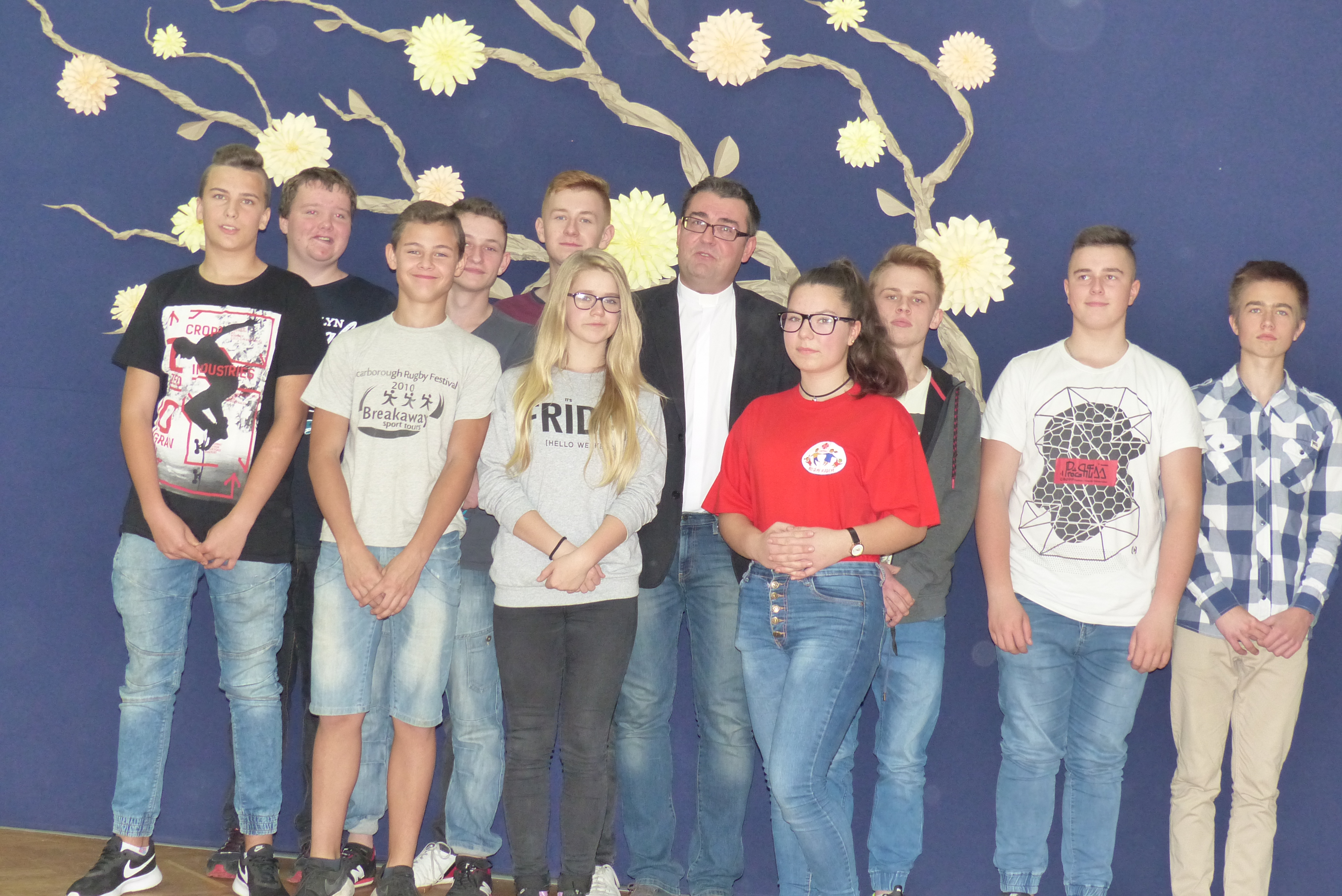 Uczniowie klasy VII, pod kierownictwem pani Dagmary Dżuła, zaprezentowali krótką, zabawną część artystyczną, nawiązującą do pracy księdza katechety w naszej szkole.