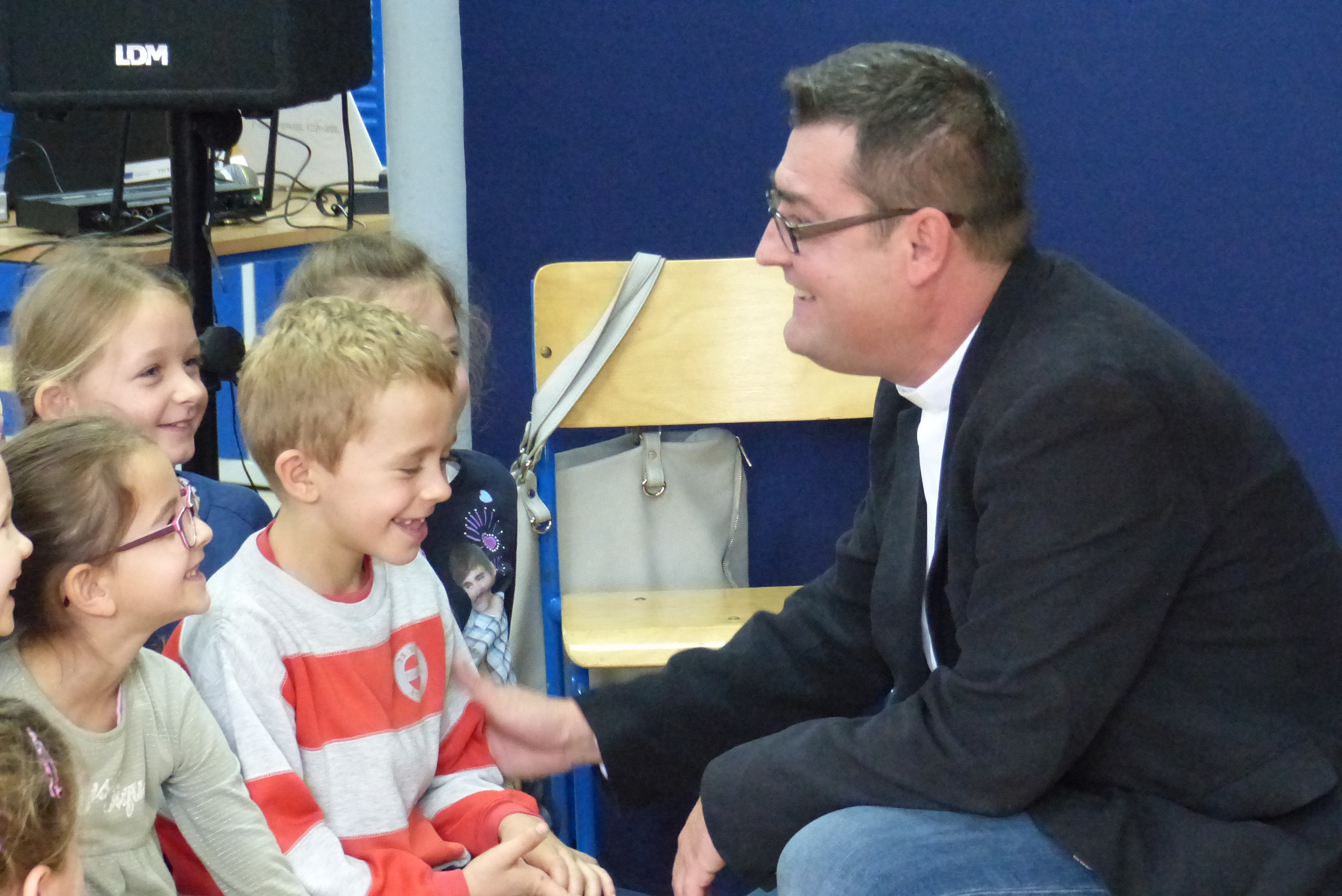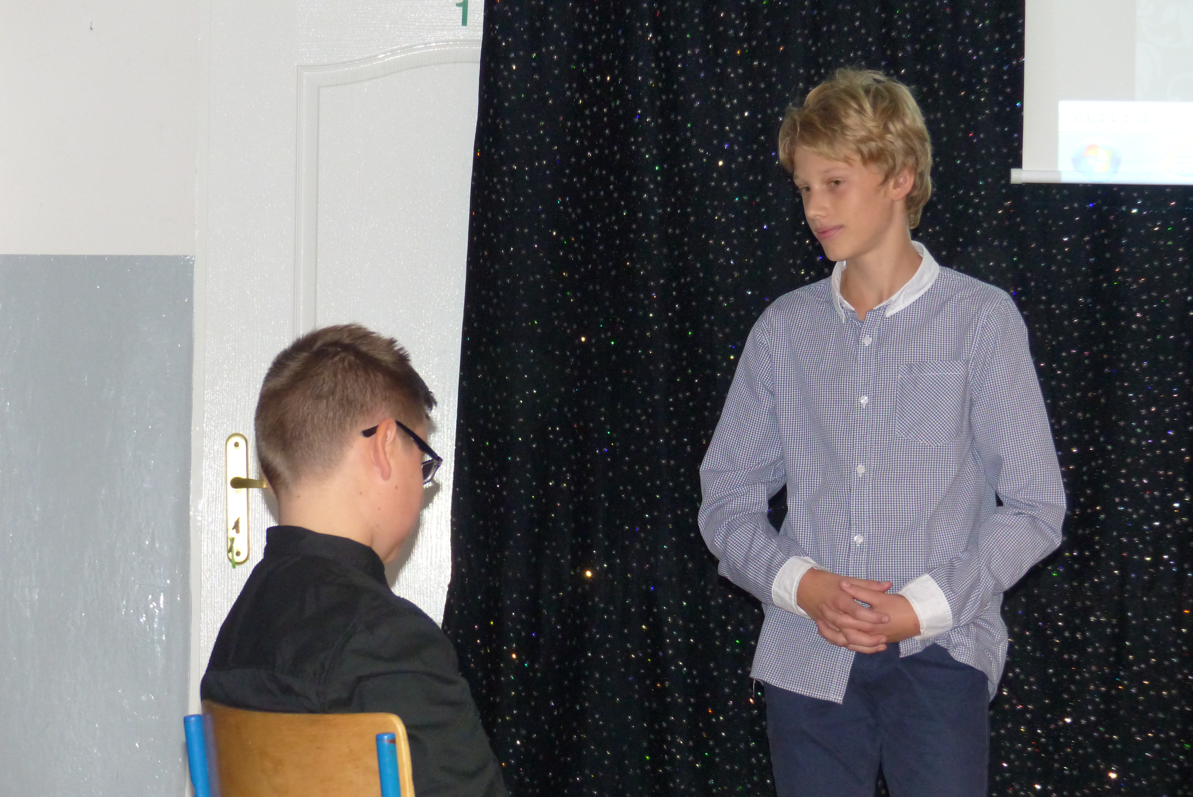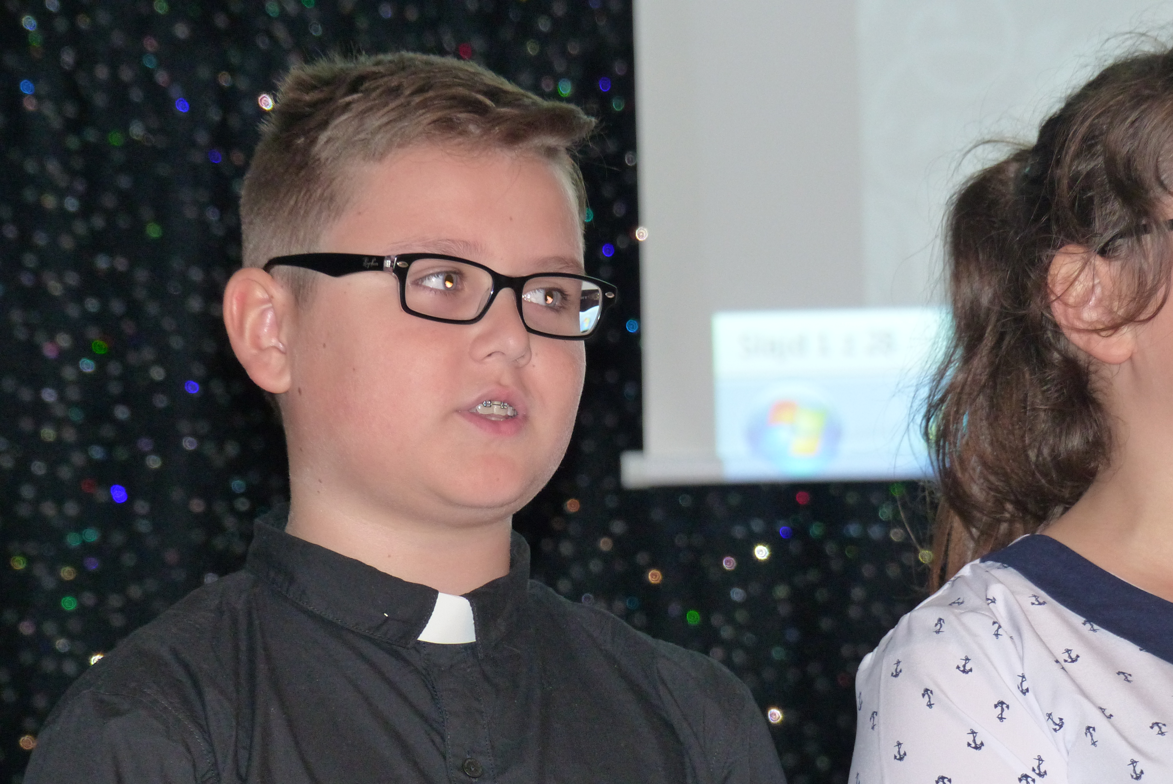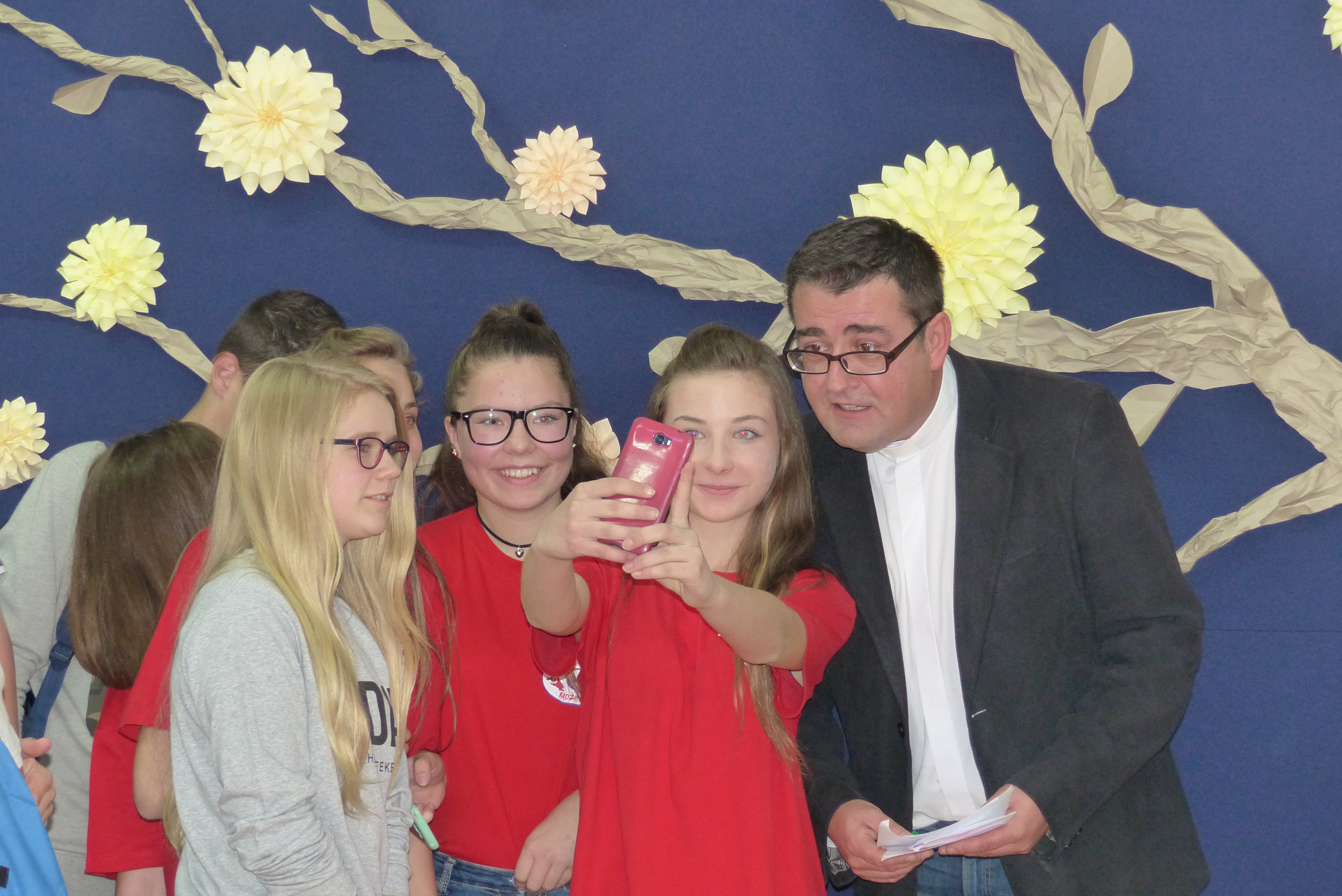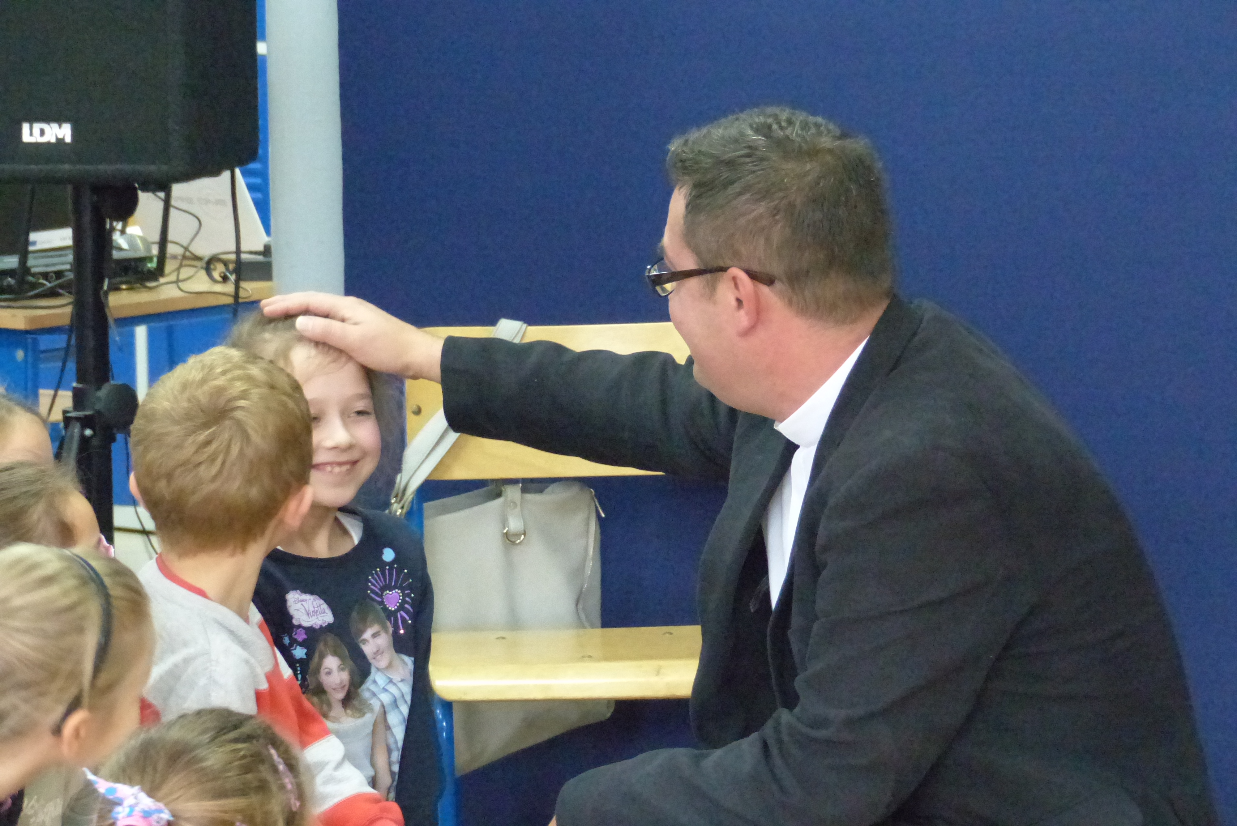 Uczniowie klasy VII, pod kierownictwem pani Dagmary Dżuła, zaprezentowali krótką, zabawną część artystyczną, nawiązującą do pracy księdza katechety w naszej szkole.