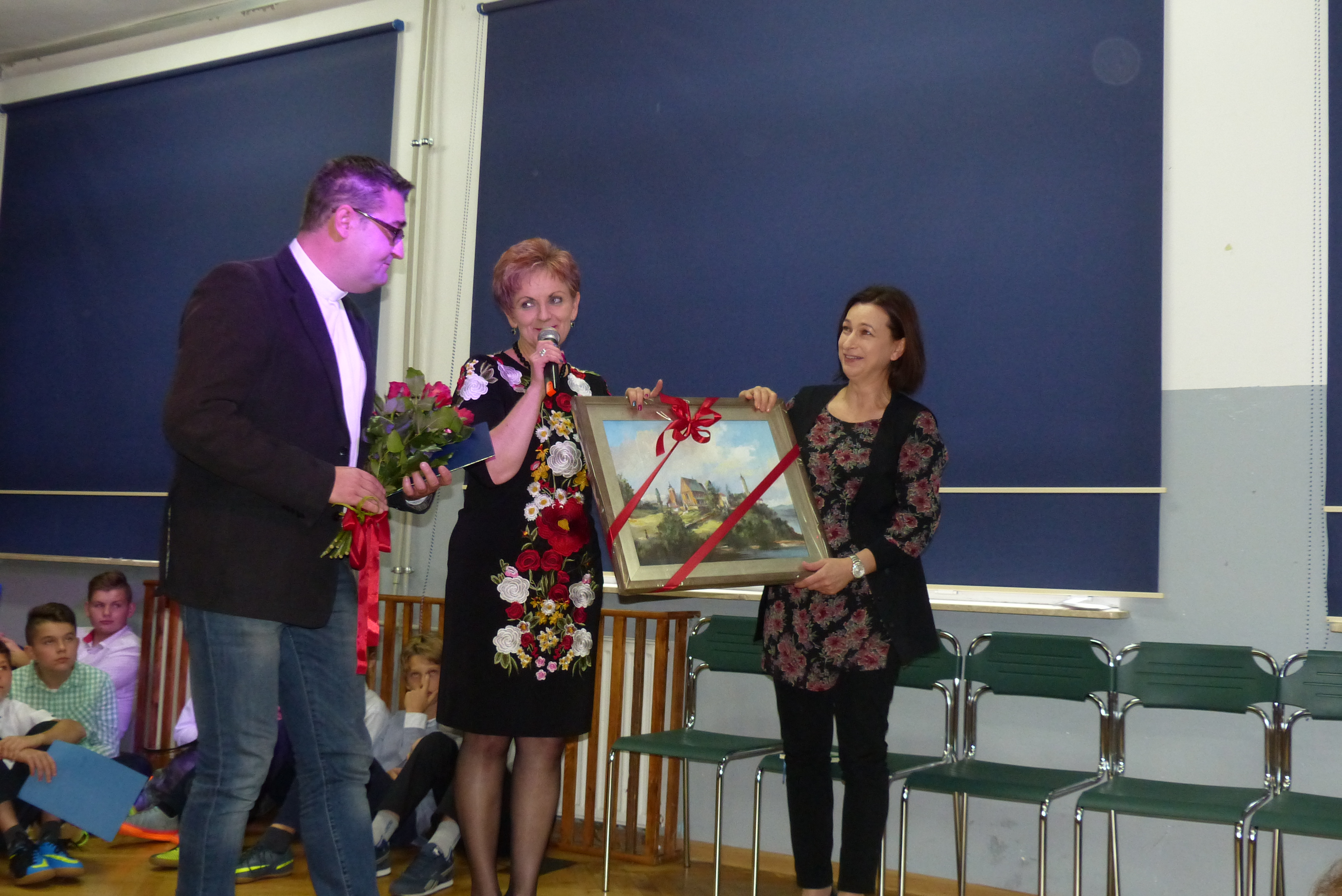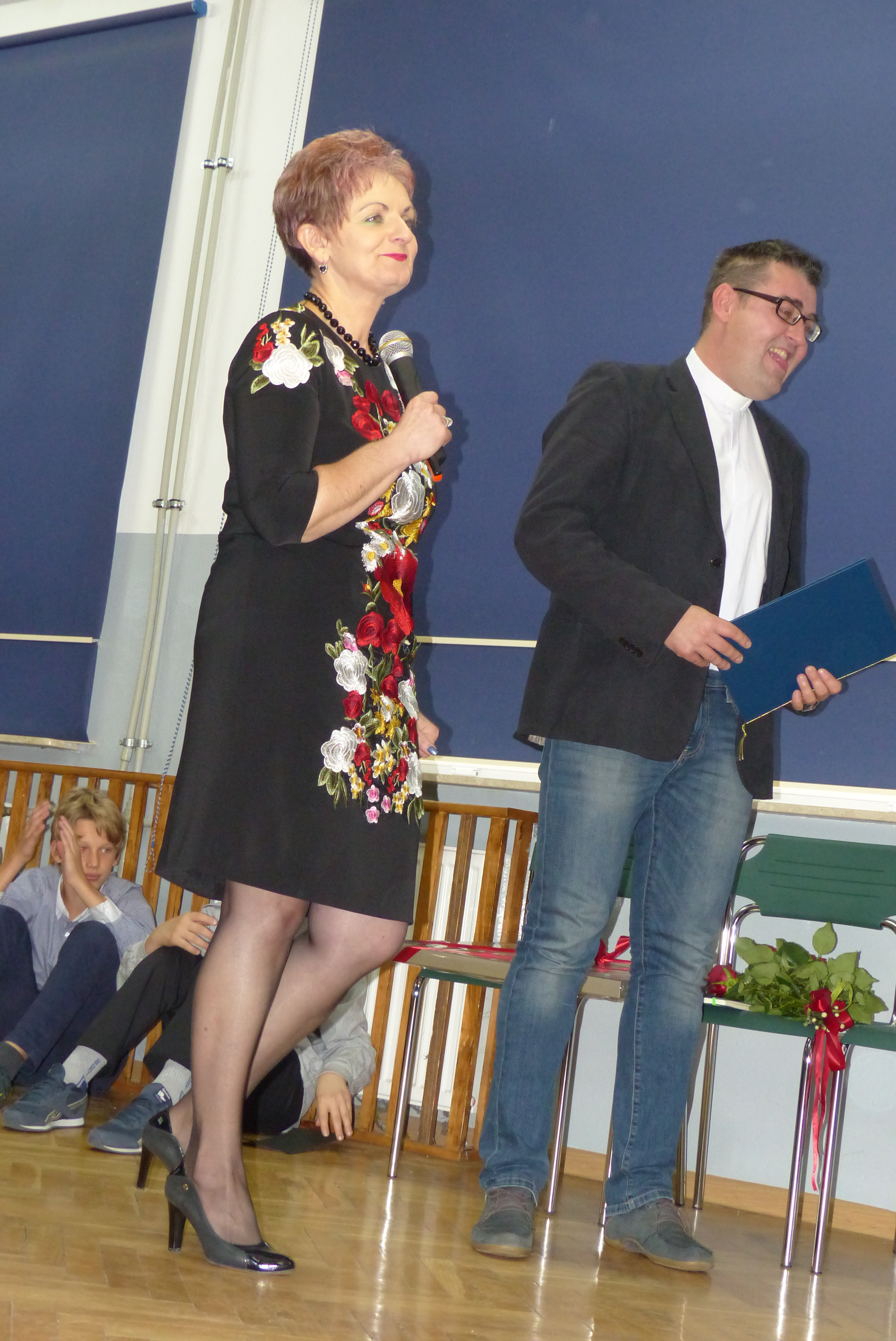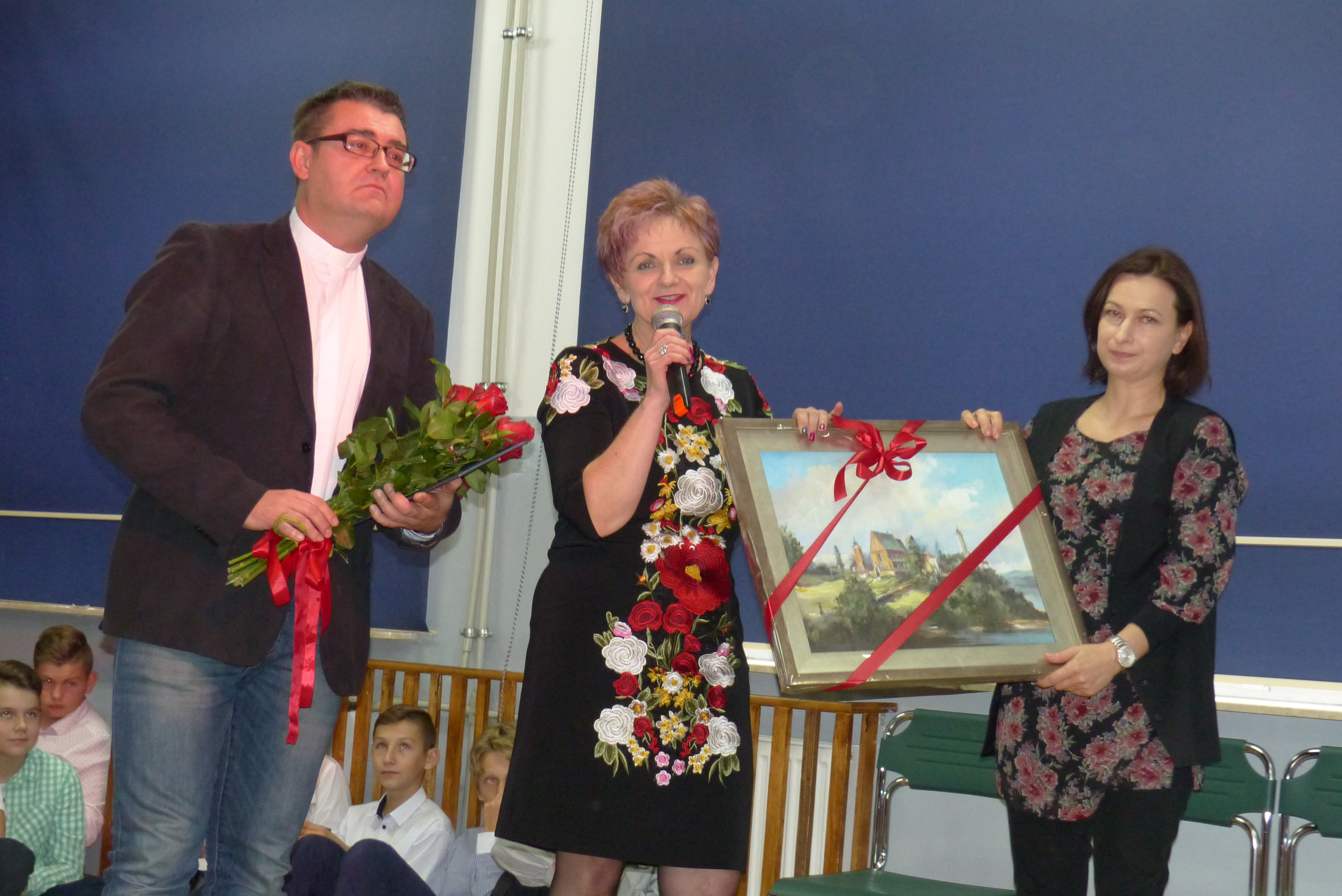 Pani Dyrektor Jadwiga Szara w ciepłych słowach podziękowała ks. Robertowi za ogromne zaangażowanie w pracę z uczniami ZS-P w Strzeszynie w czasie 4-letniej posługi, za zbliżanie nas do Boga i pogłębianie naszej wiary, a także za zwykłe, codzienne rozmowy i podnoszenie na duchu w trudnych chwilach.