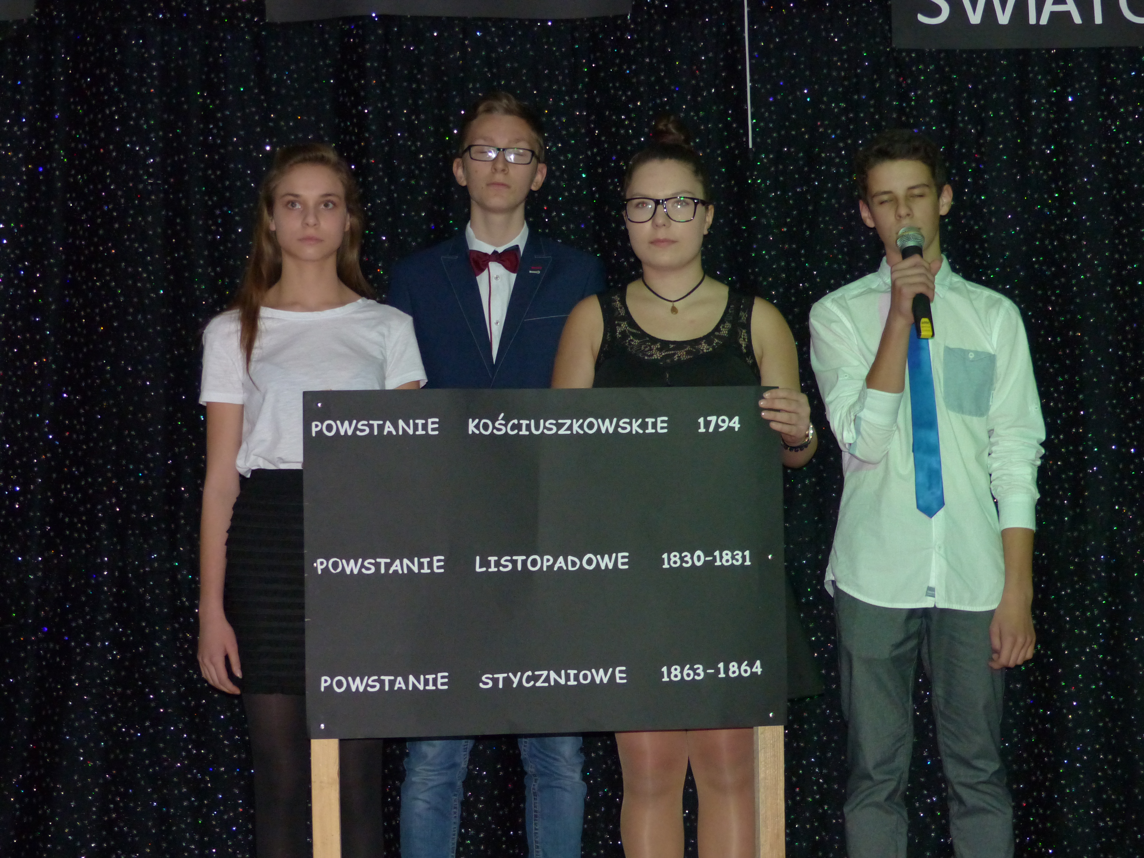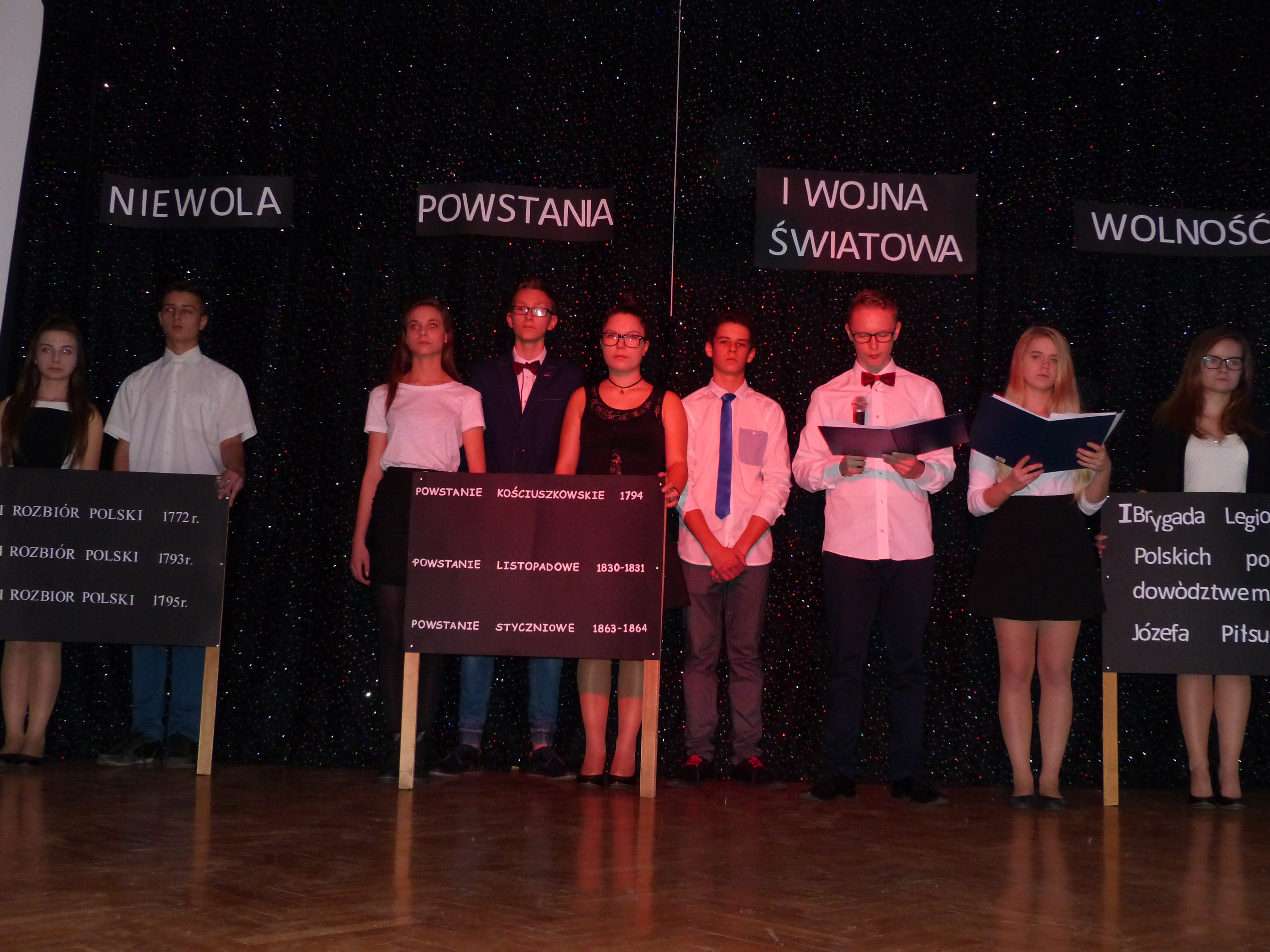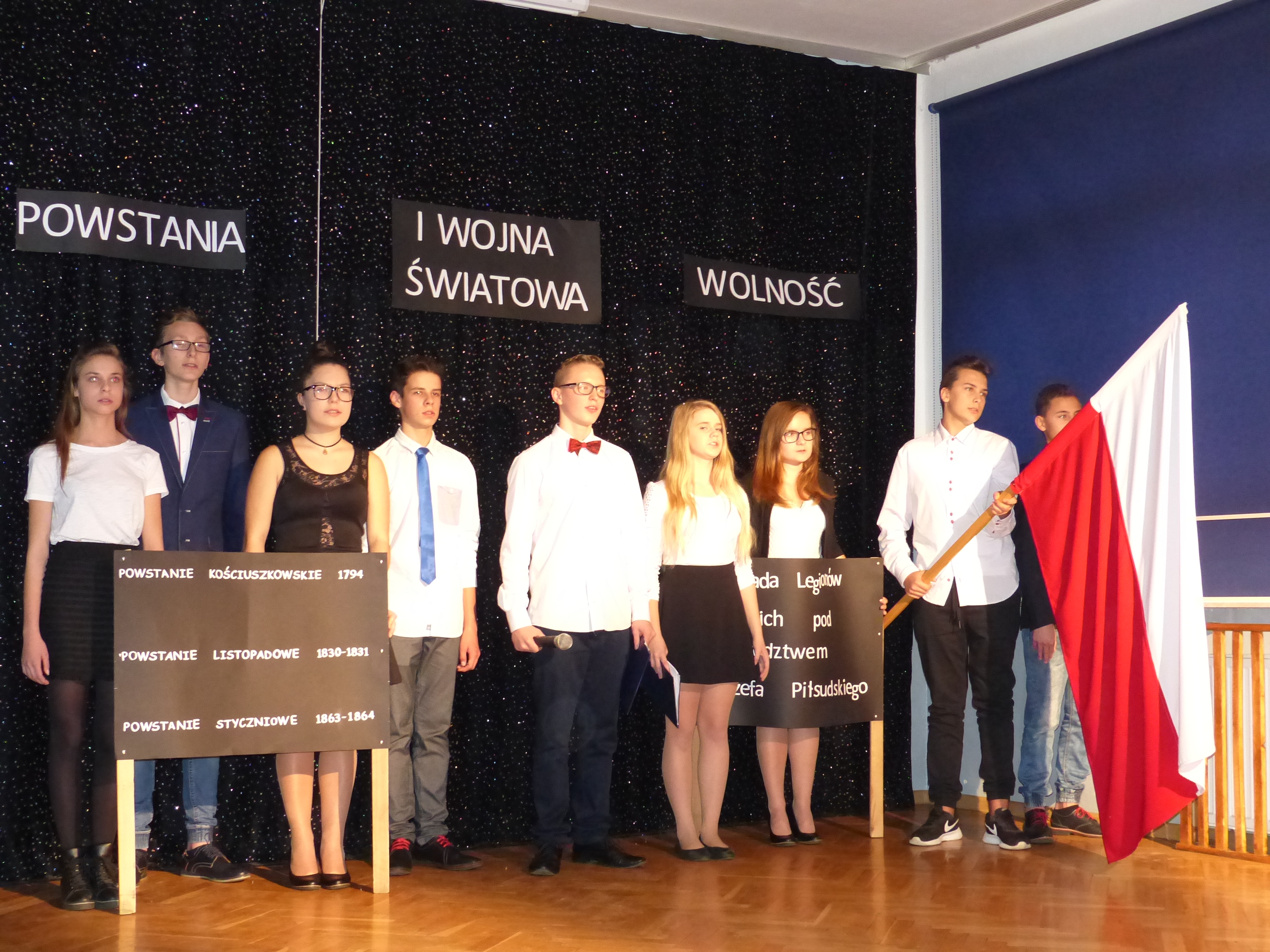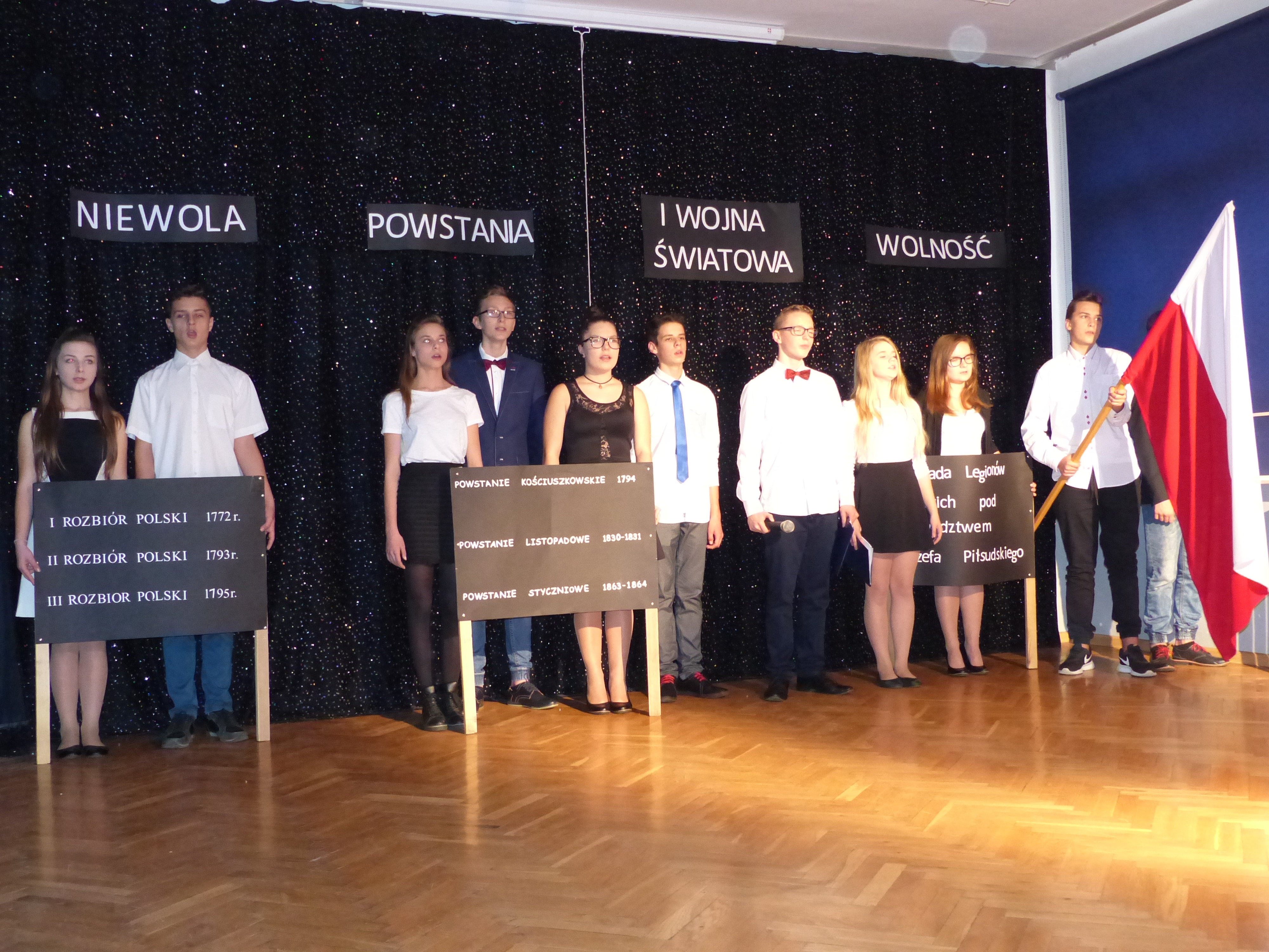Uczniowie klasy II gimnazjum przedstawili program artystyczny o patriotycznym charakterze pt. „Pociąg do przeszłości”.