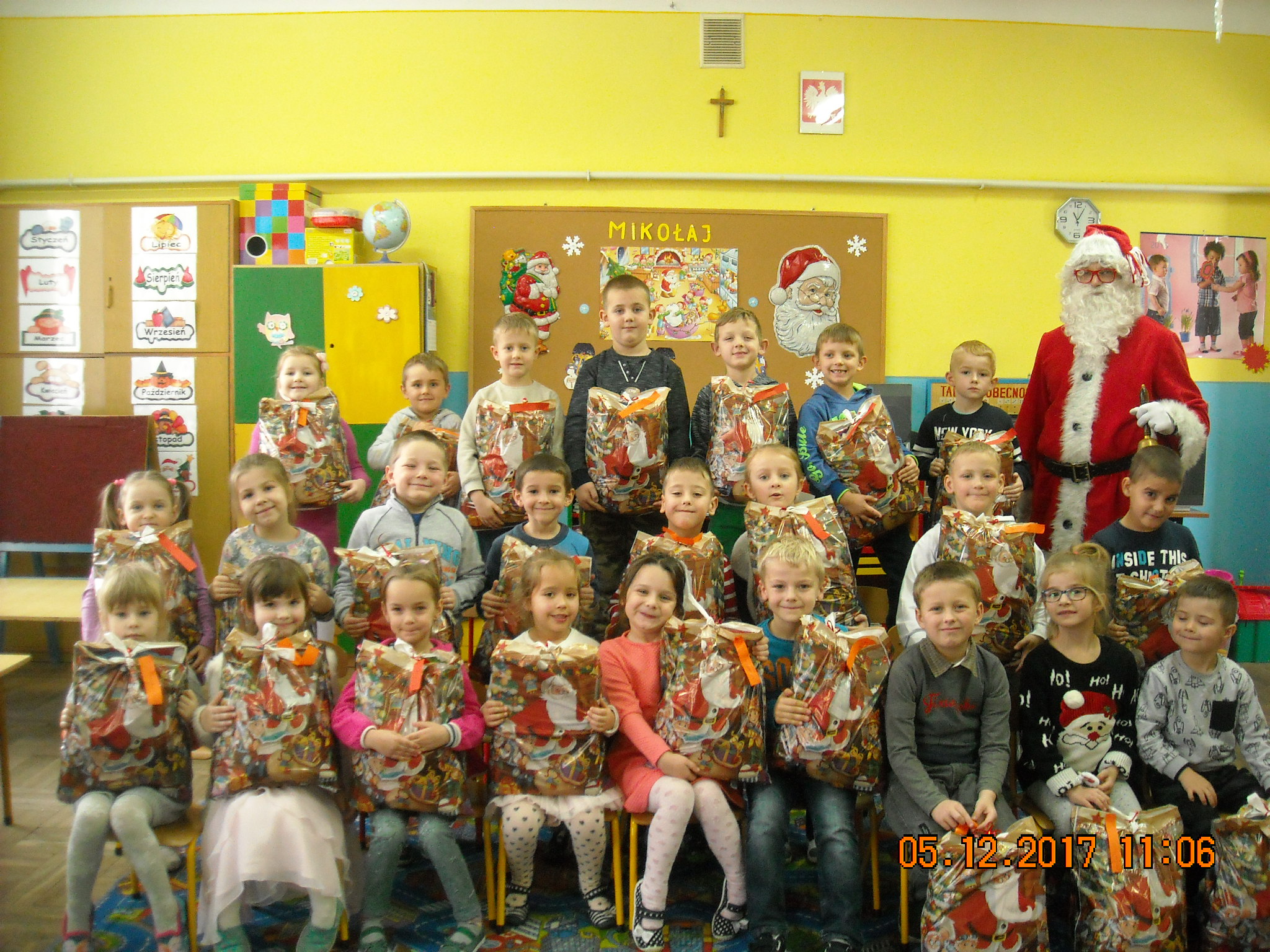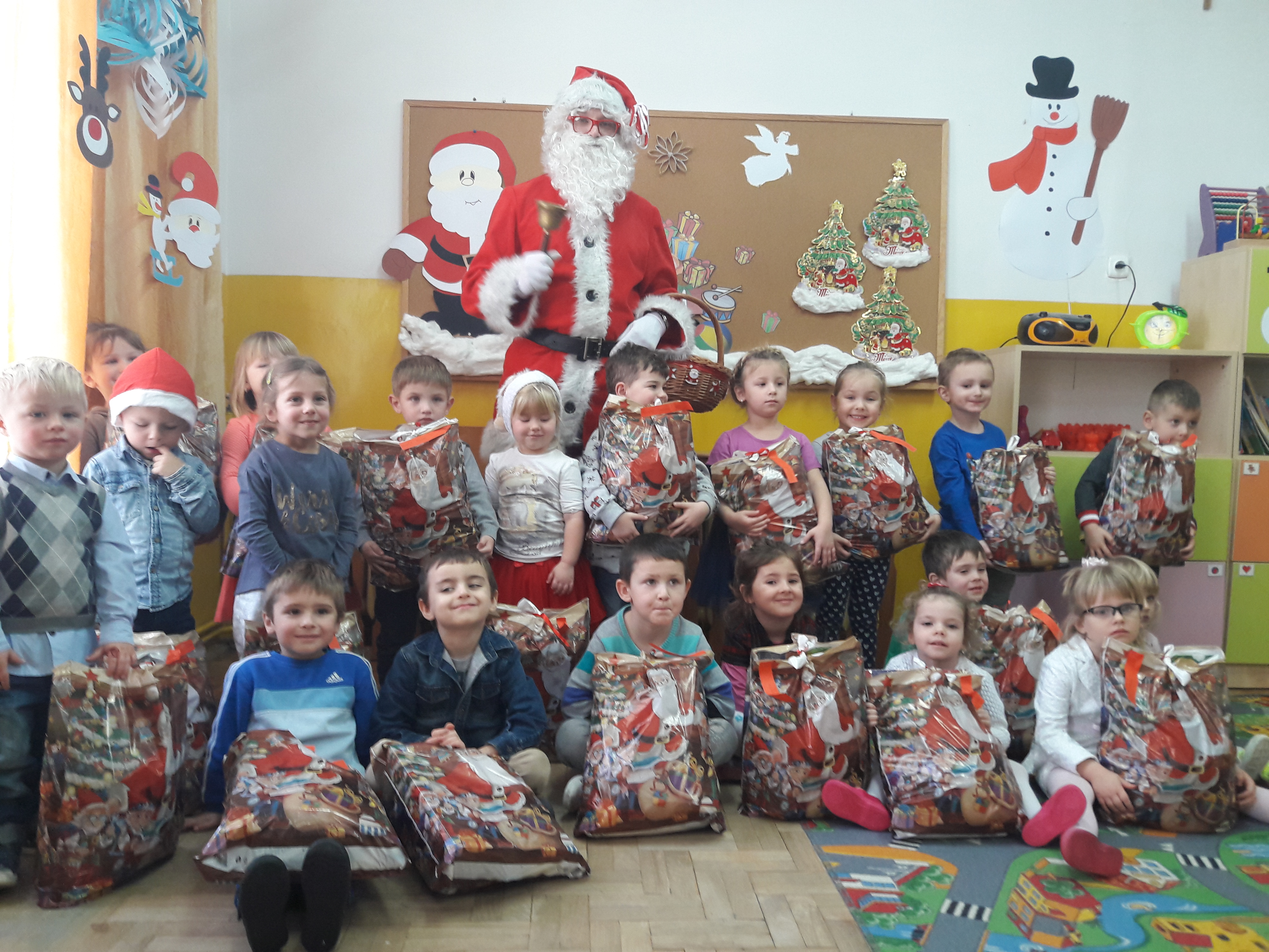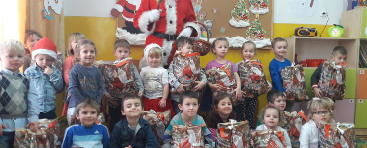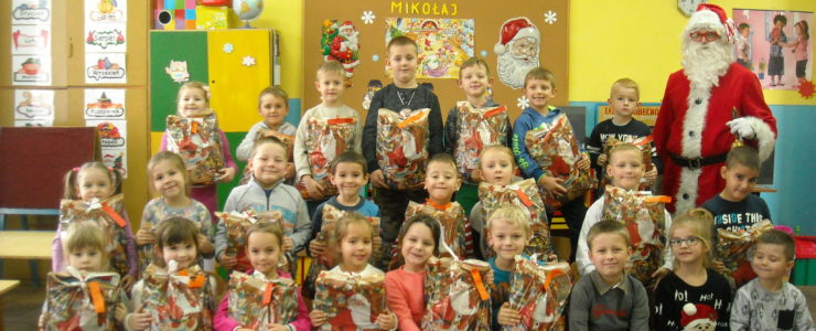 5.12.2017r. odwiedził nasze przedszkole wyjątkowy gość – Święty Mikołaj. Dzieci przygotowały się starannie wykonując ciekawe prace plastyczne, na których króluje oczywiście św. Mikołaj. Obie grupy powitały Mikołaja piosenkami i wierszami. A później nastąpił długo wyczekiwany moment rozdawania prezentów. Upominki były wspaniałe, królowały zabawki, książeczki, słodycze, zdjęcia zrobione z Mikołajem były wspaniałą pamiątką tego spotkania. Dzieci długo wspominały ten dzień, zerkały przez okno z nadzieją, że jeszcze raz zobaczą gościa i pomachają mu na pożegnanie.