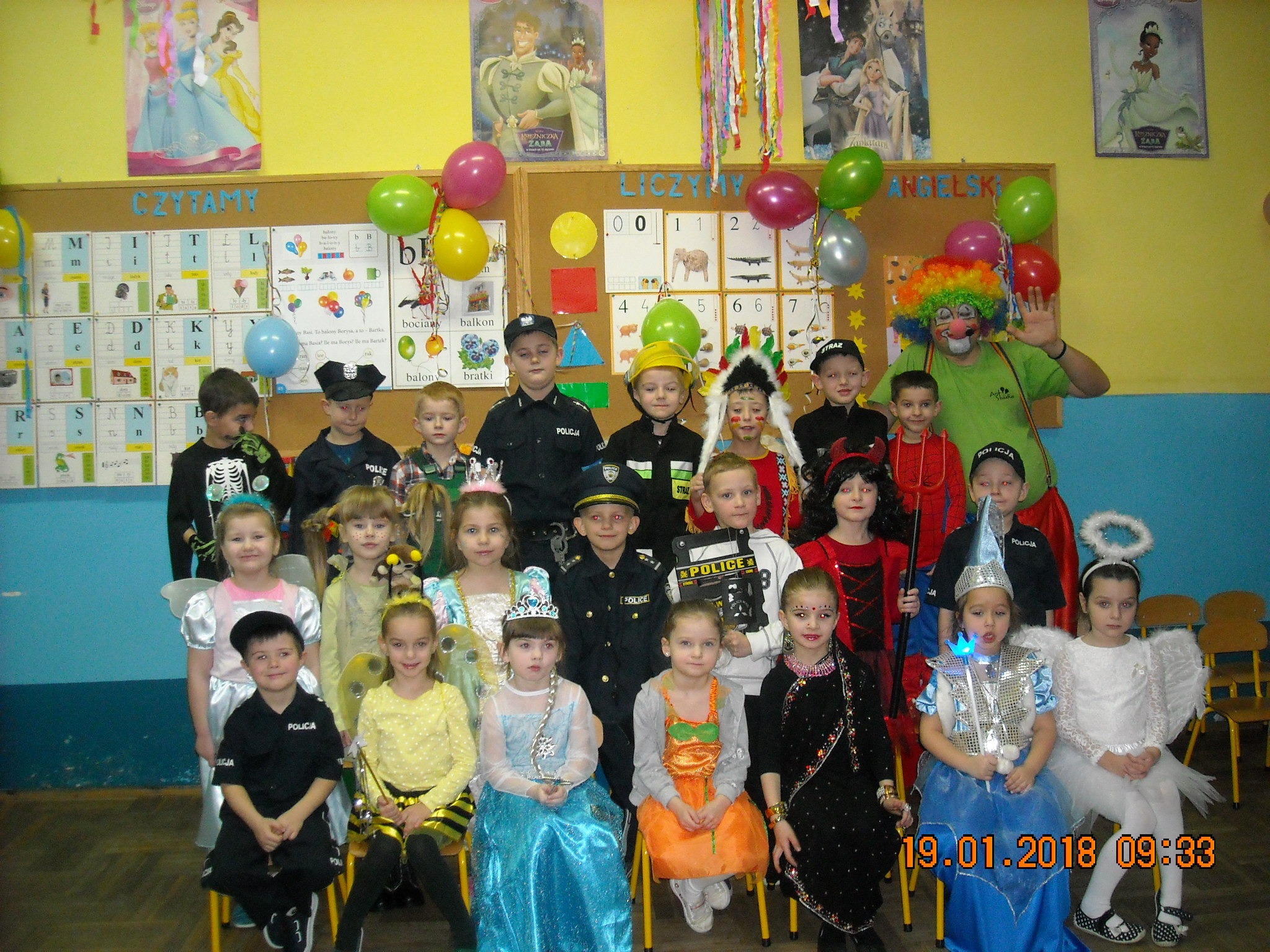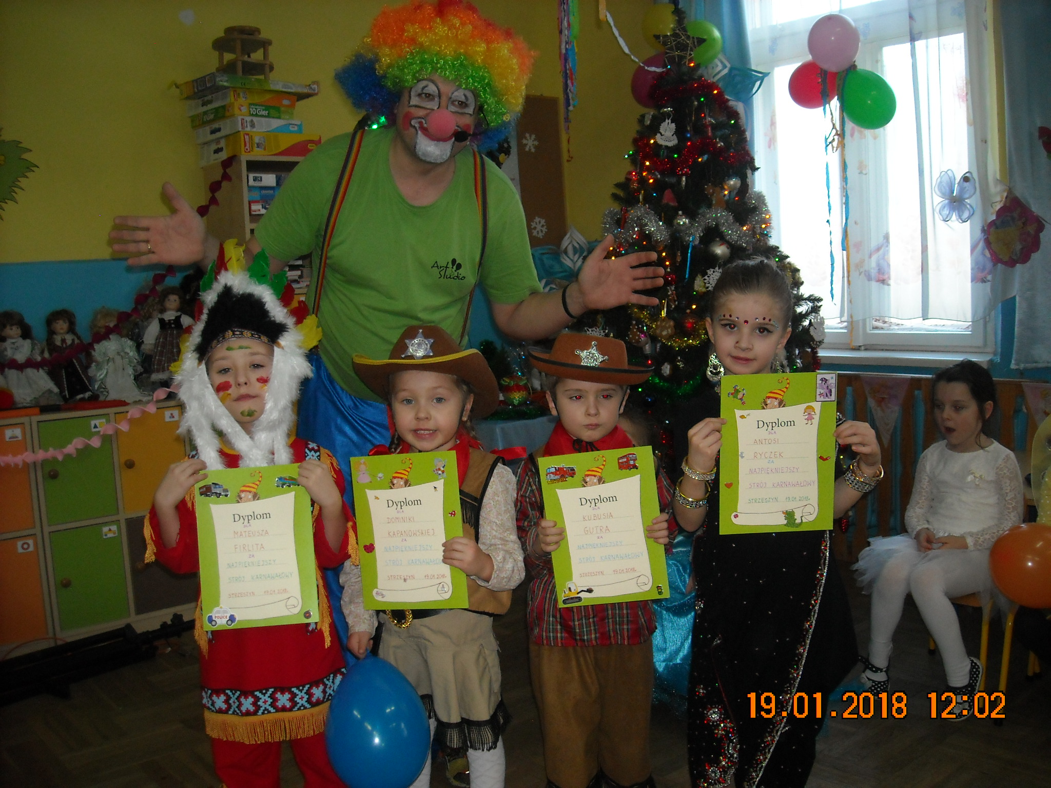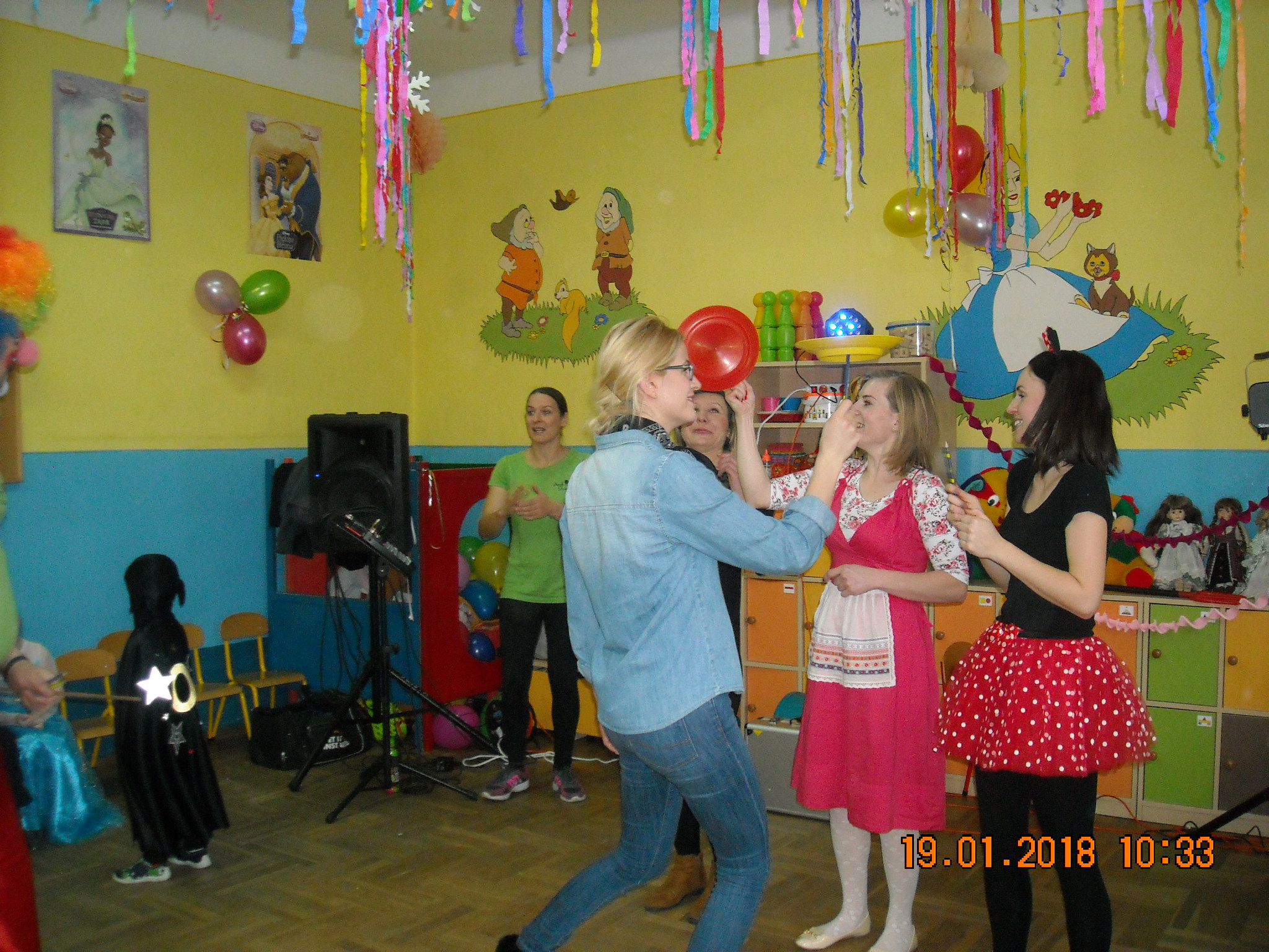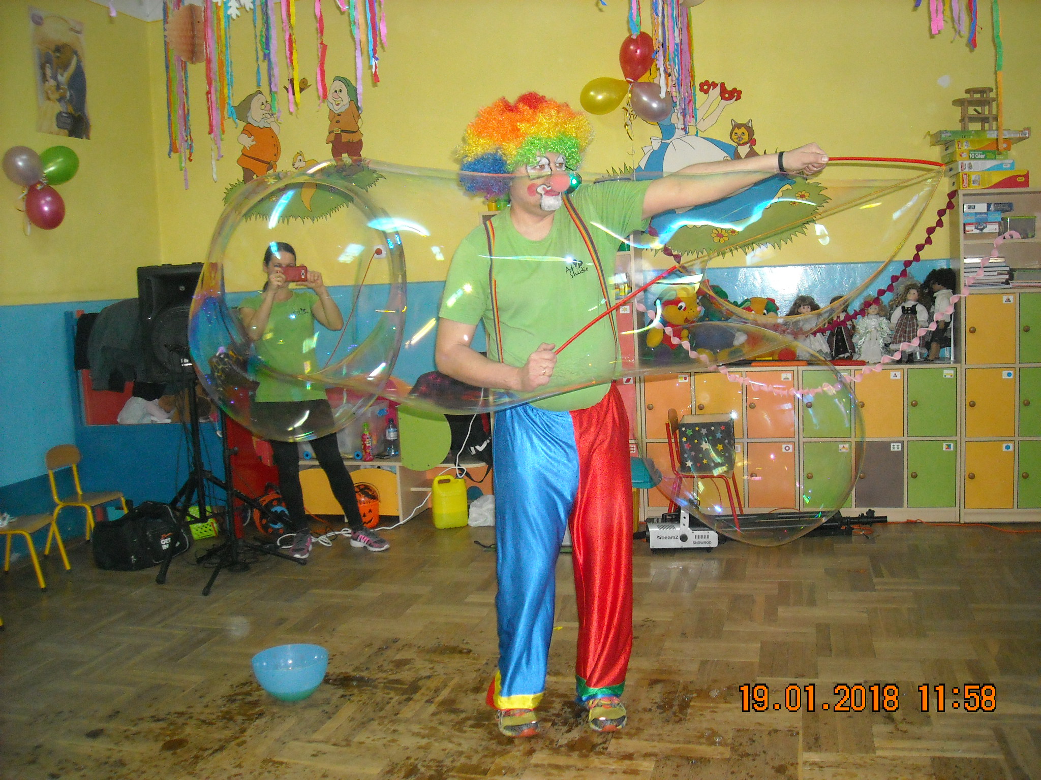 W dniu 19.01.2018r. w naszym przedszkolu odbył się bal karnawałowy. Tego dnia od rana pojawiały się kolorowe postacie. Dzieci przebrane były za bohaterów znanych bajek. Wystrój sali wprowadził w radosny nastrój oraz zachęcał wszystkich do wesołej zabawy. Na tę wyjątkową okazję zaprosiliśmy Klauna Roberto i Minionka. Dzieci świetnie się bawiły uczestnicząc w wielu konkursach, pokazie mody ekologicznej, wybrano również najpiękniejszy strój karnawałowy. Po poczęstunku muzyka znów porwała wszystkich do tańca wśród sypiącego śniegu. Na zakończenie odbył się pokaz baniek mydlanych w wykonaniu Klauna Roberto. Wspólna zabawa przyniosła wiele radości naszym wychowankom.