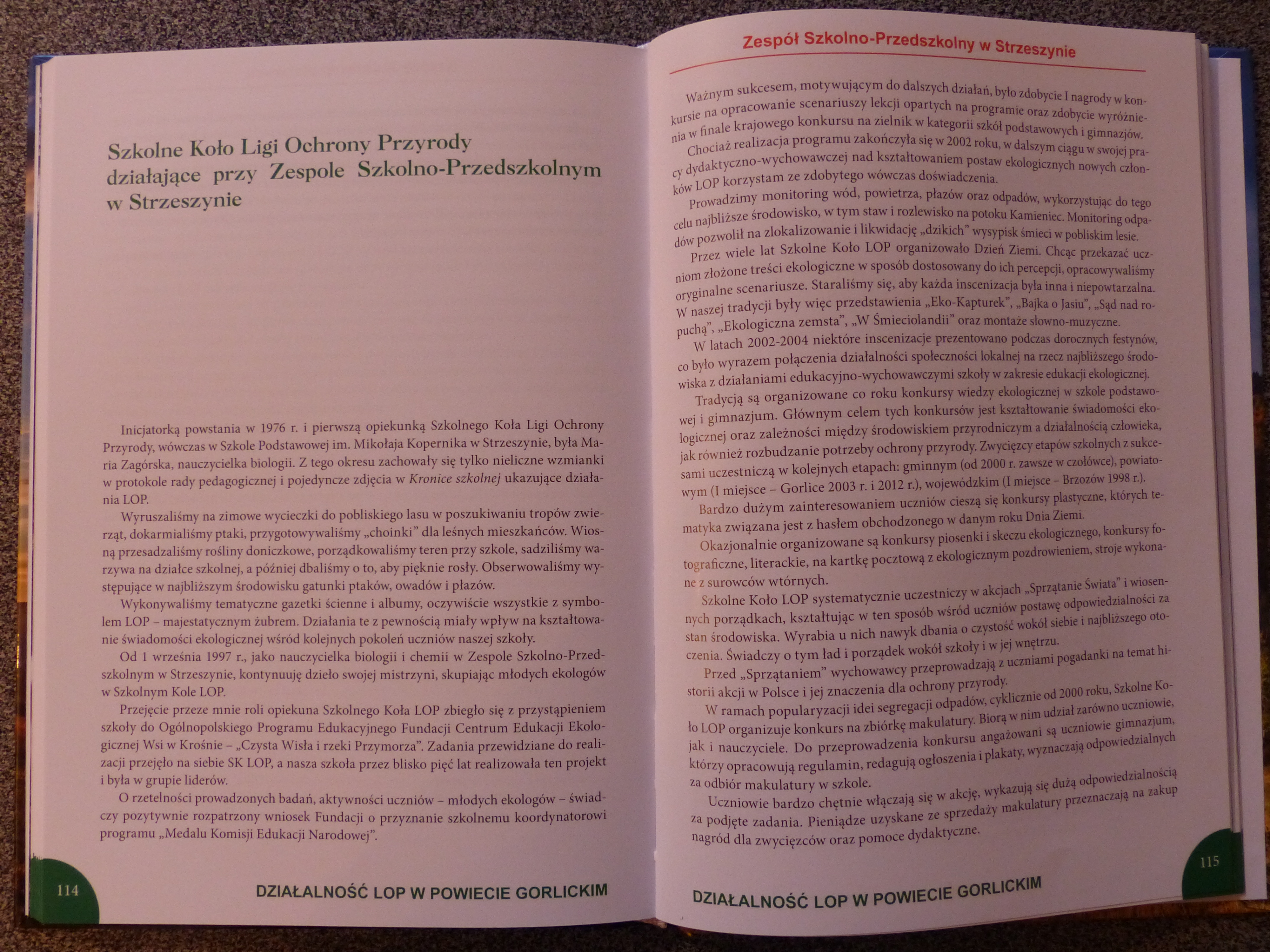Obchody 90 – lecia LOP rozpoczęła Pani Grażyna Kurzawa Prezes Oddziału LOP w Gorlicach, która w pierwszych słowach nawiązała do roli Ligi w Polsce i zaprezentowała rys historyczny oraz działalność LOP u na Ziemi Gorlickiej. Szczególną uwagę zwróciła na publikację pt. „Mamy tylko jedną Ziemię”, która przedstawia w pigułce najistotniejsze działania prowadzone przez członków SK LOP powiatu gorlickiego. Wydanie książki sfinansowało Starostwo Powiatowe w Gorlicach.