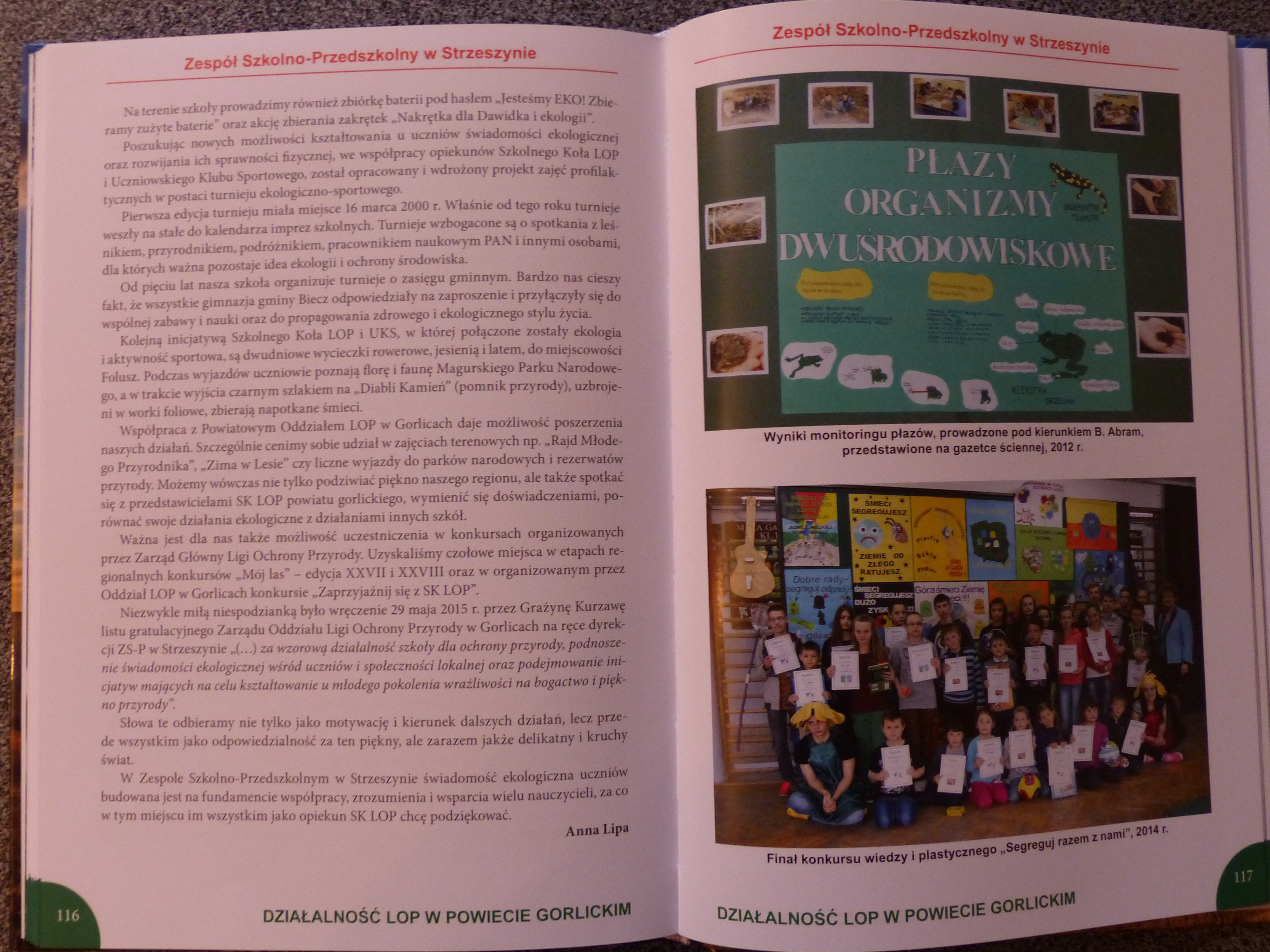 90 lat temu, 9 stycznia 1928 r. została założona Liga Ochrony Przyrody. Na pamiątkę tego wydarzenia 9 stycznia 2018 r. w Gorlickim Centrum Kultury odbył się jubileusz 90 – lecia działalności Ligi Ochrony Przyrody najstarszej organizacji ekologicznej w Polsce. W uroczystościach uczestniczyli m. in.: Pan Karol Górski- Starosta Gorlicki, Pan Jerzy Nalepka – Wicestarosta, Pan Dariusz Leśniak Dyrektor Delegatury Kuratorium Oświaty w Nowym Sączu, Pani Maria Puścizna-Syc Naczelnik Wydziału Ochrony Środowiska Starostwa Powiatowego, Pan Marcin Janik Zastępca Naczelnika Wydziału Ochrony Środowiska Starostwa Powiatowego, Pan Tadeusz Ogorzałek Prezes Zarządu Okręgu LOP w Nowym Sączu, przedstawiciele nadleśnictwa Gorlice oraz burmistrzowie, wójtowie, dyrektorzy szkół i uczniowie z terenu powiatu gorlickiego. W uroczystościach nie zabrakło Pana Mirosława Wędrychowicza Burmistrza Biecza, Pani Renaty Gołębiowskiej Dyrektor ZOJ w Bieczu oraz dyrektorów szkół Gminy Biecz, w których działają koła LOP, w osobach: Pani Jadwigi Szarej- Dyrektor Zespołu Szkolno Przedszkolnego w Strzeszynie, Pana Stanisława Kalisza- Dyrektora Szkoły Podstawowej Nr 1 w Bieczu, Pana Aleksandra Kalisza- Dyrektora Zespołu Szkolno- Przedszkolnego w Libuszy, Pani Wioletty Janas- Wicedyrektor Zespołu Szkolno- Przedszkolnego w Binarowej.