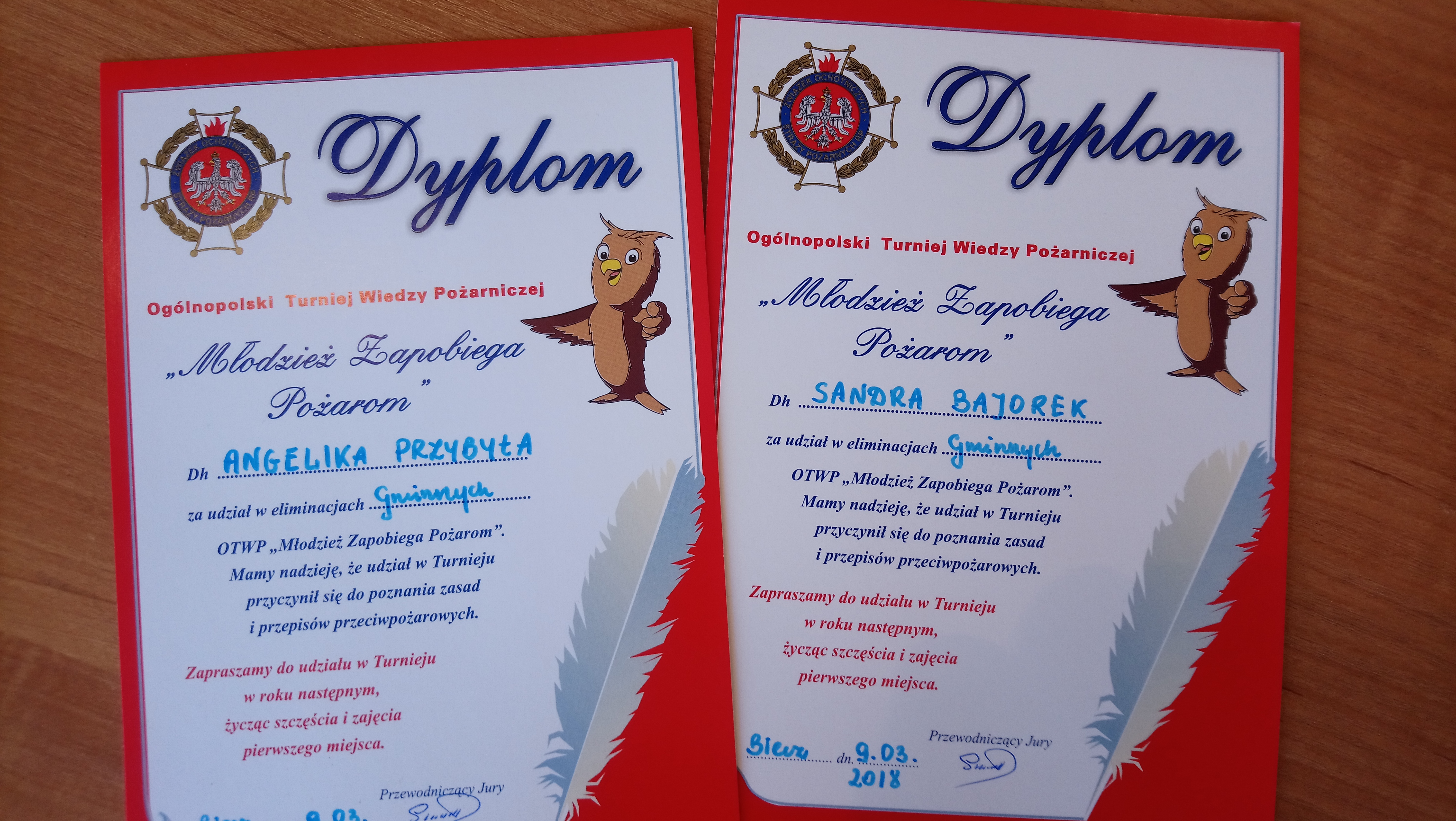Jak co roku nasza szkoła wzięła udział w eliminacjach gminnych konkursu. W tym roku reprezentowali nas: w kategorii szkół podstawowych- Angelika Przybyła i Sandra Bajorek , w kategorii szkół gimnazjalnych: Tymoteusz Dżuła i Mateusz Honc. Uczestnicy spotkali się w remizie OSP w Bieczu. Test konkursowy był bardzo trudny zawierał mnóstwo pytań związanych z historią straży pożarnej jak i zagadnień związanych ze sprzętem pożarniczym. Naszym reprezentantom zabrakło bardzo niewiele aby przejść do kolejnego etapu. Gratulacje!