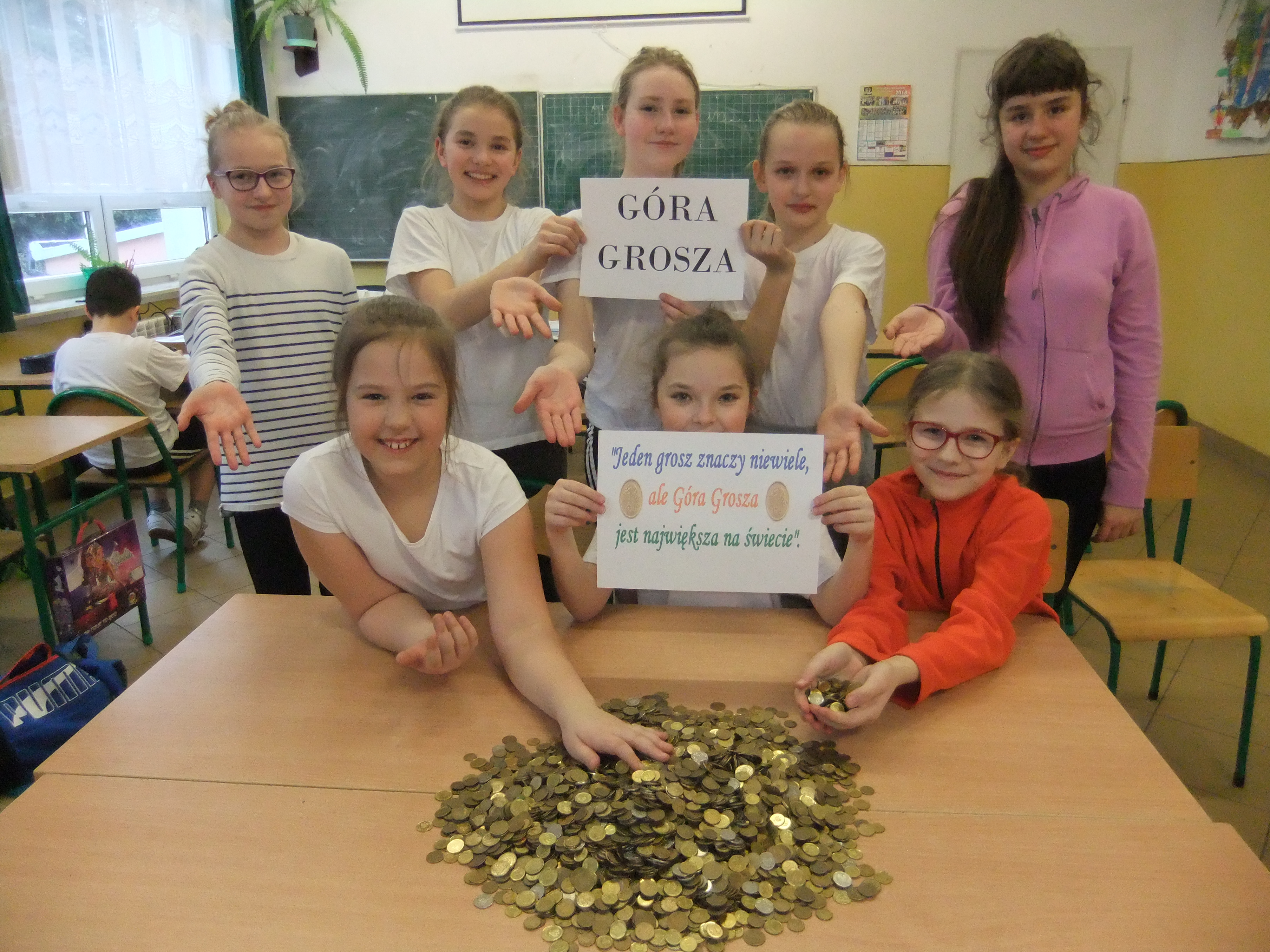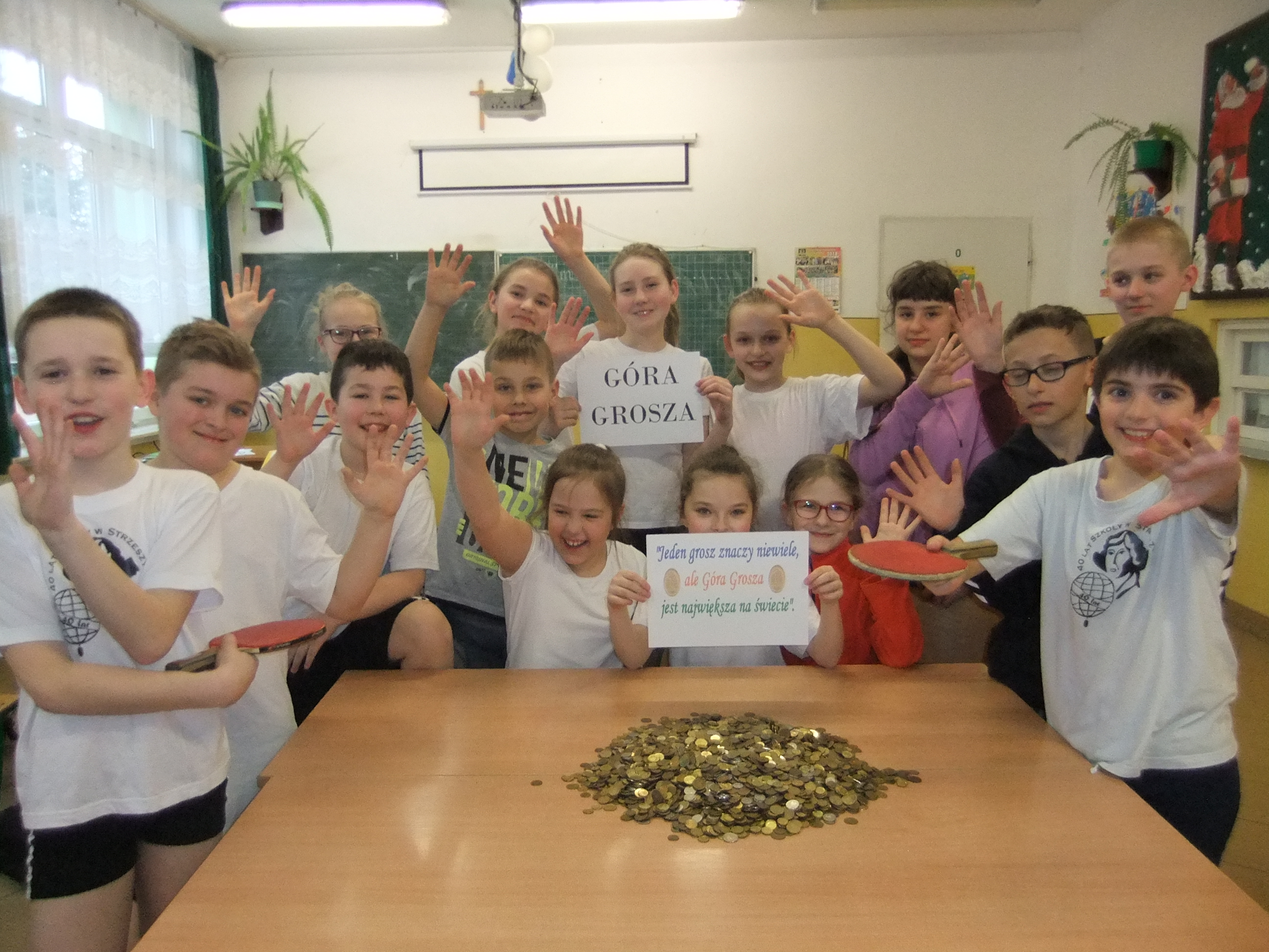 31 stycznia 2018 r. w naszej szkole zakończyliśmy XVIII edycję akcji „Góra Grosza”, organizowaną przez Towarzystwo „Nasz Dom” pod patronatem Ministra Edukacji Narodowej. Podczas tegorocznej akcji dzieci zbierały drobne monety, by następnie przekazać je na pomoc rodzinnym domom dziecka, rodzinom zastępczym i pogotowiom rodzinnym. Uczniowie naszej szkoły, tak jak w poprzednich latach, włączyli się w tę akcję. Każda klasa przez okres kilku tygodni skrupulatnie gromadziła monety. A oto wyniki: