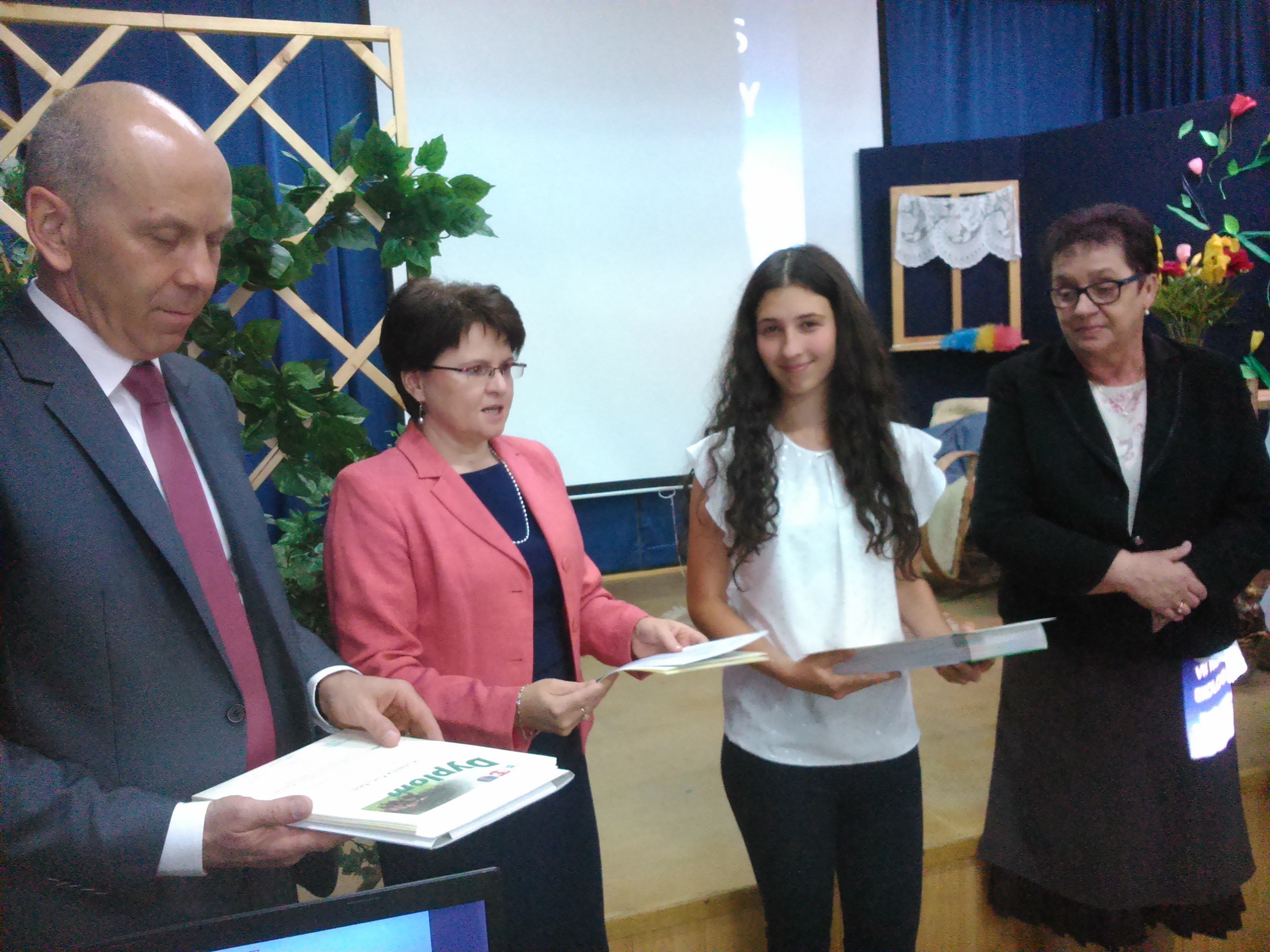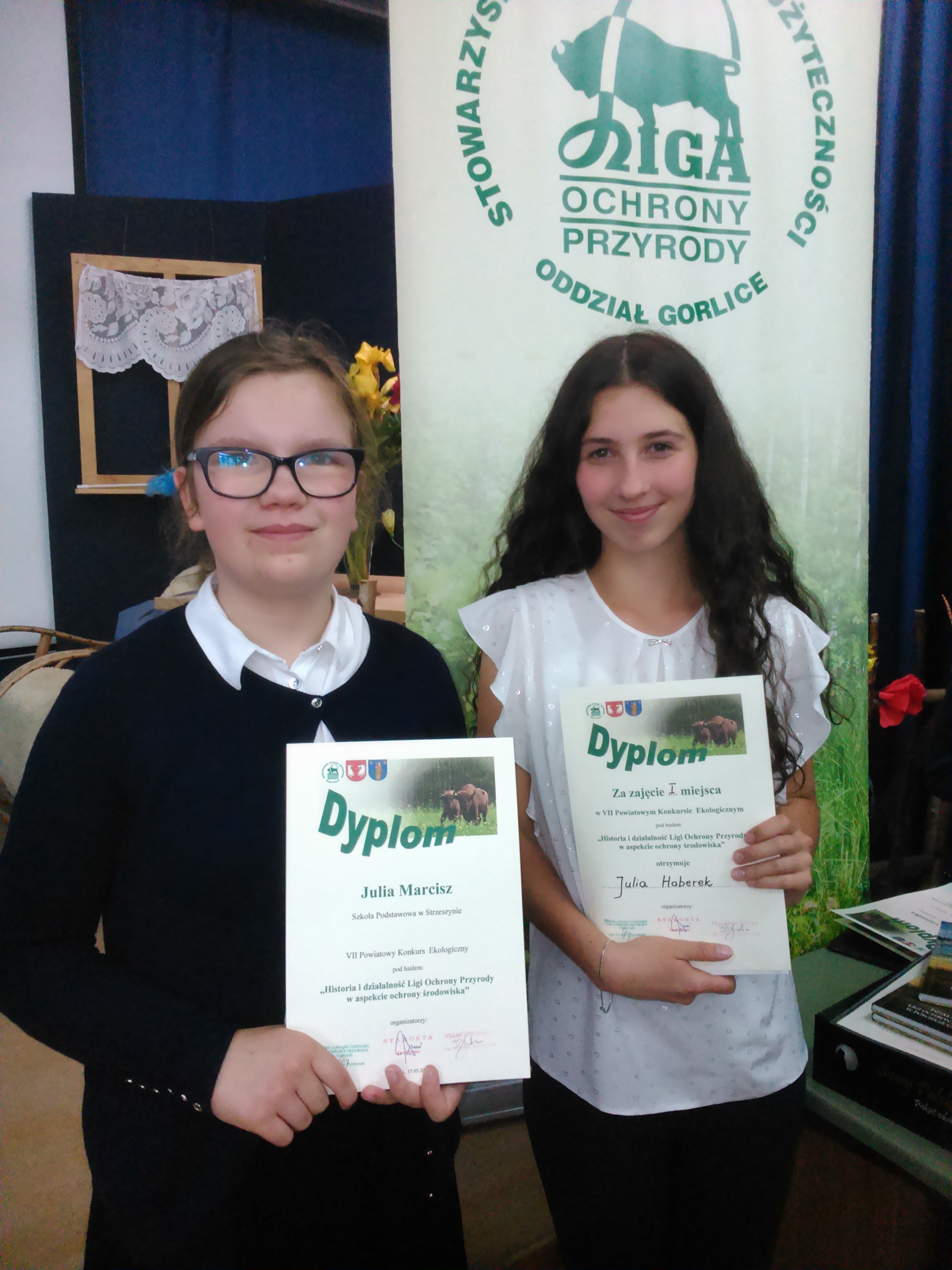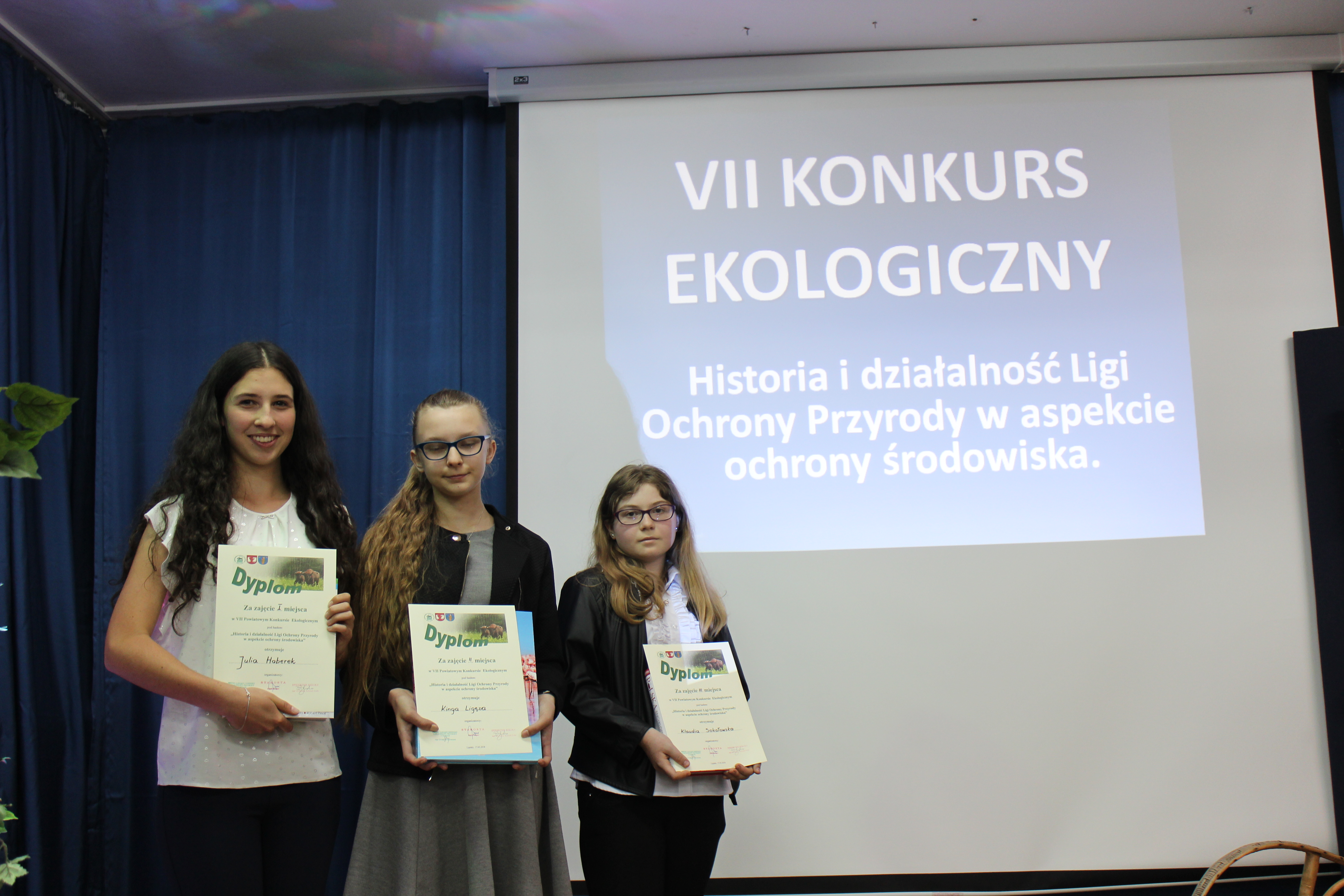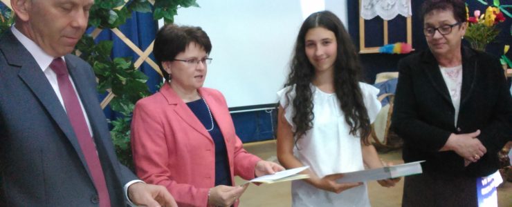 Z satysfakcją i dumą informujemy, iż Julia Haberek uczennica klasy VI została laureatem VII Powiatowego Konkursu Ekologicznego zajmując I miejsce. Z rąk przybyłych gości uczennica otrzymała nagrodę książkową oraz pamiątkowy dyplom.