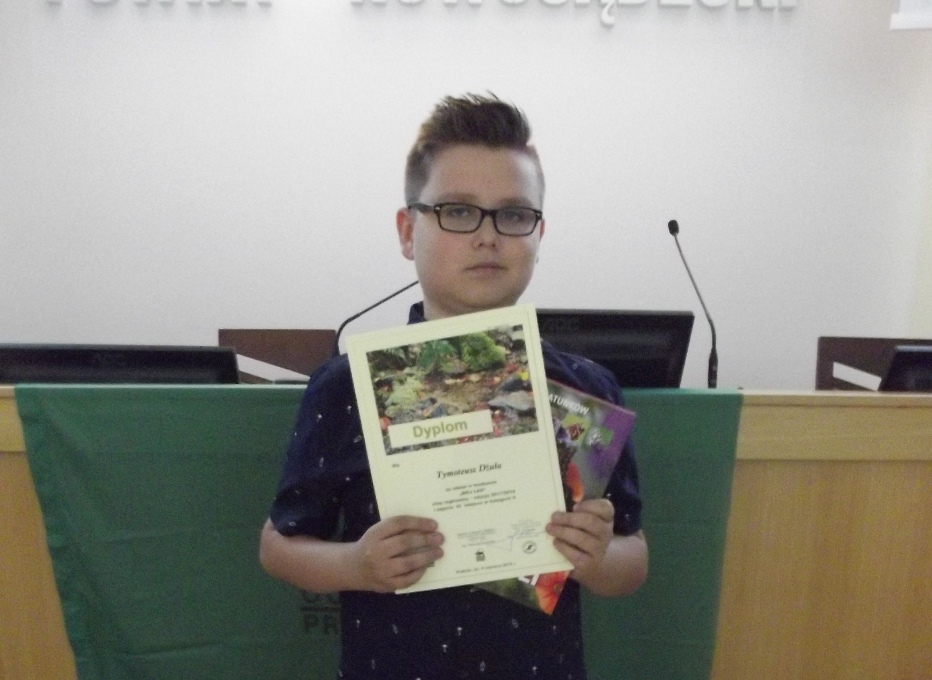 Miło nam poinformować, że w gronie laureatów znalazł się uczeń naszej gminy – Tymoteusz Dżuła, który zajął III miejsce w kategorii szkół podstawowych. Zaprezentował prace pod tytułem ,,Runo leśne i jego mieszkańcy”, w której wykazał się doskonałą znajomością tematu i kreatywnością.