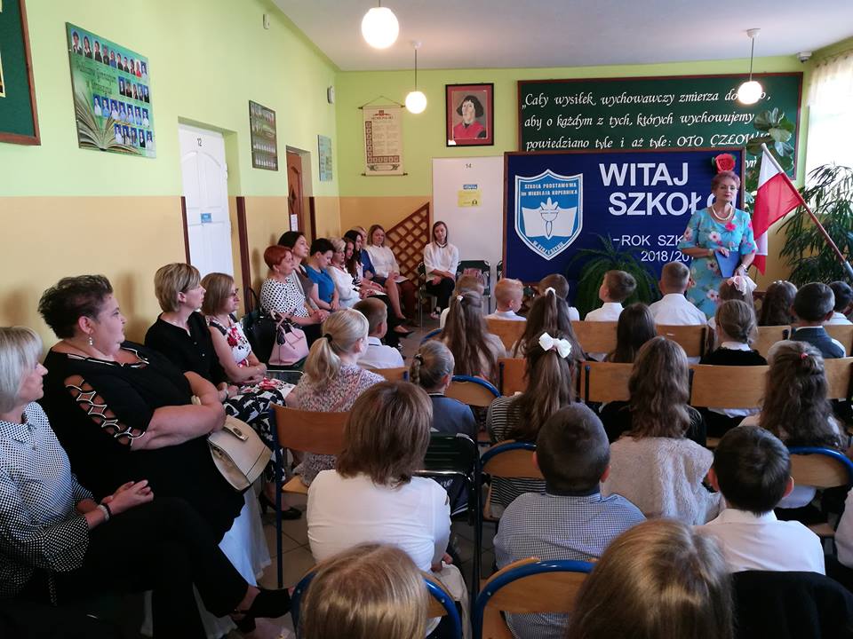 3 września 2018 roku odbyło się rozpoczęcie roku szkolnego w Zespole Szkolno – Przedszkolnym w Strzeszynie. Po pierwszym dzwonku i uroczystym odśpiewaniu hymnu państwowego zgromadzonych w budynku szkoły przywitała Dyrektor Szkoły pani Jadwiga Szara. Serdeczne słowa powitania pani dyrektor skierowała do nauczycieli, uczniów i rodziców. Życzyła uczniom i nauczycielom sukcesów, zadowolenia i satysfakcji z pracy. W roku szkolnym 2018/2019 w szkole podstawowej im. Mikołaja Kopernika prace rozpoczyna jeden nowy nauczyciel: pani Patrycja Bochenek.