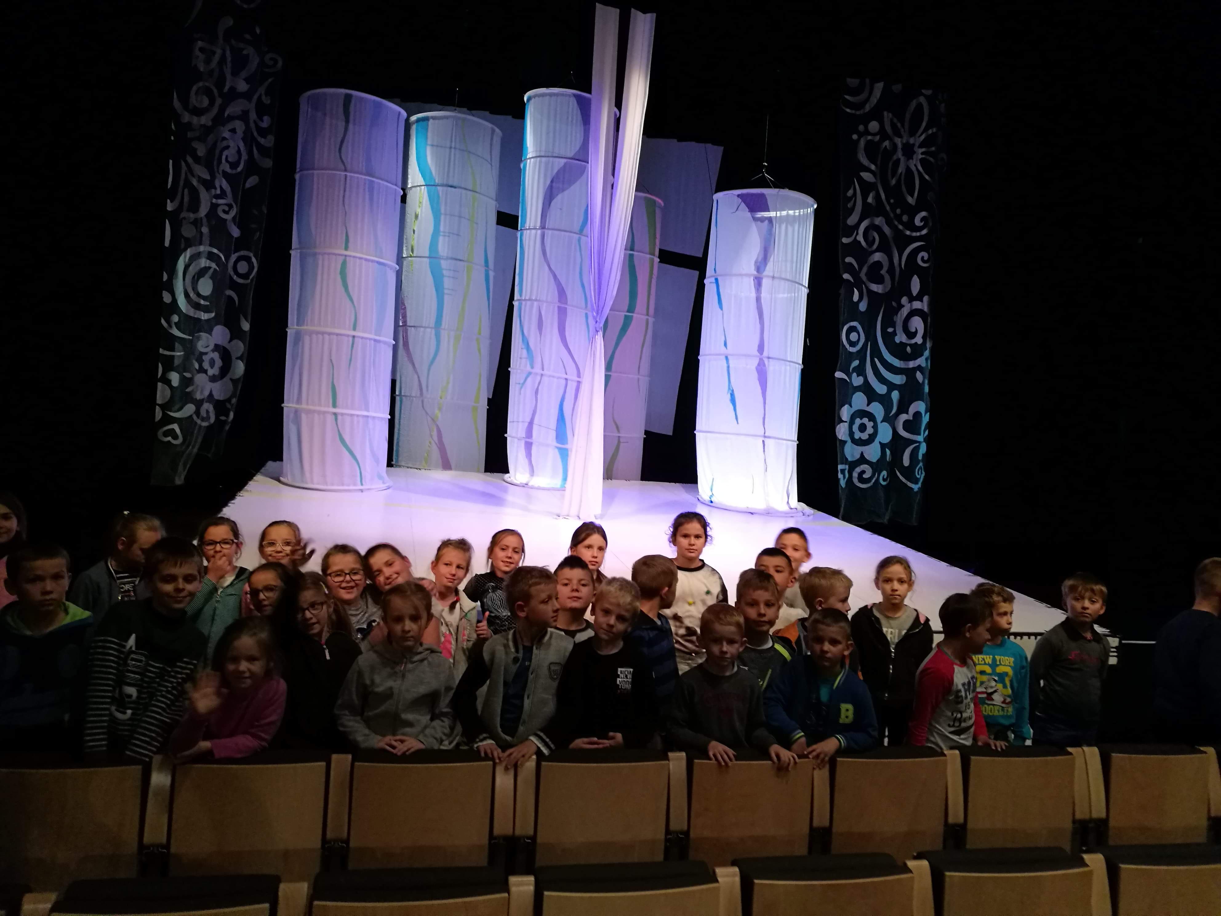 W Teatrze ,, MASKA ” obejrzeli spektakl teatralny pt. ,, Calineczka ”, w którym poprzez zabawną formę, ruch i dźwięk, tworzony na żywo na scenie, dzieci poznawały przygody głównej bohaterki. Zamiast słów aktorzy komunikowali się z widzami za pomocą obrazów i gestów, które działały jak lustro, w którym maluchy mogły się ,,przejrzeć”. Nie zabrakło również pięknej scenografii, kostiumów, gry świateł, itp. Aby oddać skalę otaczającego Calineczkę świata, twórcy spektaklu postawili na wykorzystanie ciekawych, wielkich form artystycznych, które dzięki aktorom tworzyły sceniczną rzeczywistość.