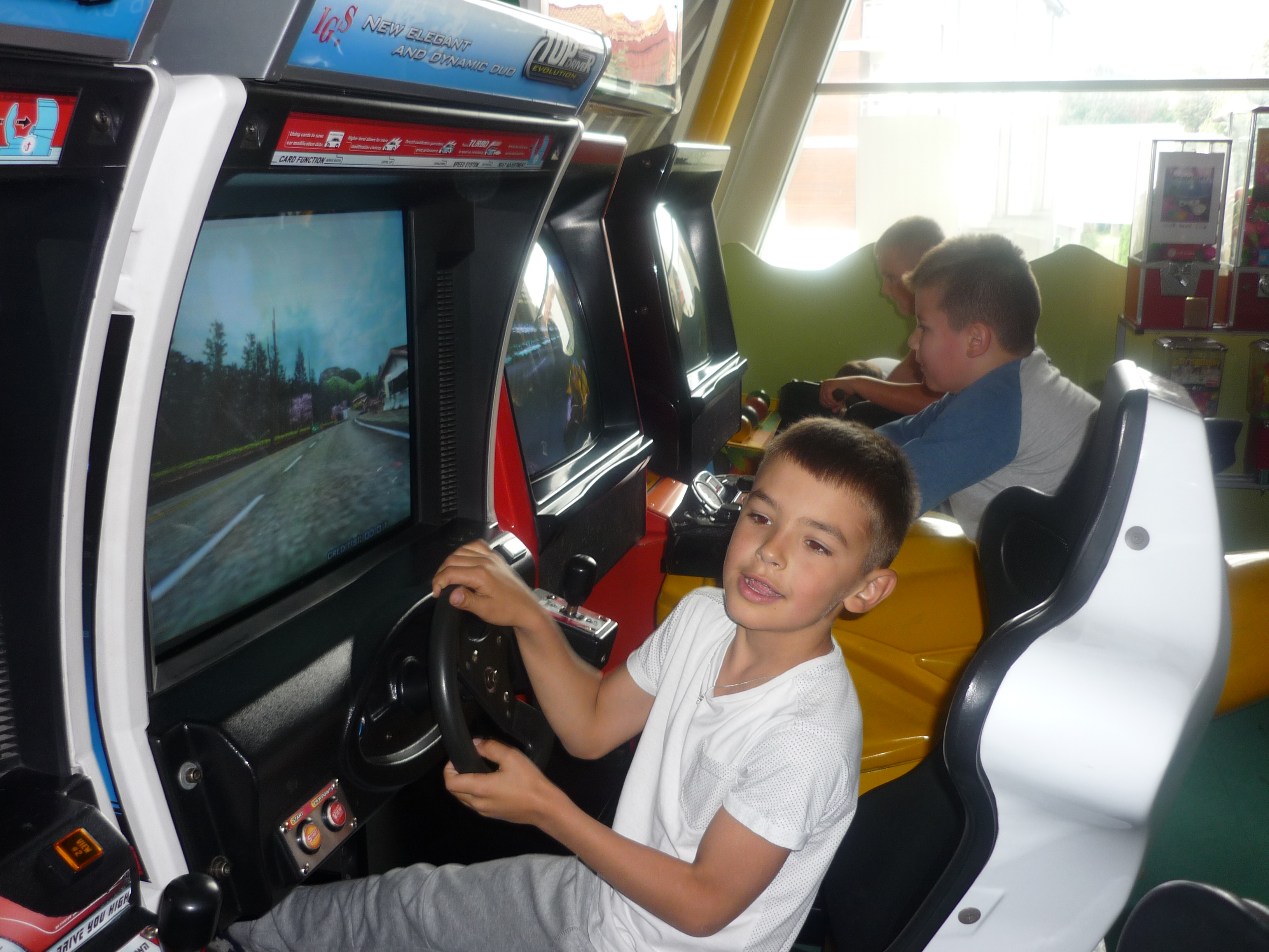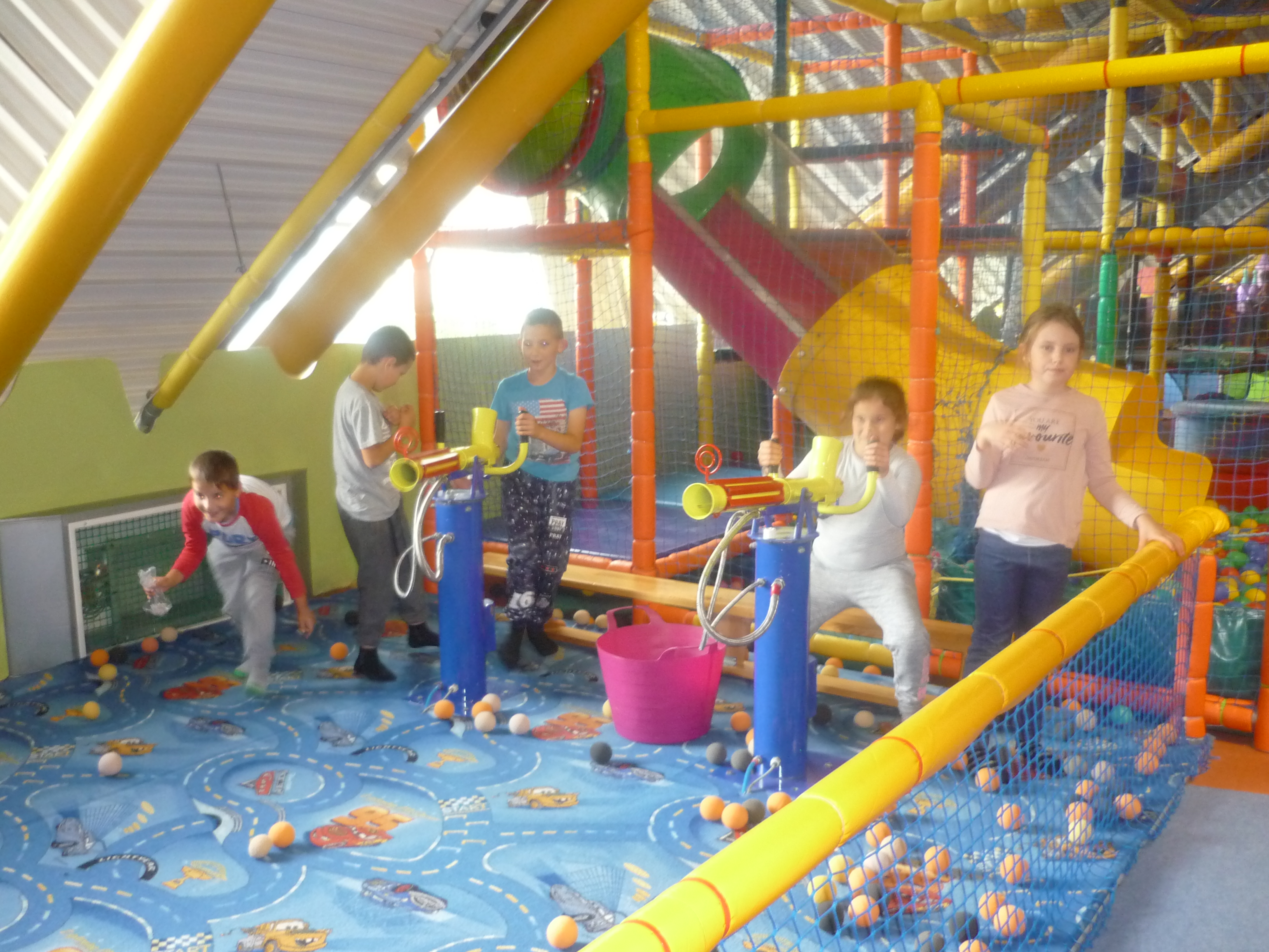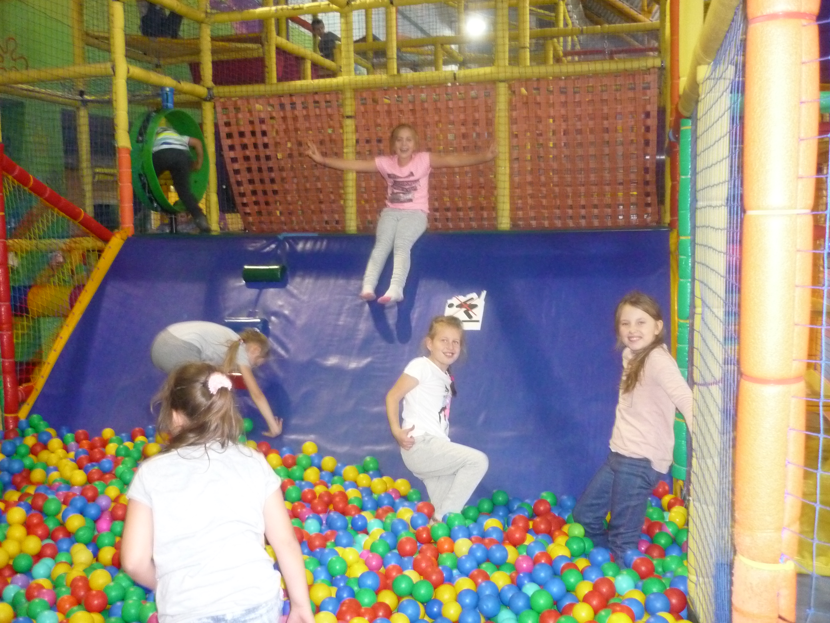 Trzecim punktem naszej wycieczki były wesołe zabawy w ,, FANTAZJI” – największym na Podkarpaciu Centrum Zabaw i Rozrywki dla dzieci. Tam, podczas dwugodzinnego pobytu, uczniowie korzystali z wielu atrakcyjnych form. Po zapoznaniu się z regulaminem, jaki obowiązuje w centrum zabaw, dzieciaki bawiły się min. na wielopoziomowej konstrukcji składającej się z labiryntów rur, przejść, zjeżdżalni, sali luster i basenów z piłeczkami. Do dyspozycji miały również olbrzymie dmuchańce do zjeżdżania, skakania i wspinania się, a także armatki pneumatyczne, ścianki wspinaczkowe, trampolinę, dziecięce pojazdy, klocki konstrukcyjno – przestrzenne, strefę z symulatorami do gier i wiele innych. Każdy mógł znaleźć coś dla siebie. Dzieci bawiły się wyśmienicie, miały okazję wykazać się zręcznością, zwinnością oraz sprawnością. Podczas krótkich przerw na odpoczynek chętnie zamawiały w kawiarence napoje oraz ciepłe przekąski, a także odbierały swoje nagrody rzeczowe, wygrane podczas zabaw.