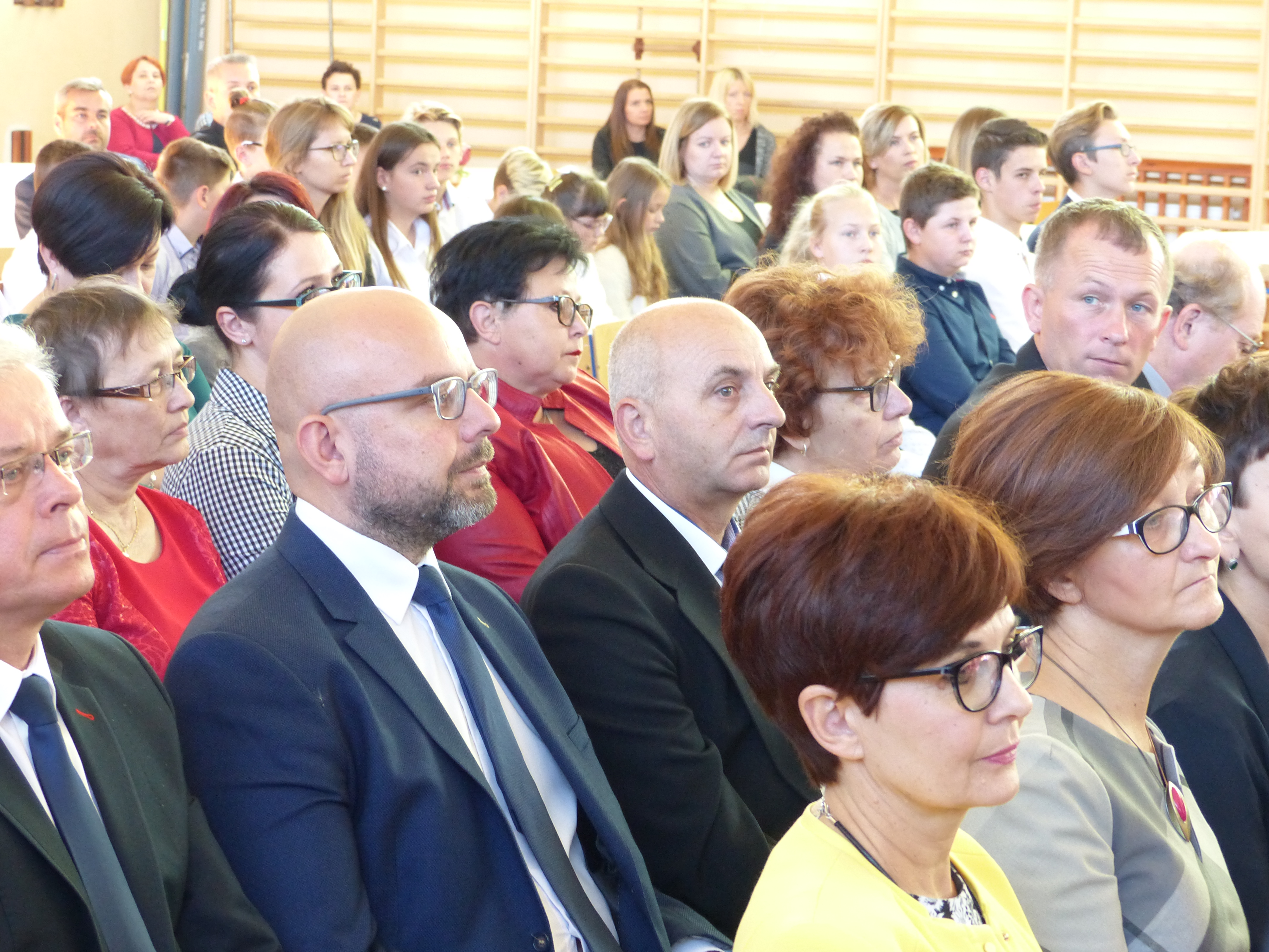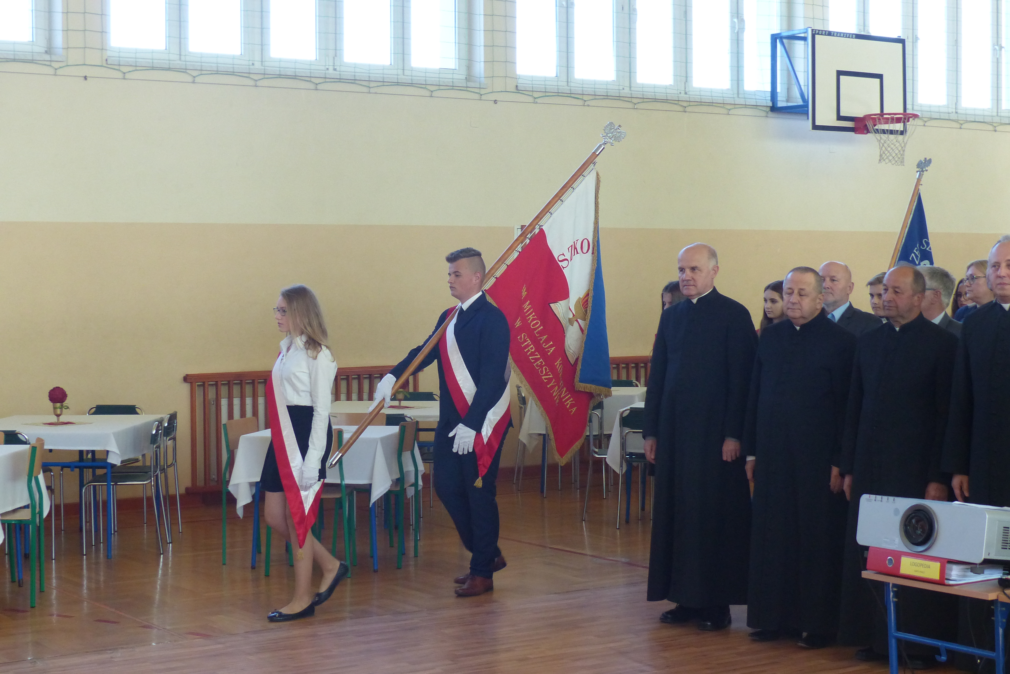 Zaproszenie na uroczystość przyjęli: opiekunowie duchowni społeczności lokalnej w osobach; ks. Czesława Stanaszka, Dziekana Dekanatu Bieckiego, ks. Janusza Kurasza, Proboszcza parafii pw. Bożego Ciała w Bieczu, ks. Stanisława Pałki, Proboszcza parafii pw. Św. Andrzeja w Rożnowicach oraz ks. Stanisława Mularza, katechety. Dyrektora Delegatury Kuratorium Oświaty w Nowym Sączu reprezentował Pan Adam Skwarło, Wizytator. Wśród przybyłych Gości byli: Pani Renata Gołębiowska, Dyrektor Zespołu Obsługi Jednostek w Bieczu, Pani Iwona Czeluśniak, Skarbnik Gminy Biecz, Radni Rady Miejskiej w Bieczu, Panie i Panowie Dyrektorzy i Wicedyrektorzy Szkół Gminy Biecz oraz Dyrektorzy Szkół Ponadpodstawowych, Pan Włodzimierz Makuła, Prezes Zarządu Oddziału ZNP w Bieczu, przedstawiciele instytucji współpracujących ze szkołami naszej Gminy: Pani Elżbieta Knapik, Dyrektor Biblioteki Biecz, Pani Anna Ryba, Kierownik Miejsko- Gminnego Ośrodka Pomocy Społecznej w Bieczu, Pani Agnieszka Kołotyło, Kierownik Warsztatu Terapii Zajęciowej w Bieczu, Pani Marta Piotrowska, Prezes Zarządu Stowarzyszenia Przyjaciół Wsi Strzeszyn, Pan Kazimierz Wszołek, Prezes Miejskiego Przedsiębiorstwa Gospodarki Komunalnej w Bieczu, Pan Marcin Stępień, Komendant Posterunku w Bieczu, Pan Leszek Stanula, Prezes Ochotniczej Straży Pożarnej w Bieczu i Pani Jadwiga Żurowska, Przewodnicząca Rady Rodziców ZS-P w Strzeszynie. Uroczystość uświetniły poczty sztandarowe szkół Gminy Biecz.