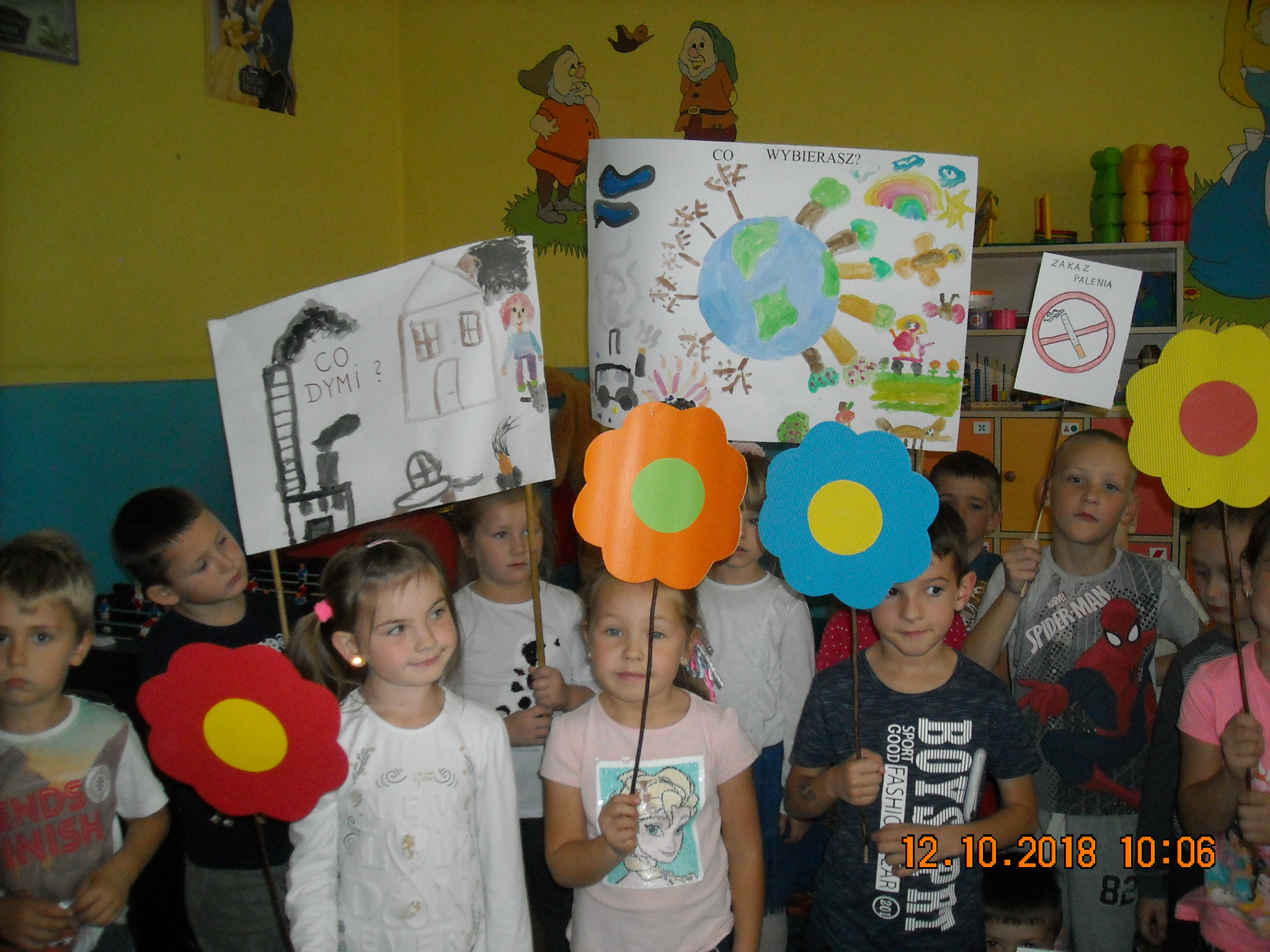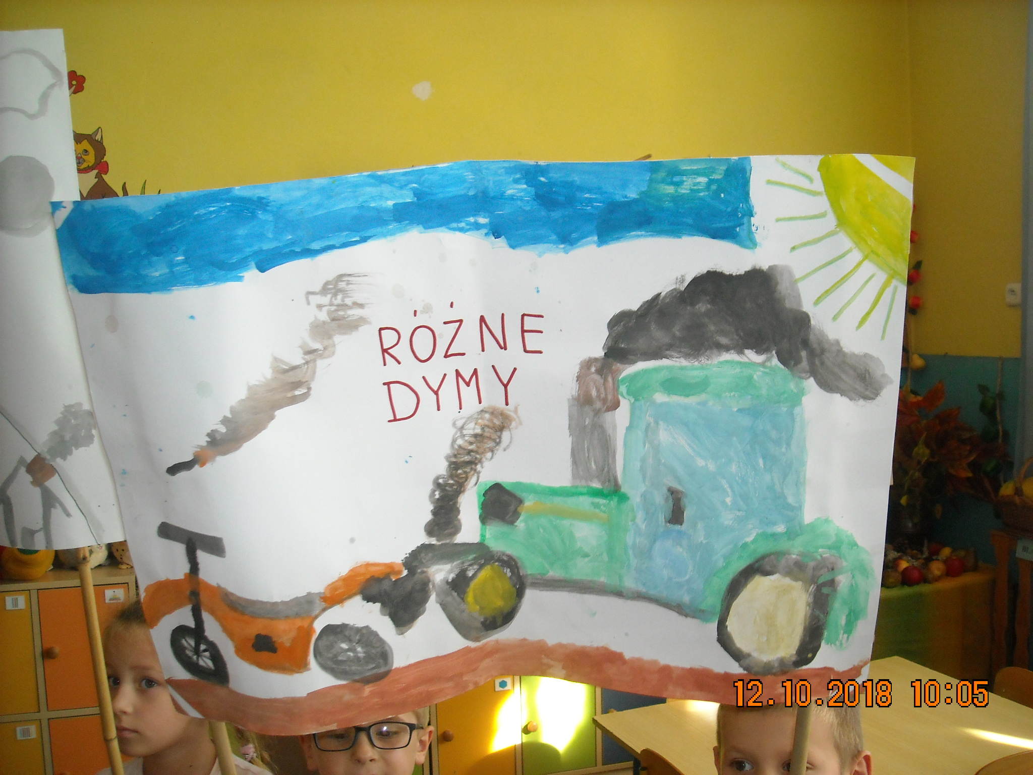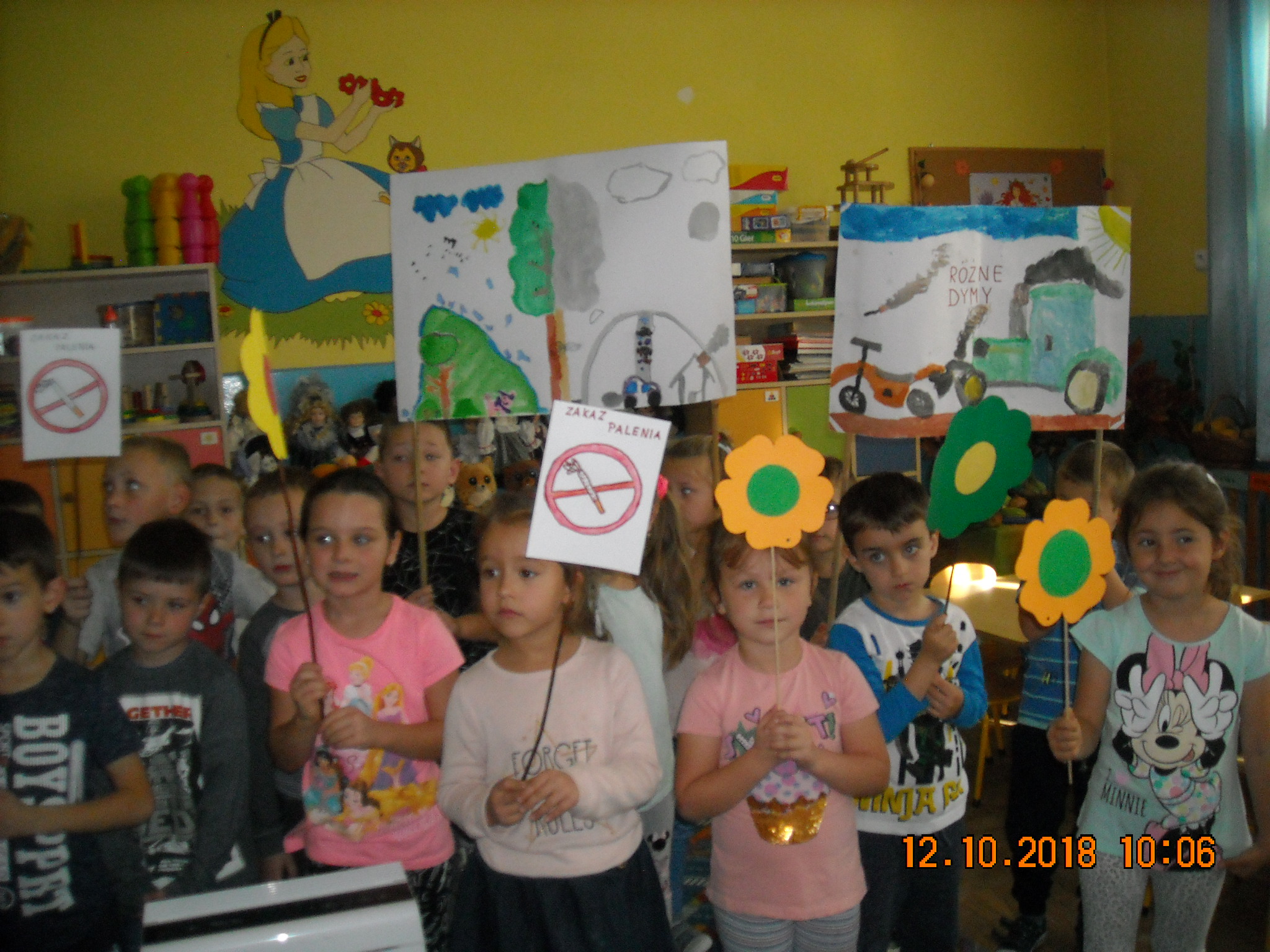 Przedszkolaki malowały plakaty na temat „Czyste powietrze”, „ Co wybierasz”, „ Co dymi”, własnoręcznie wykonały znaki „ Zakaz palenia”. Zorganizowano również przemarsz pod hasłem „Czyste powietrze, podczas którego dzieci z plakatami i ulotkami – „ Nie pal śmieci”, „ Śmieci palenie niszczy otoczenie”, „ Czy to w zimie, czy to w lecie czyste powietrze najlepsze na świecie” apelowały do dorosłych aby dbali o czystość powietrza.