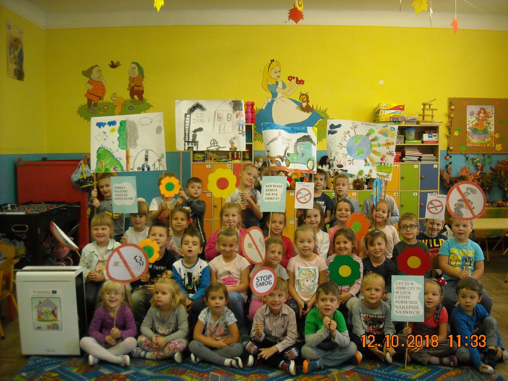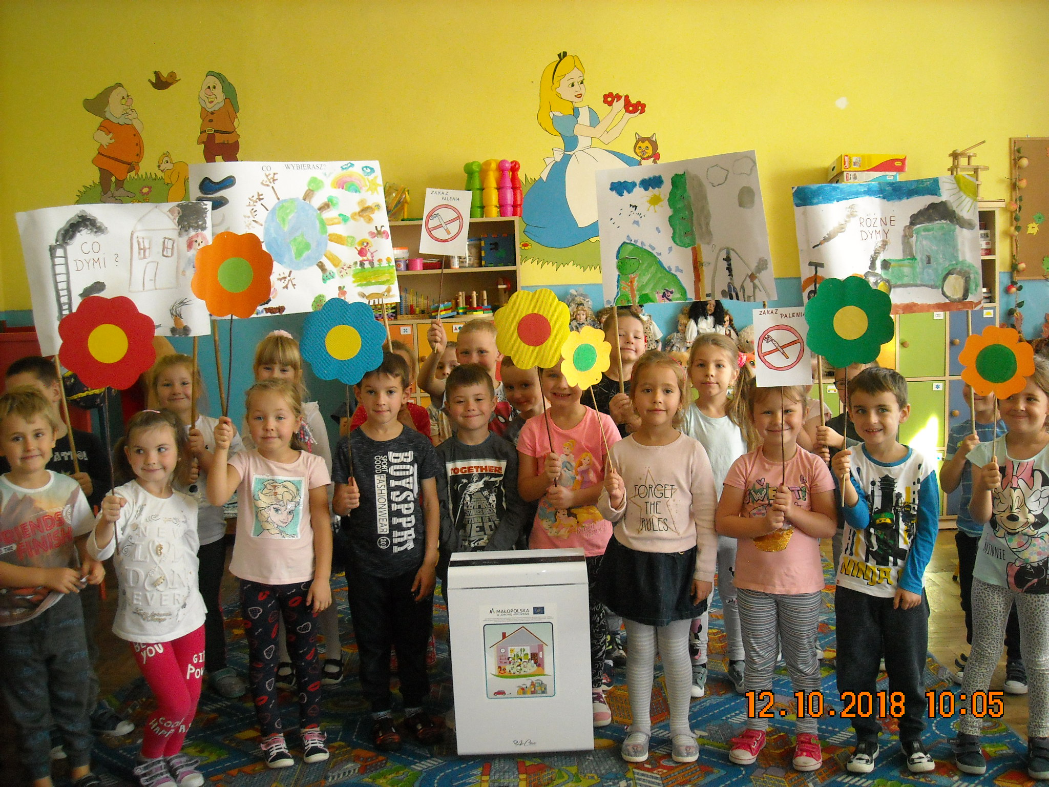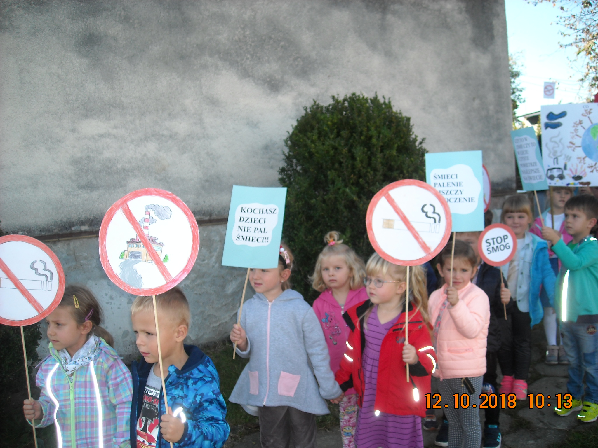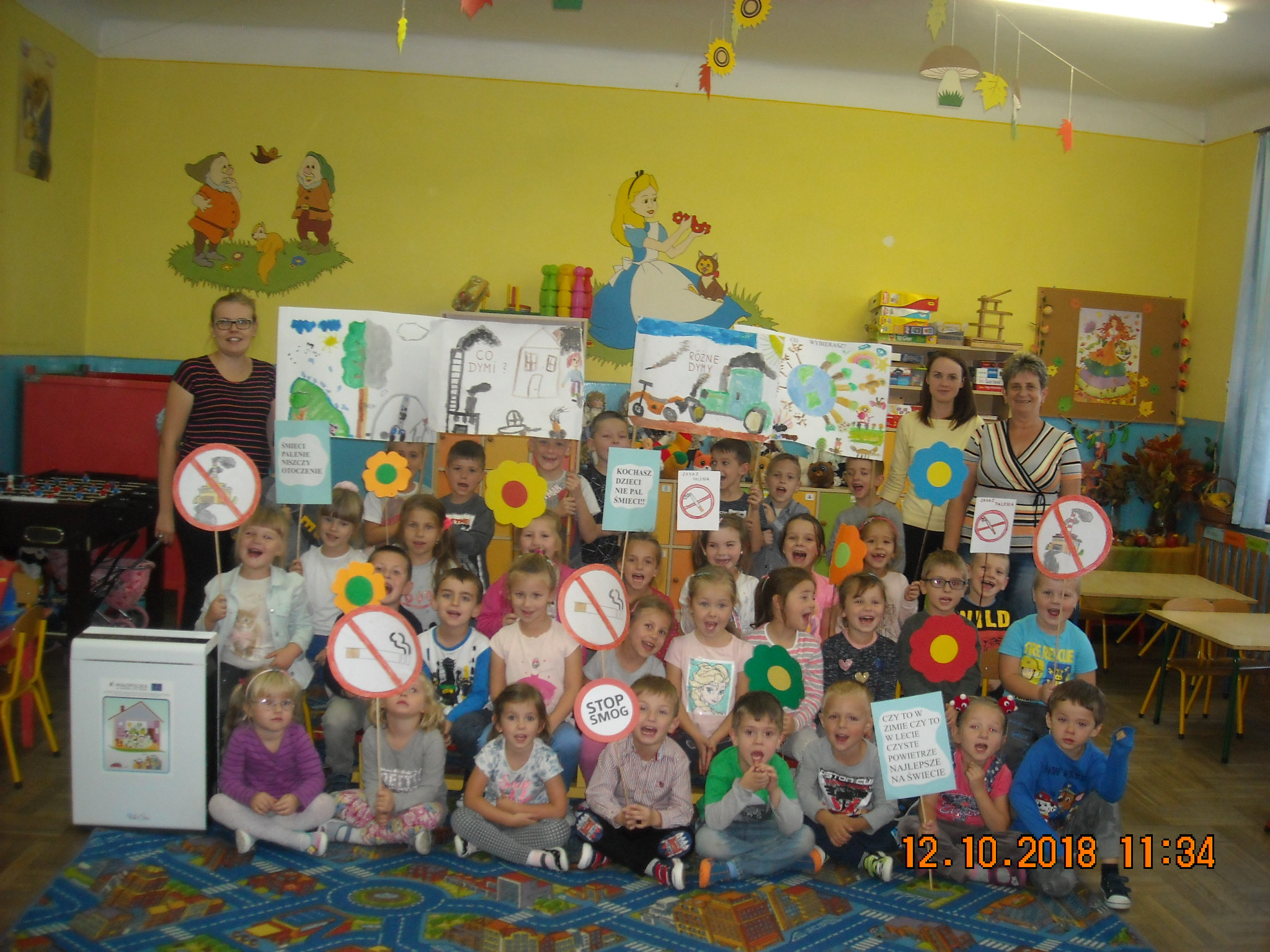 Przedszkolaki malowały plakaty na temat „Czyste powietrze”, „ Co wybierasz”, „ Co dymi”, własnoręcznie wykonały znaki „ Zakaz palenia”. Zorganizowano również przemarsz pod hasłem „Czyste powietrze, podczas którego dzieci z plakatami i ulotkami – „ Nie pal śmieci”, „ Śmieci palenie niszczy otoczenie”, „ Czy to w zimie, czy to w lecie czyste powietrze najlepsze na świecie” apelowały do dorosłych aby dbali o czystość powietrza.