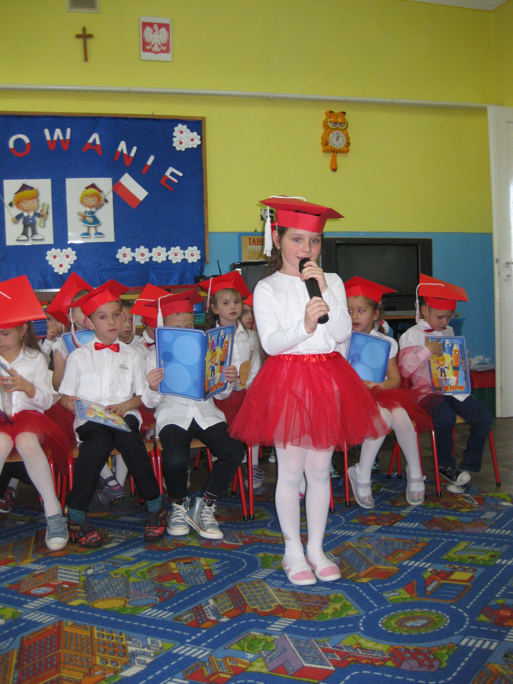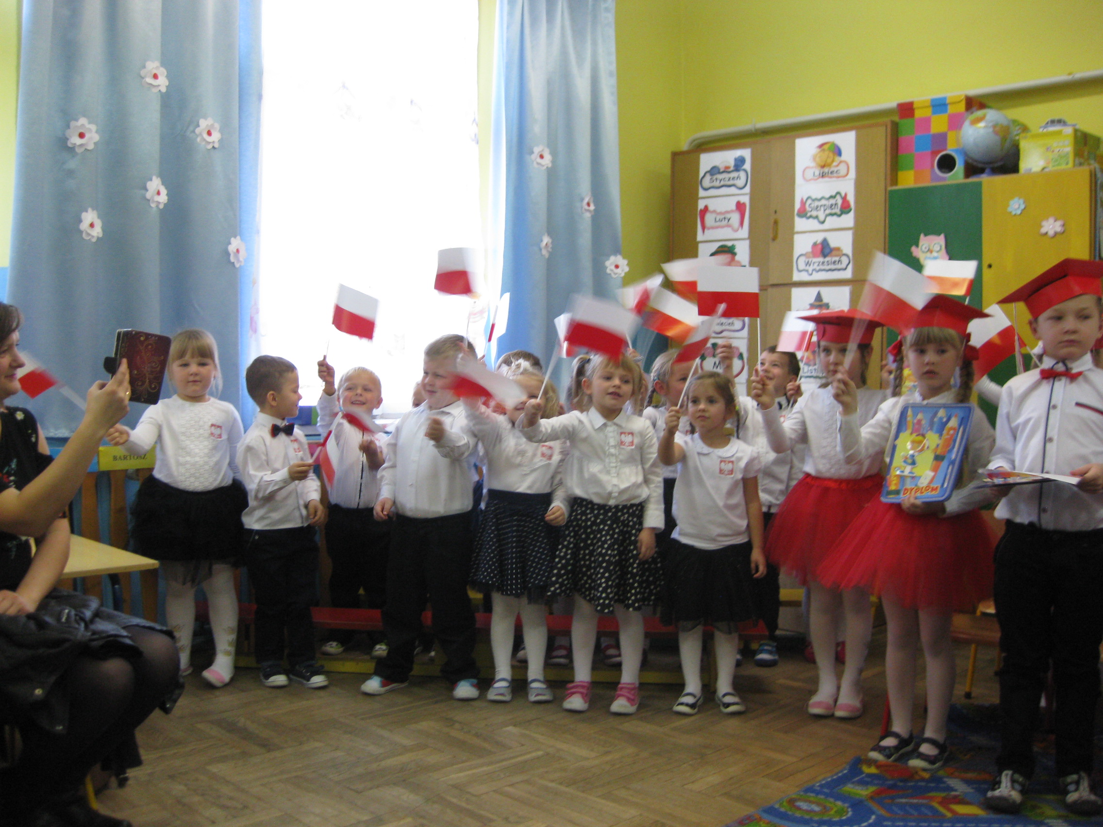 Były piosenki o Polsce, wiersze o symbolach narodowych, inscenizacje. Po części artystycznej dzieci obiecały: zgodnie się bawić, przychodzić każdego dnia uśmiechnięte, słuchać pani, pomagać kolegom, być dzielnym przedszkolakiem i starszakiem.