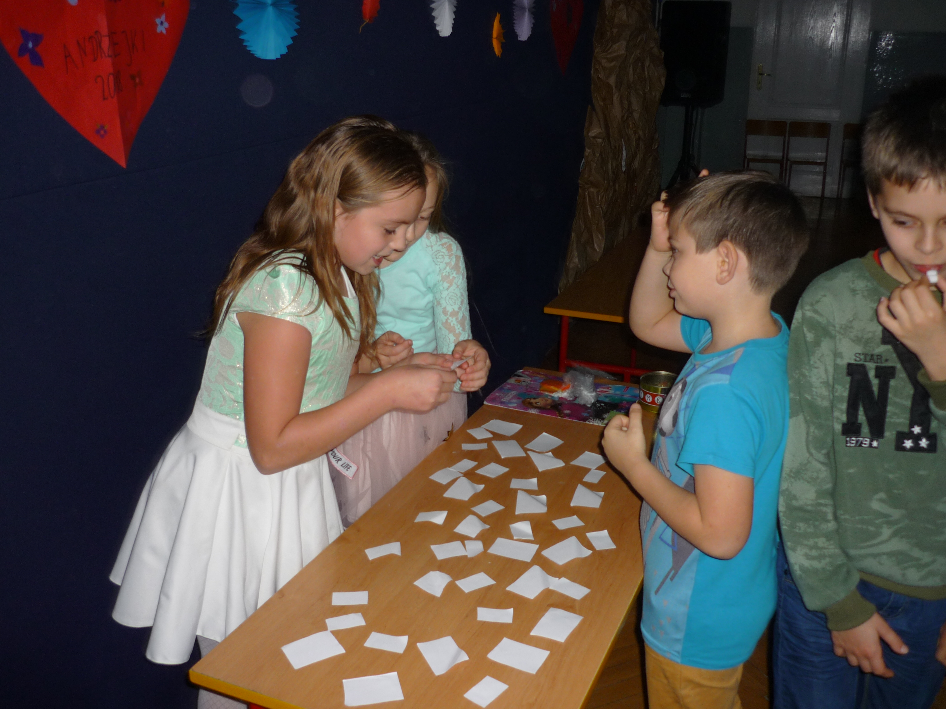 Nie zabrakło przestawiania bucików, przekłuwania serc z imionami przyszłych sympatii, ciasteczek z niespodziankami, rzutów monetą oraz wróżb z owocami, nazwami kwiatów i zawodów. Była również wesoła ,, sesja zdjęciowa” w ANDRZEJKOWEJ FOTOBUDCE.