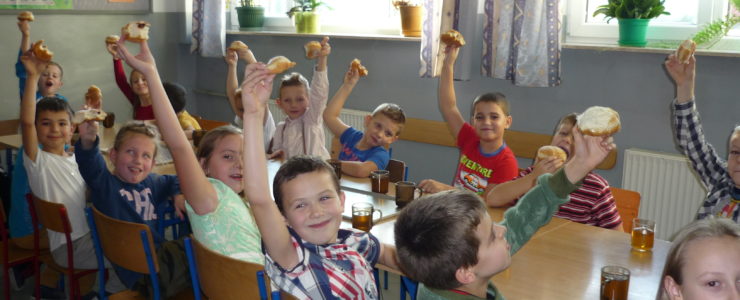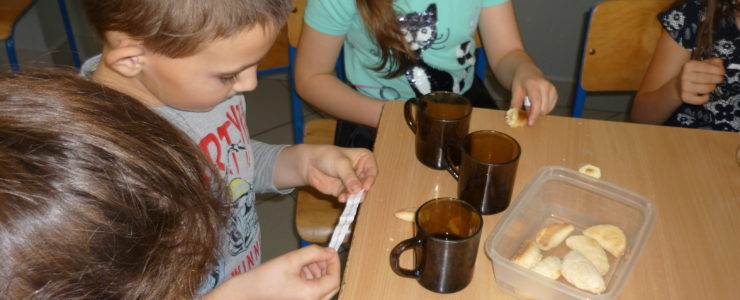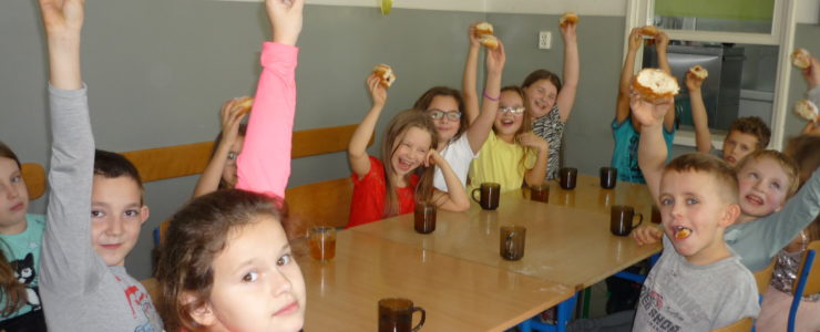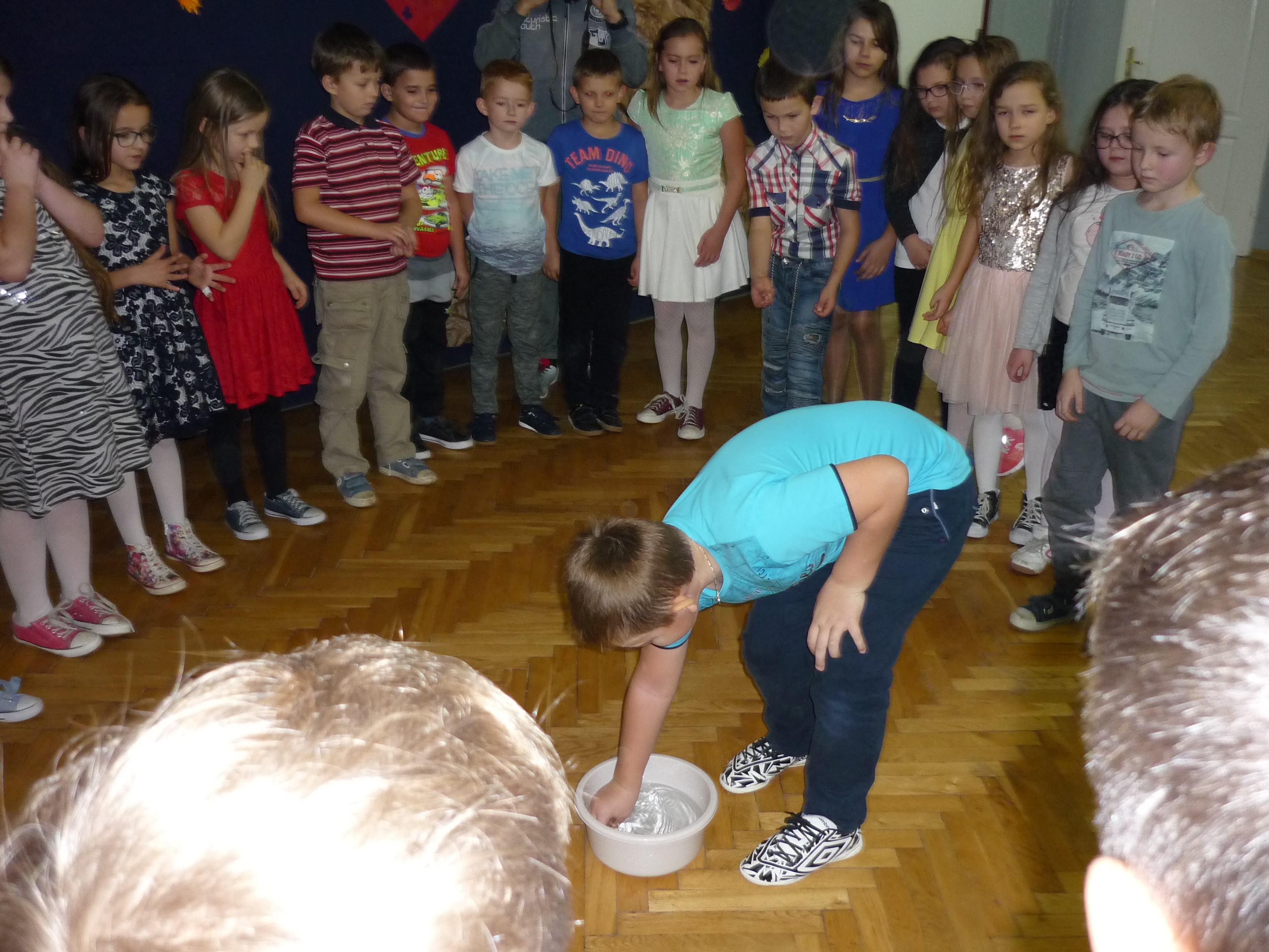 Przy dźwiękach znanych i lubianych przebojów, andrzejkowe wróżby przeplatane były tańcami oraz słodkim poczęstunkiem o który dla wszystkich uczestników zabawy, zadbały panie wychowawczynie klas I-III.