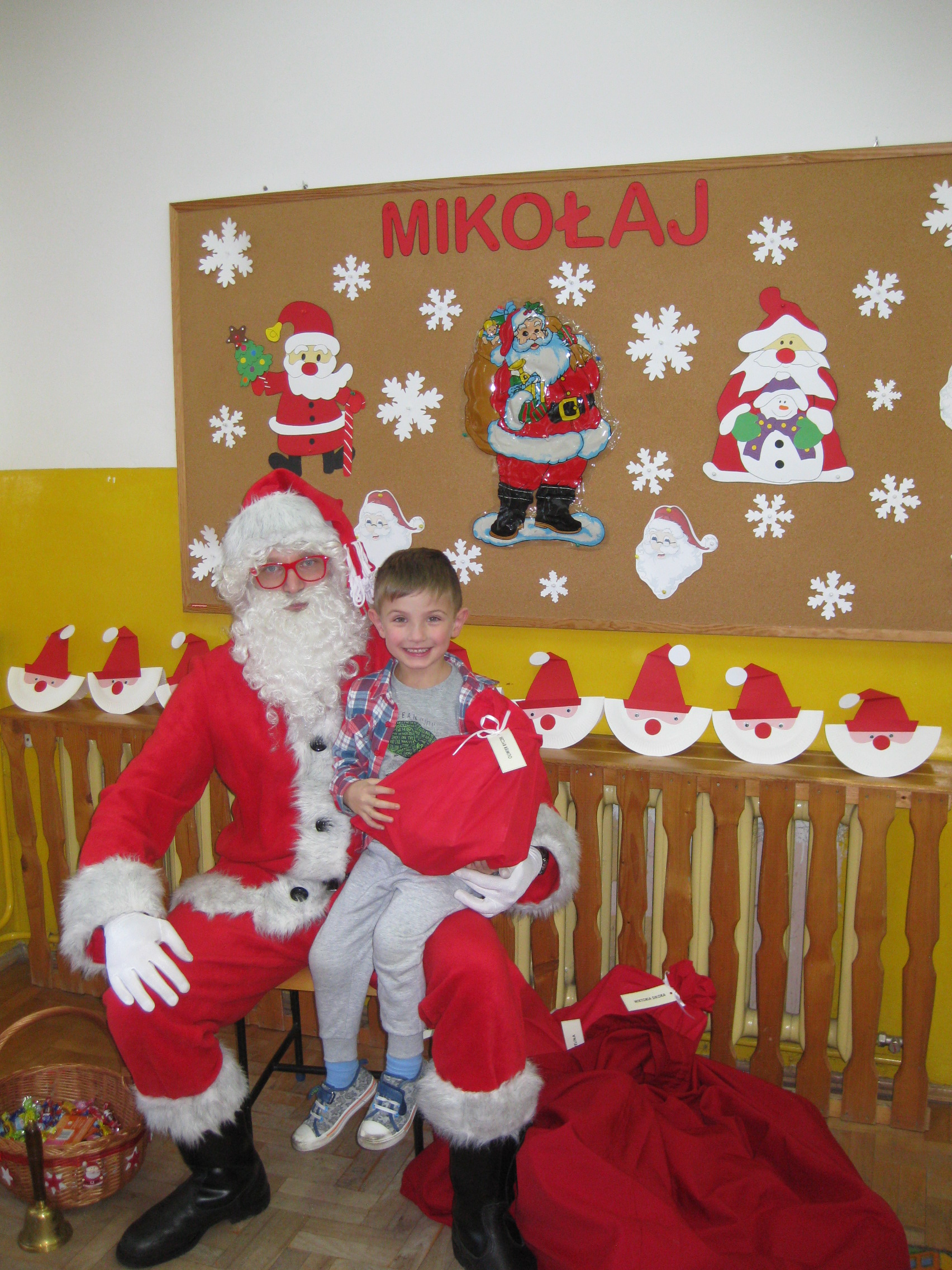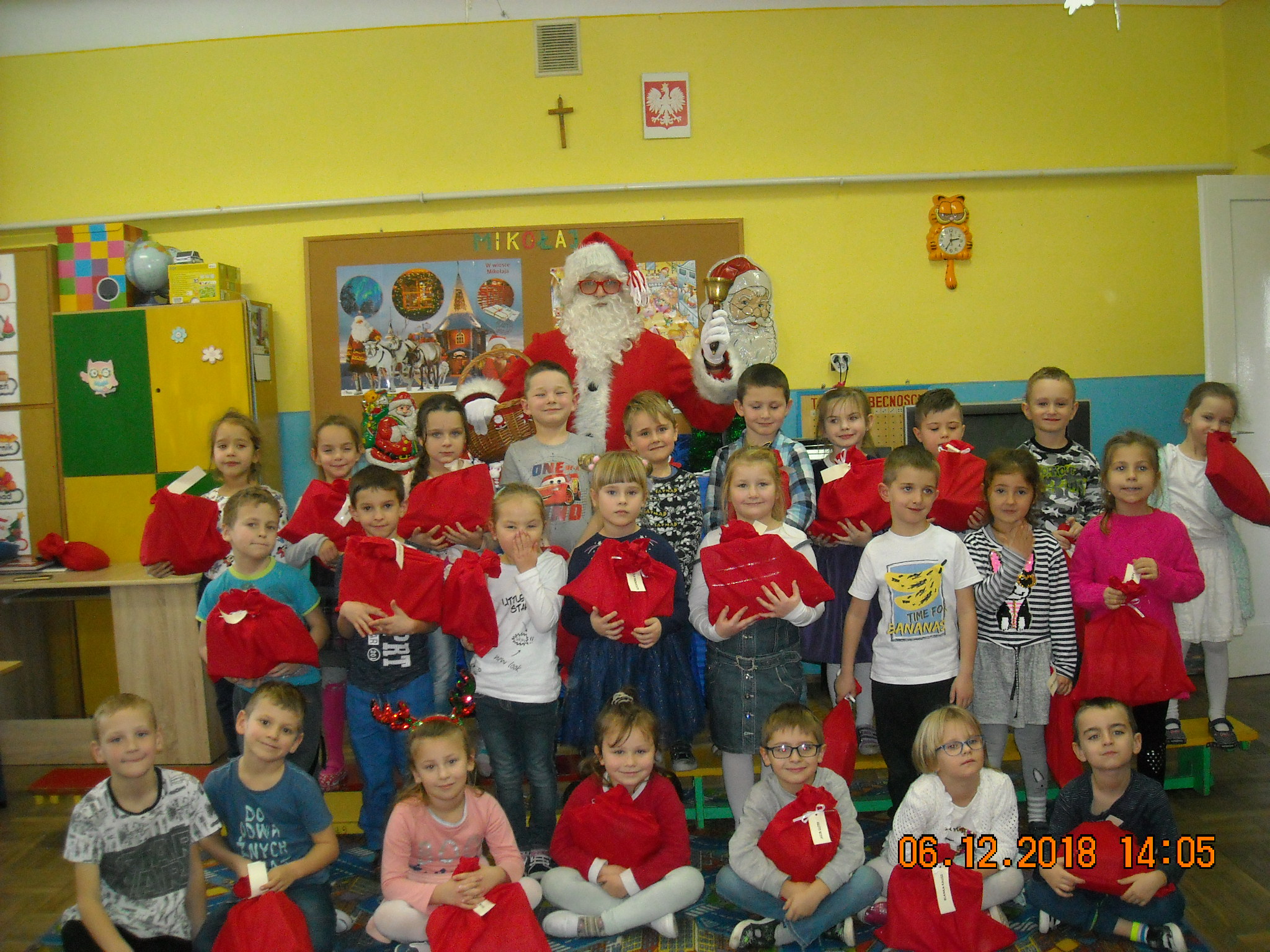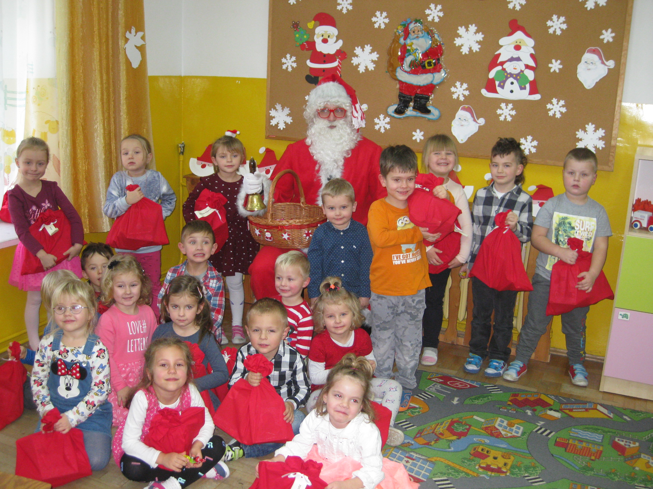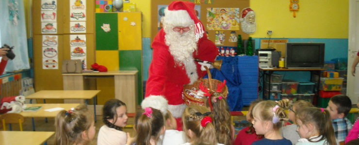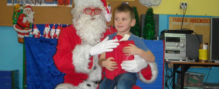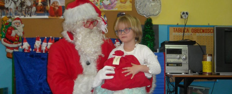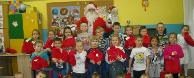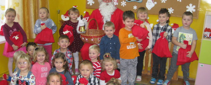 Dnia 6 grudnia do przedszkolaków zawitał Święty Mikołaj. Od samego rana dzieci nie mogły się doczekać miłego gościa. Gdy tylko pojawił się w drzwiach na wszystkich buźkach pokazał się piękny uśmiech. Dzieci z ogromną radością przywitały Św. Mikołaja śpiewając mu piosenki i recytując wiersze. Każde dziecko złożyło obietnice, iż kolejny rok będzie grzeczne i posłuszne. Po złożonej obietnicy Św. Mikołaj wszystkich obdarzył prezentami i obiecał, że za rok na pewno przedszkolaków odwiedzi. Na koniec spotkania zrobiliśmy sobie pamiątkowe zdjęcia z Mikołajem.