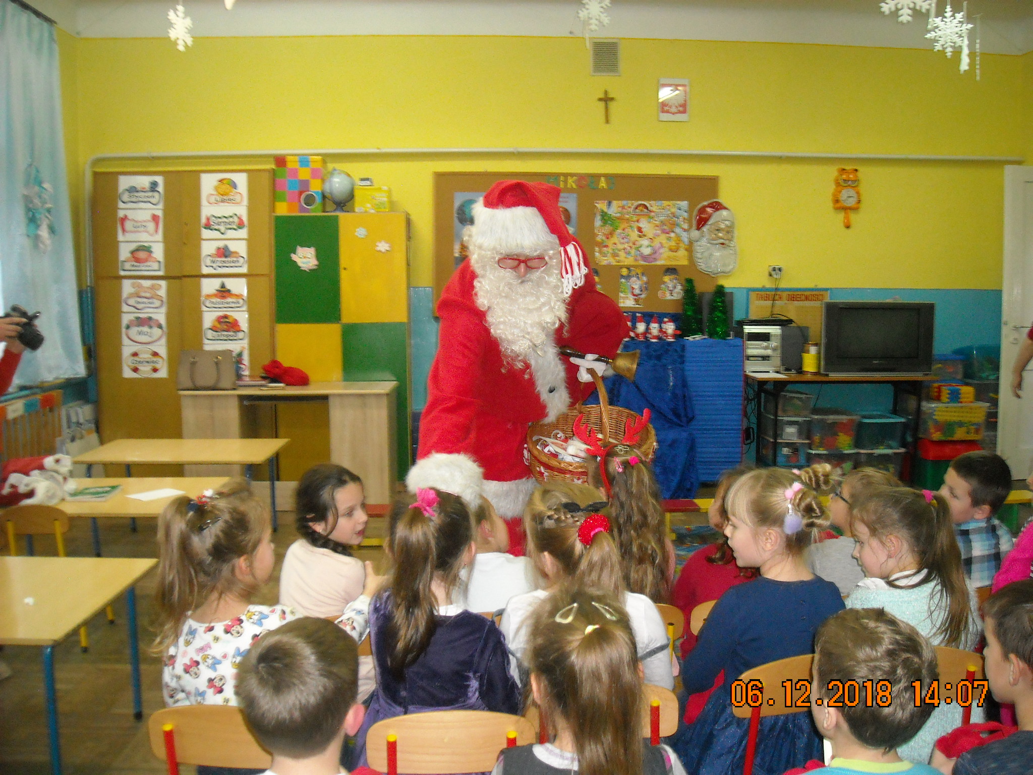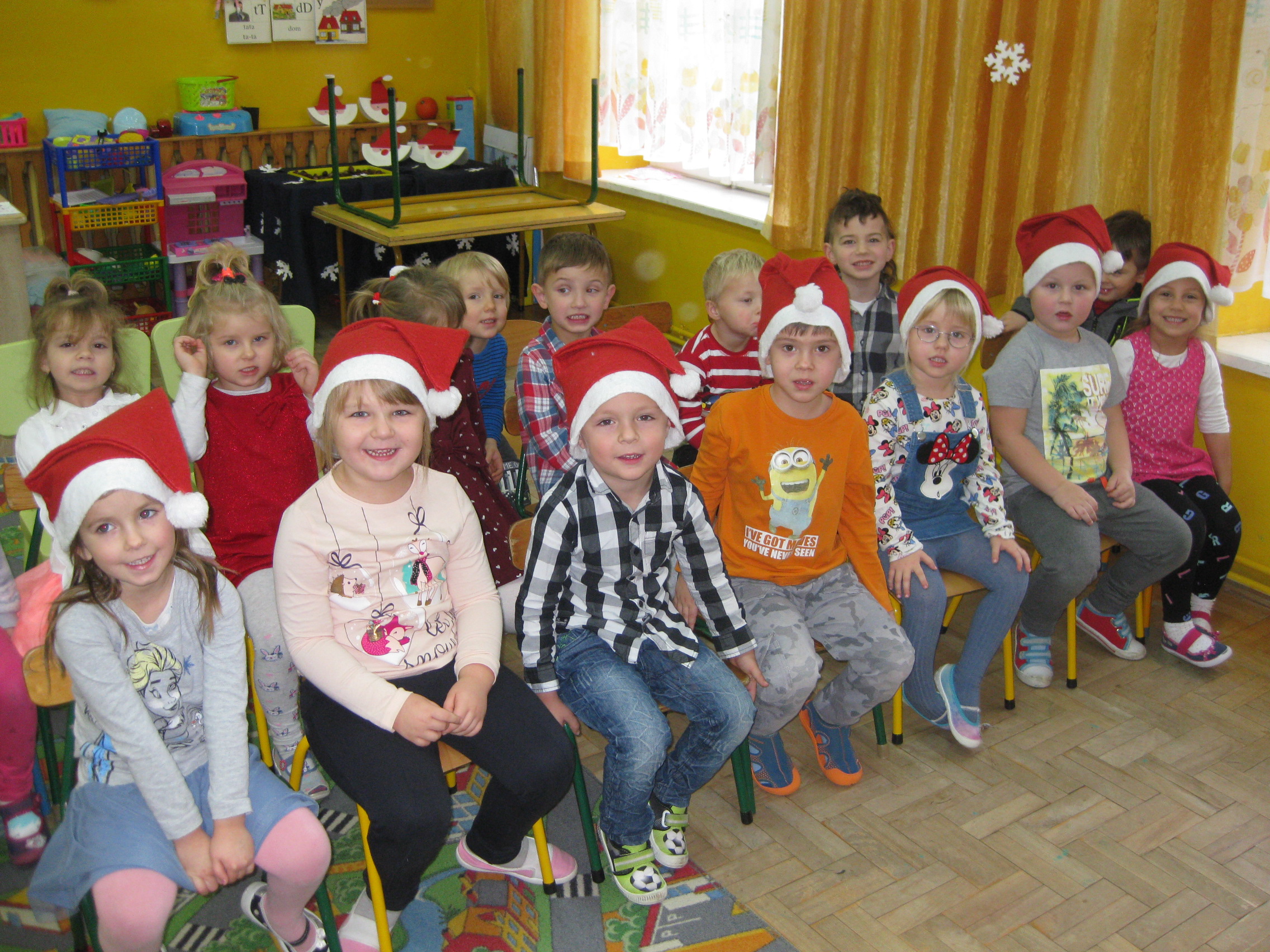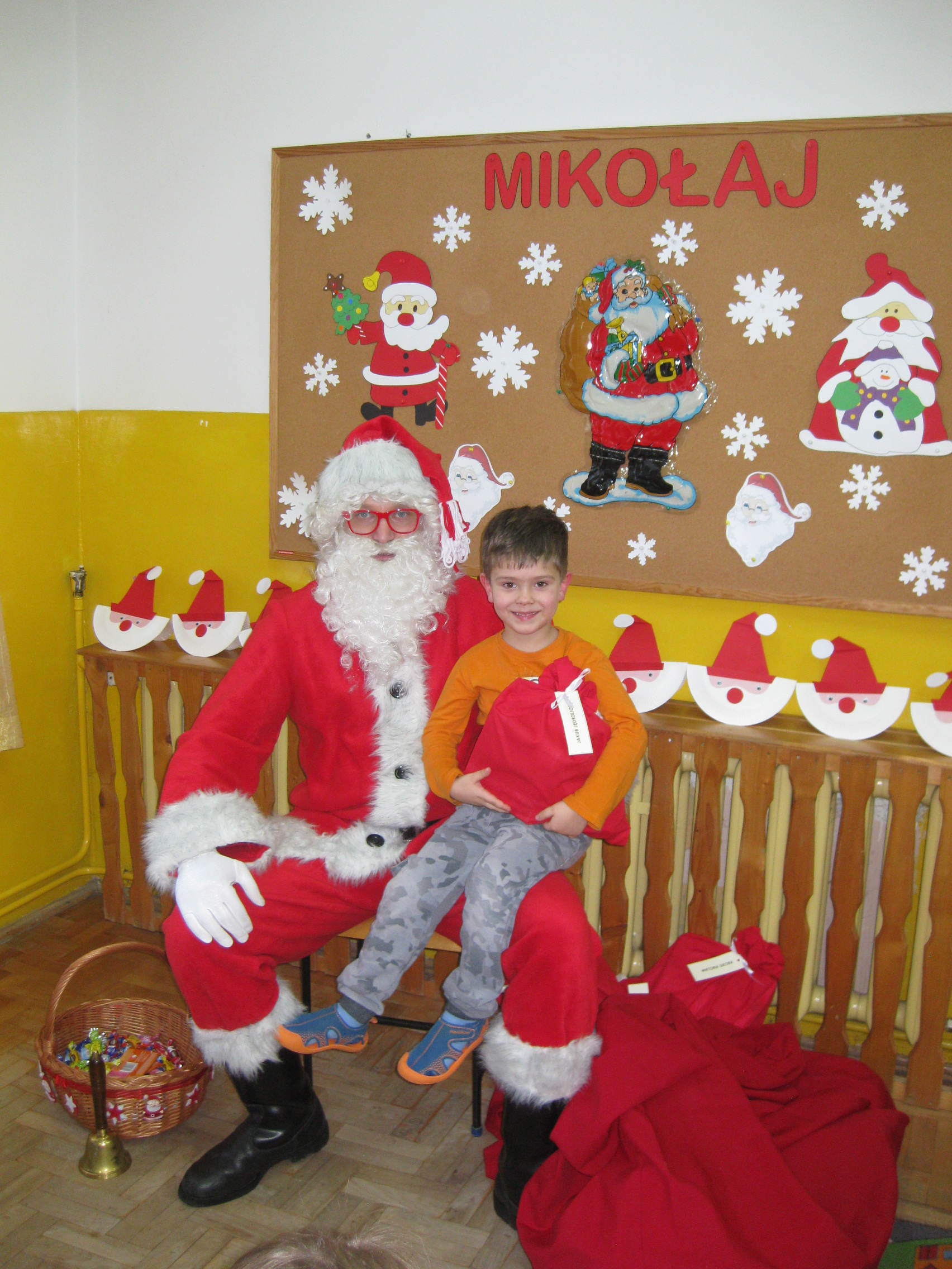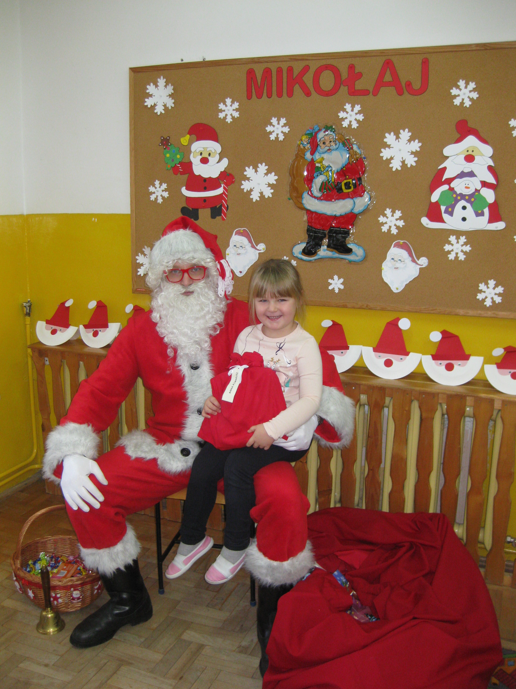 Dnia 6 grudnia do przedszkolaków zawitał Święty Mikołaj. Od samego rana dzieci nie mogły się doczekać miłego gościa. Gdy tylko pojawił się w drzwiach na wszystkich buźkach pokazał się piękny uśmiech. Dzieci z ogromną radością przywitały Św. Mikołaja śpiewając mu piosenki i recytując wiersze. Każde dziecko złożyło obietnice, iż kolejny rok będzie grzeczne i posłuszne. Po złożonej obietnicy Św. Mikołaj wszystkich obdarzył prezentami i obiecał, że za rok na pewno przedszkolaków odwiedzi. Na koniec spotkania zrobiliśmy sobie pamiątkowe zdjęcia z Mikołajem.