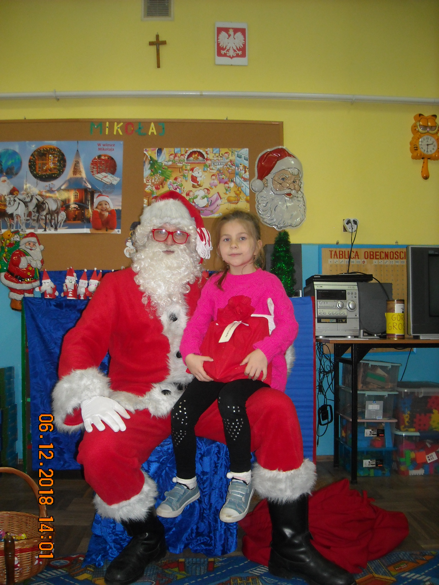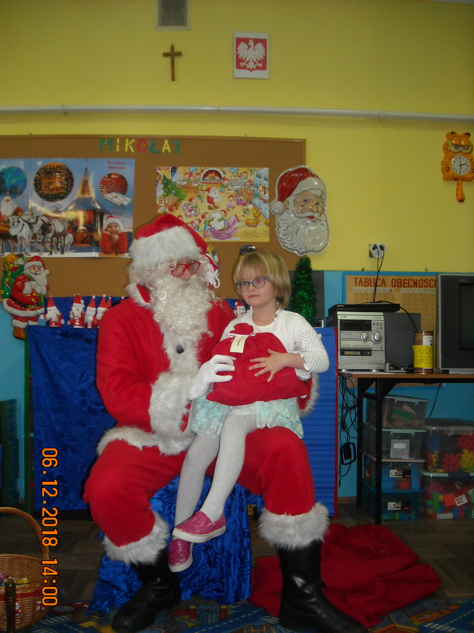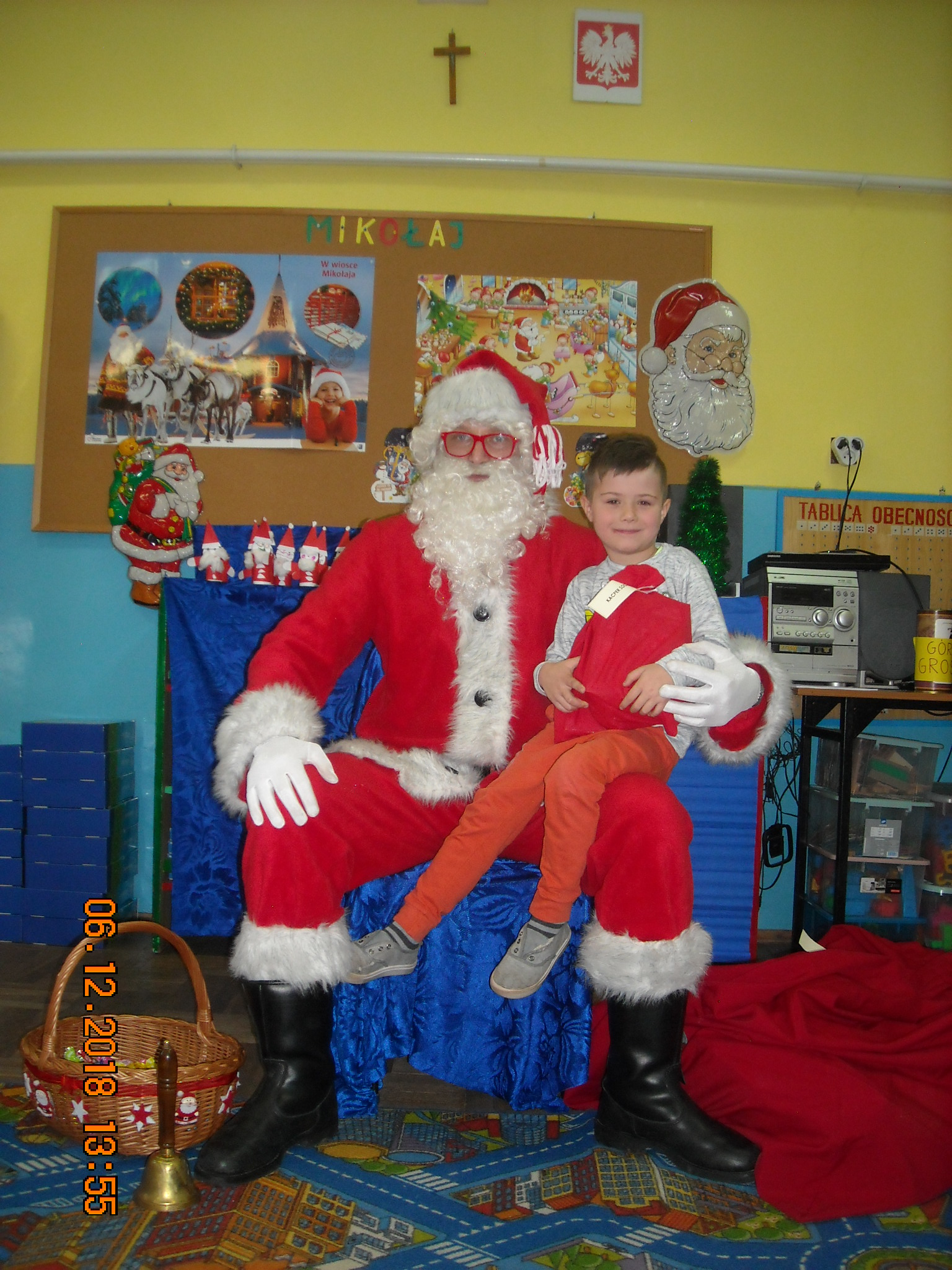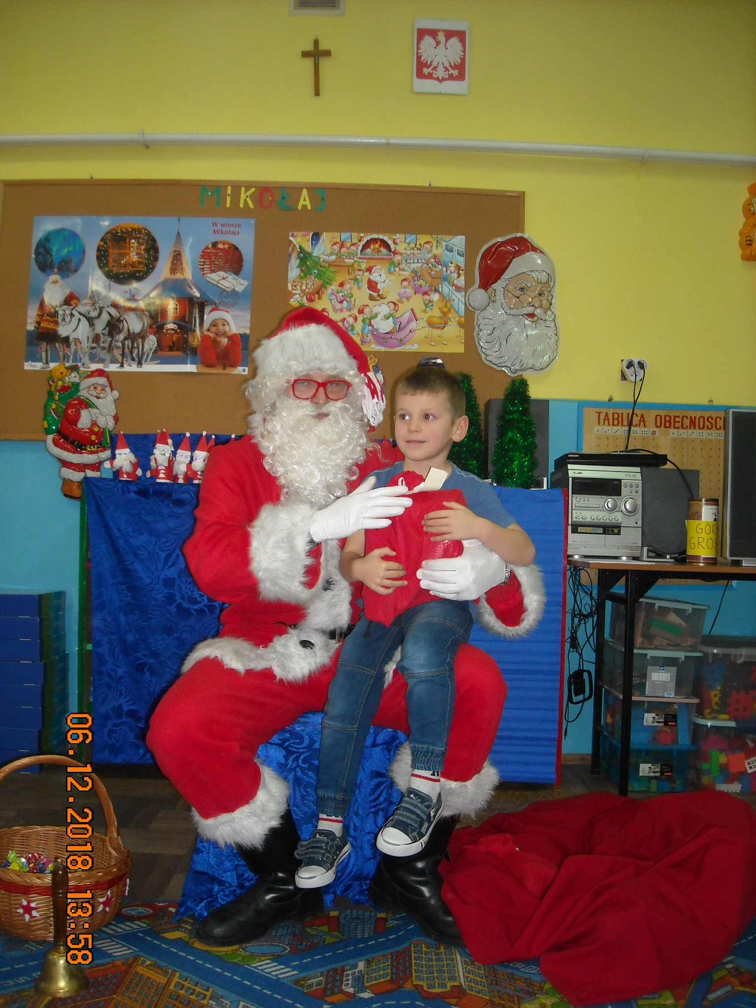 Dnia 6 grudnia do przedszkolaków zawitał Święty Mikołaj. Od samego rana dzieci nie mogły się doczekać miłego gościa. Gdy tylko pojawił się w drzwiach na wszystkich buźkach pokazał się piękny uśmiech. Dzieci z ogromną radością przywitały Św. Mikołaja śpiewając mu piosenki i recytując wiersze. Każde dziecko złożyło obietnice, iż kolejny rok będzie grzeczne i posłuszne. Po złożonej obietnicy Św. Mikołaj wszystkich obdarzył prezentami i obiecał, że za rok na pewno przedszkolaków odwiedzi. Na koniec spotkania zrobiliśmy sobie pamiątkowe zdjęcia z Mikołajem.
