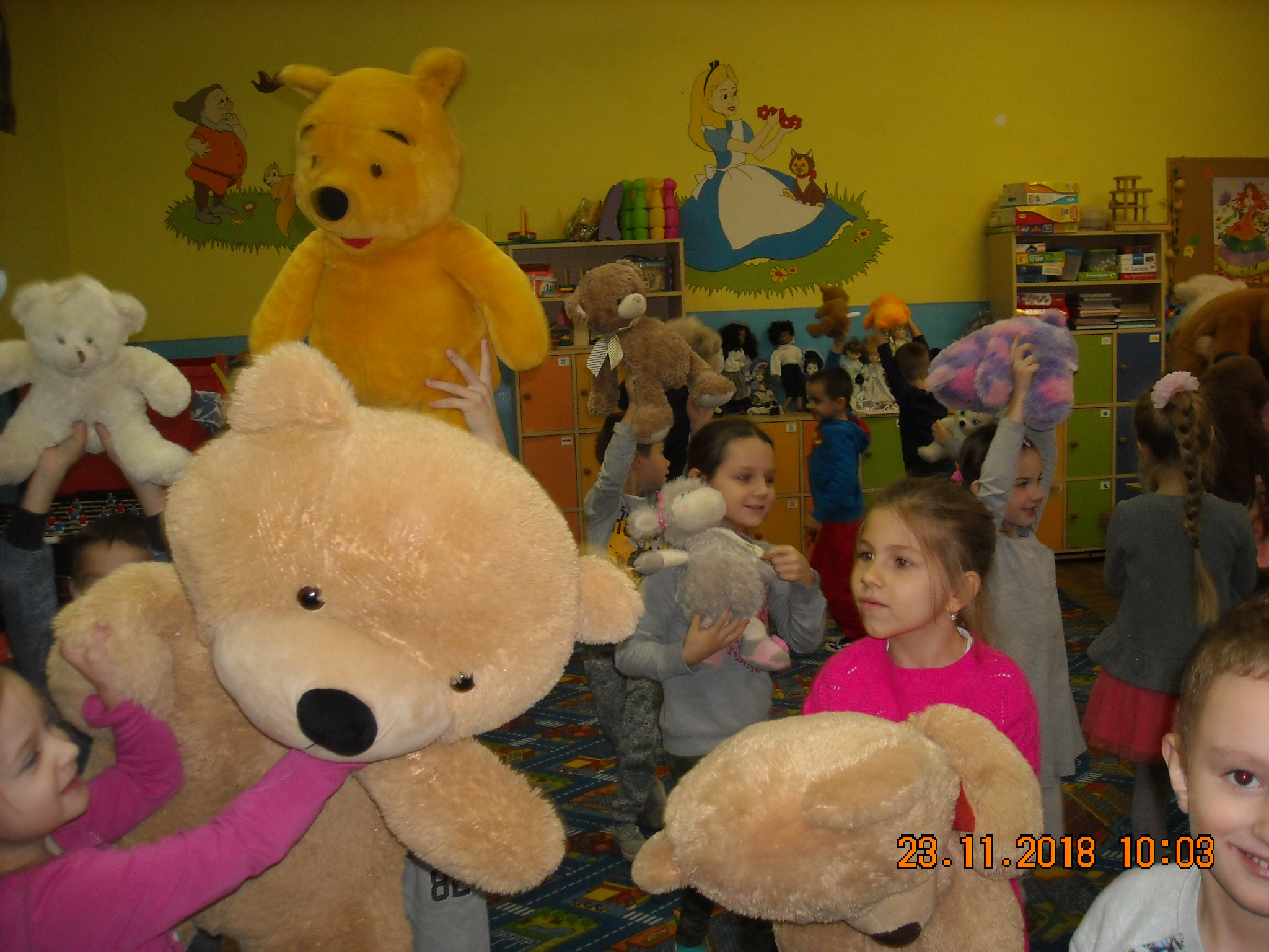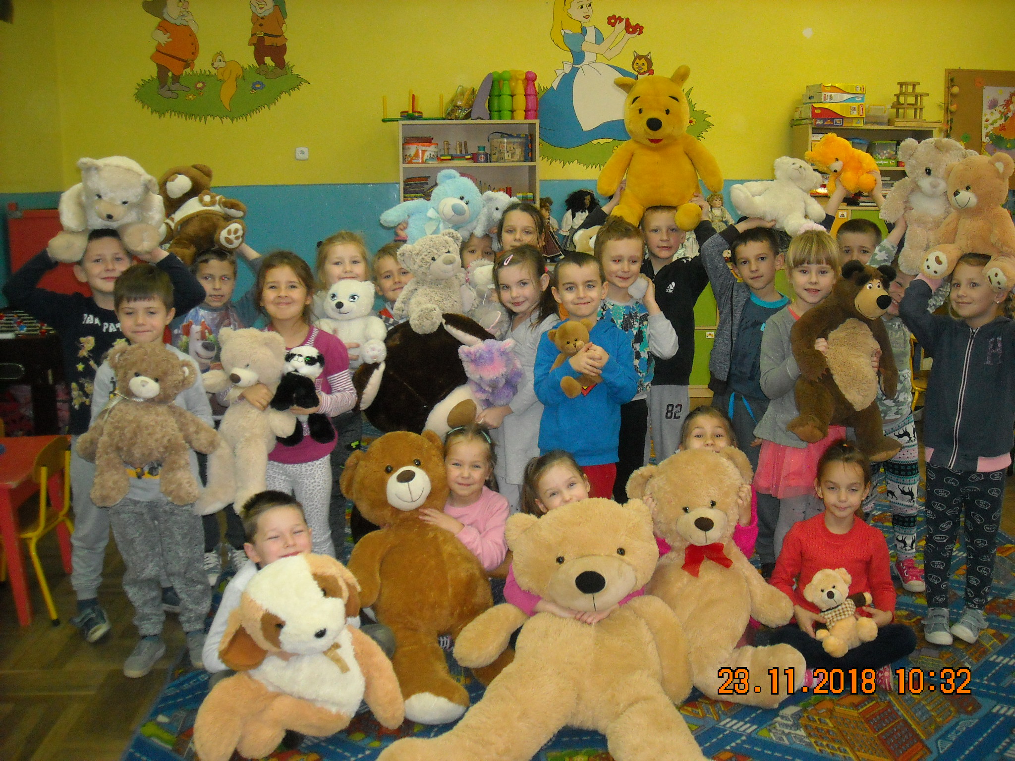 23.11.2018r. dzieci z naszego przedszkola obchodziły Światowy Dzień Pluszowego Misia. W tym dniu każdy przedszkolak przyniósł swojego ulubionego pluszaka. Przybyły misie małe, duże, białe, czarne, brązowe, a każdy był piękny i wyjątkowy.