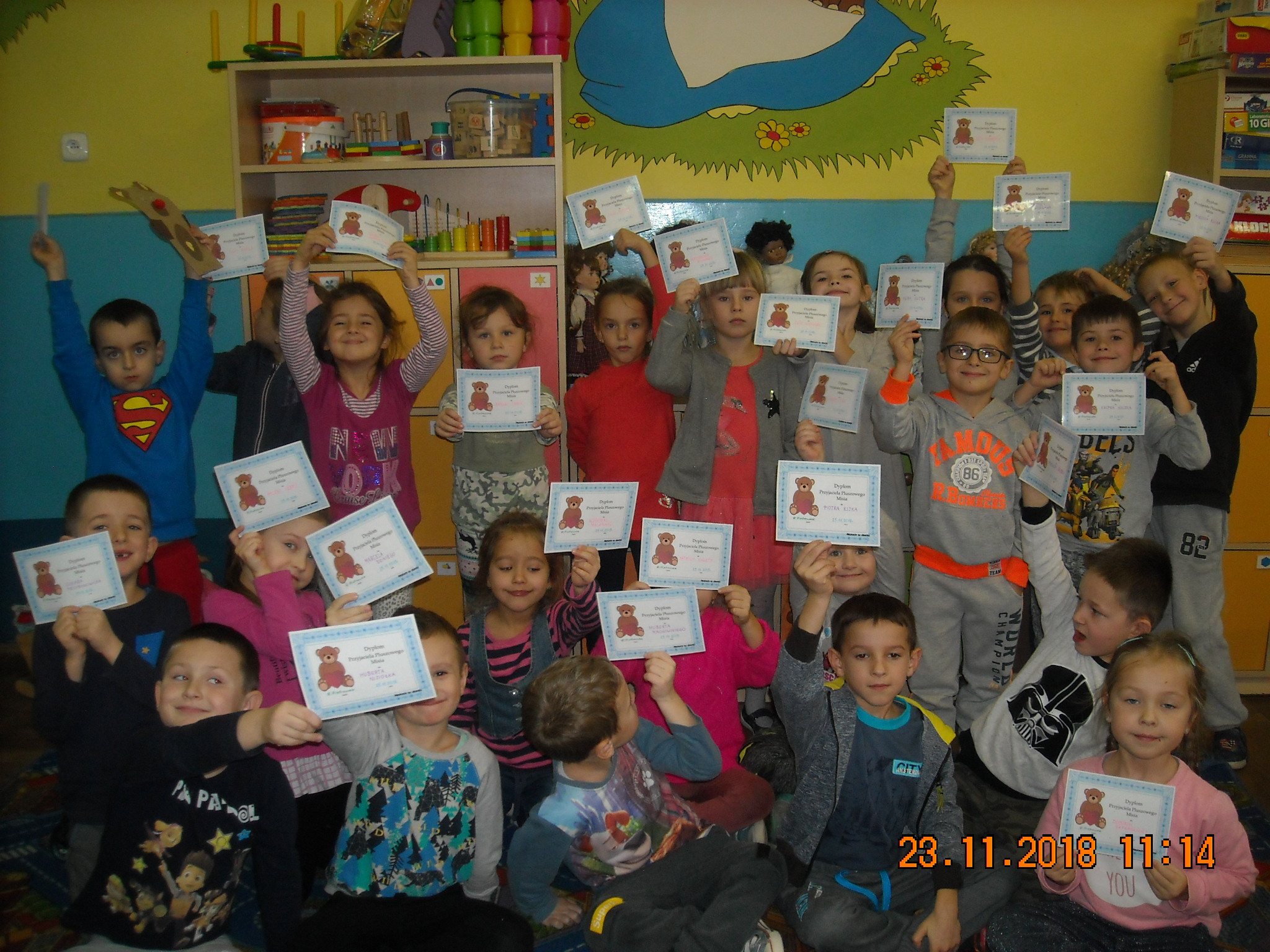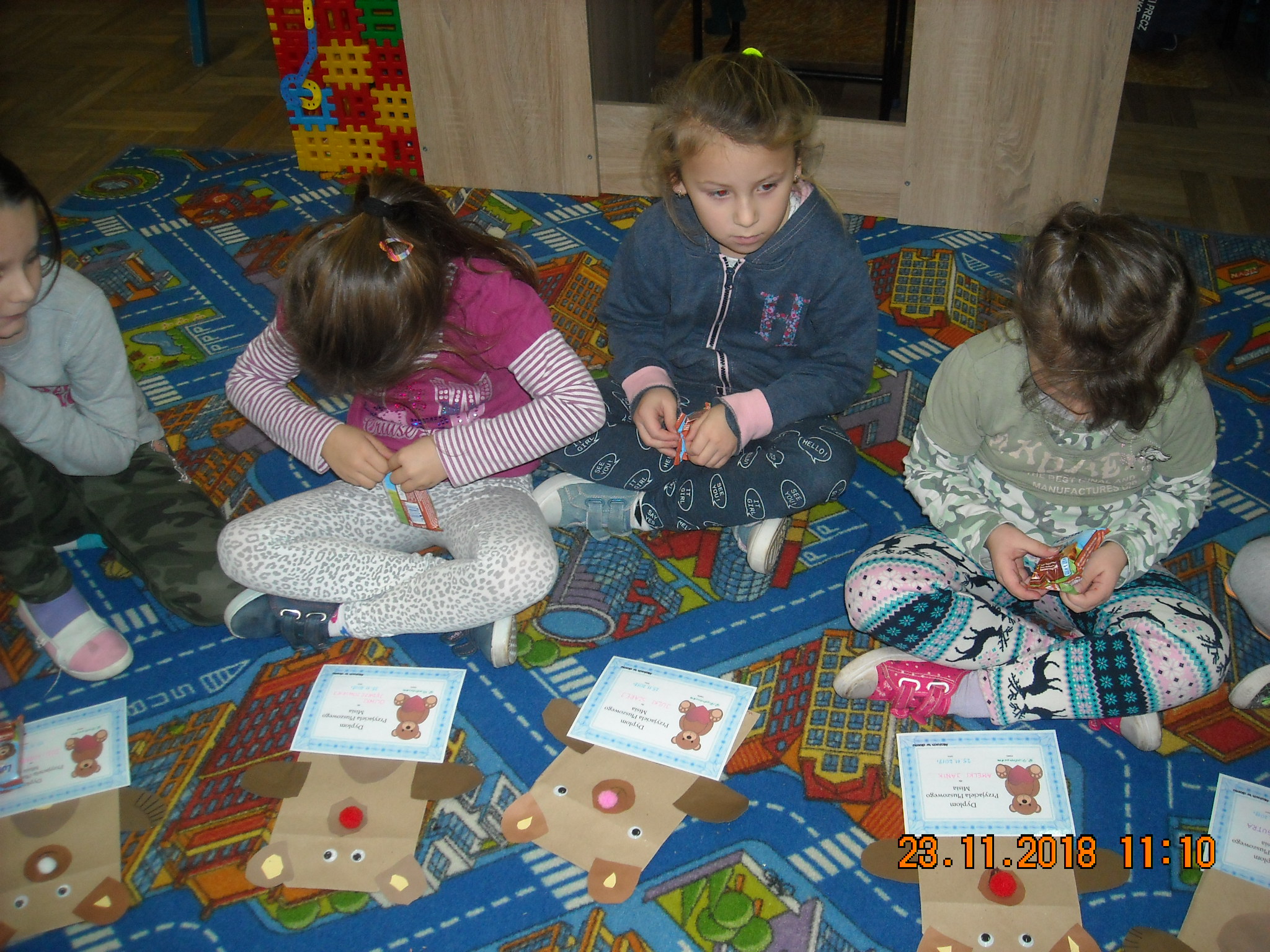 Na zakończenie, na dzieci czekały misiowe ciasteczka „Lubisie” oraz pamiątkowe dyplomy. Dzień pluszowego misia dostarczył dzieciom mnóstwo pozytywnych wrażeń, radości i wspólnej zabawy.