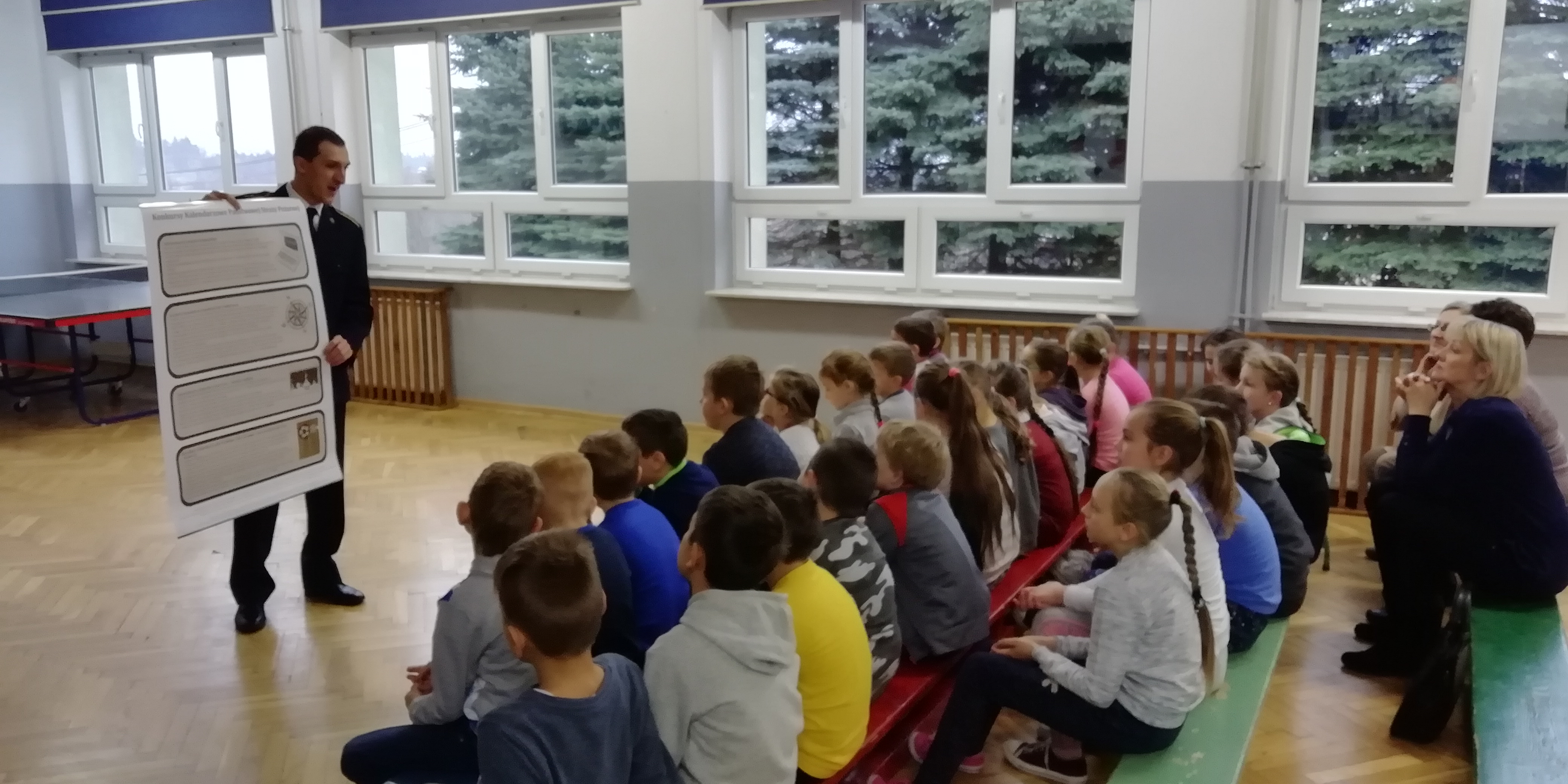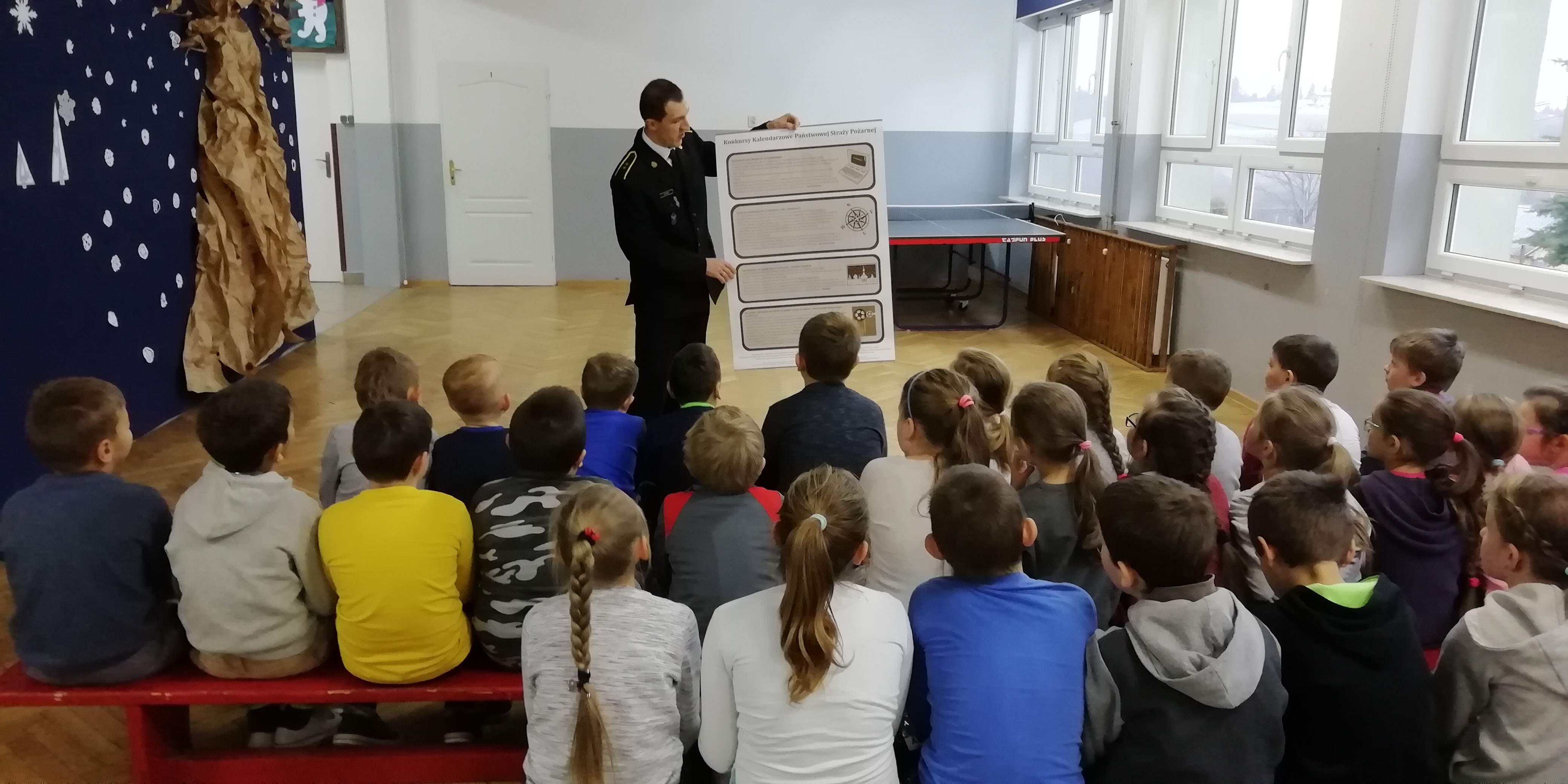 7 grudnia 2018r. w naszej szkole odbyło się spotkanie uczniów klas I-III z przedstawicielem Powiatowej Straży Pożarnej w Gorlicach – starszym aspirantem, Panem Sławomirem Stecem. Strażak, w ramach ogólnopolskiej kampanii edukacyjno-informacyjnej, przeprowadził z dziećmi pogadankę na temat różnych zagrożeń, jakie mogą się zdarzyć w okresie zimowym związanych z zatruciem tlenkiem węgla, z możliwością powstania pożarów w mieszkaniach lub domach jednorodzinnych oraz z szeroko rozumianym bezpieczeństwem na co dzień, itp.