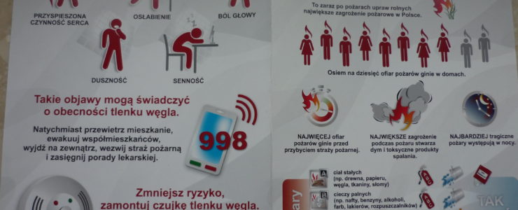 Pan strażak omówił sposób działania czujki tlenku węgla i dymu , podkreślił, że mogą one uchronić ludzi przed śmiertelnym niebezpieczeństwem. Przypomniał również numery alarmowe, a także sposób prawidłowego zgłoszenia zagrożenia do straży pożarnej.