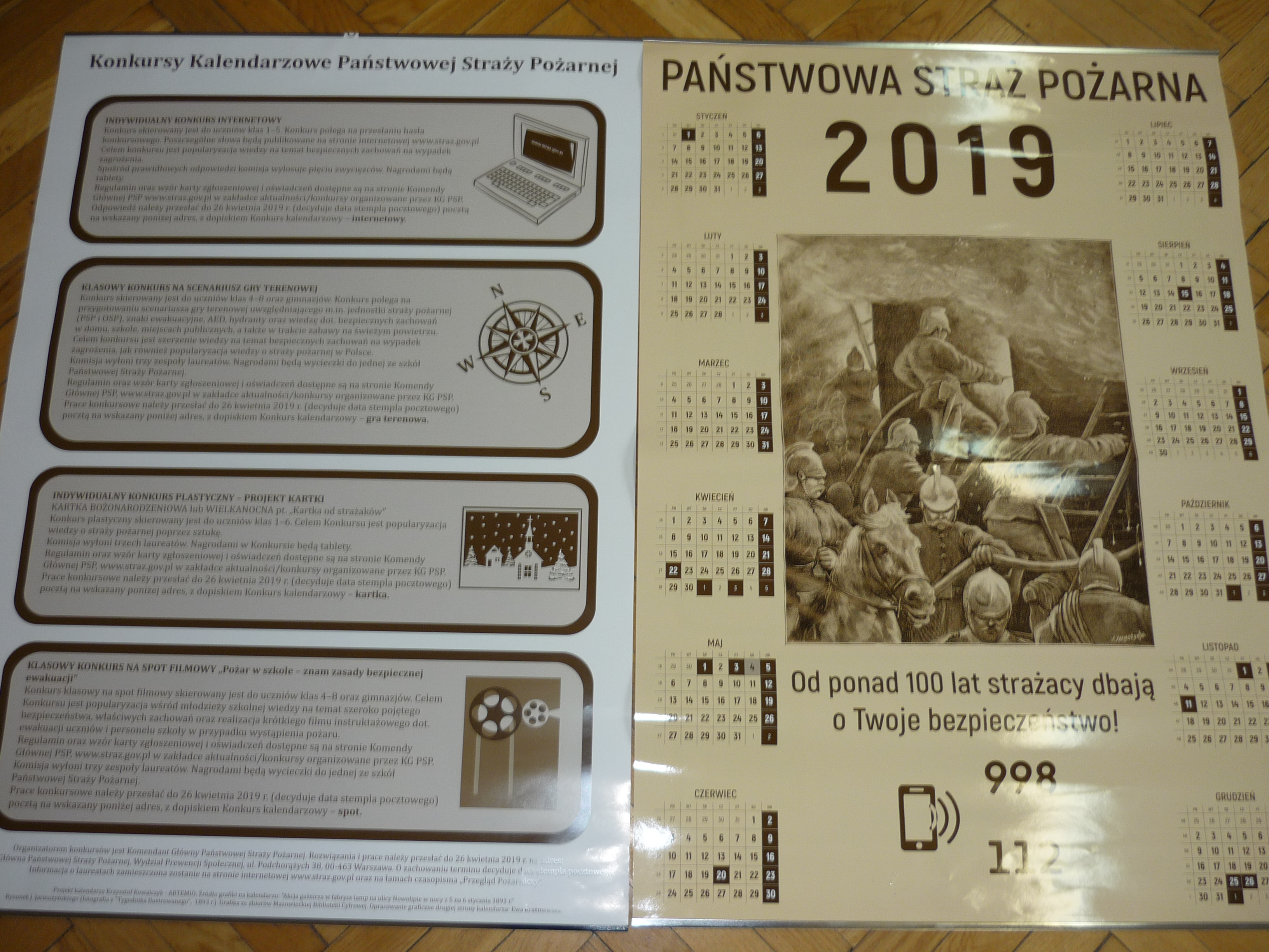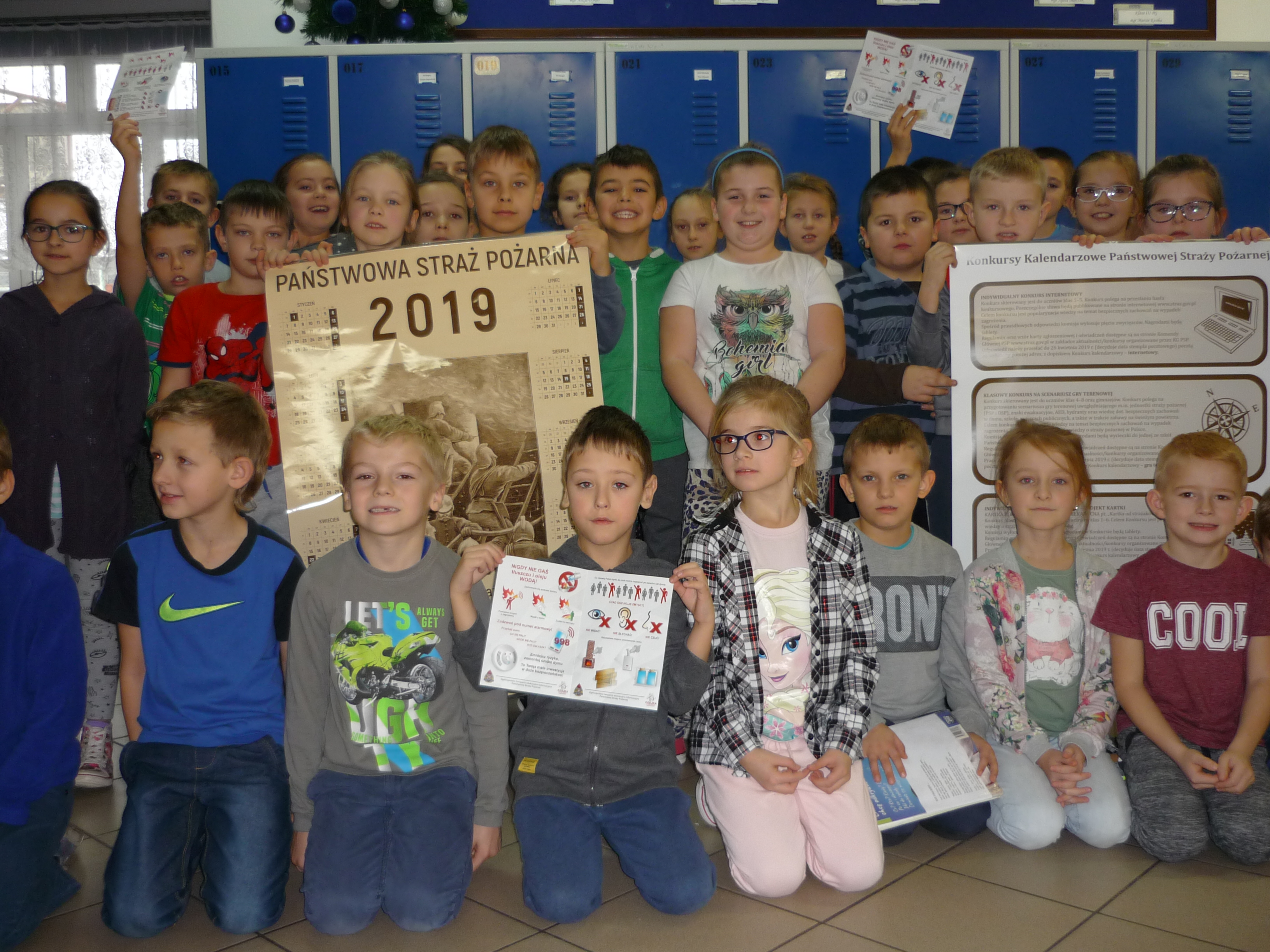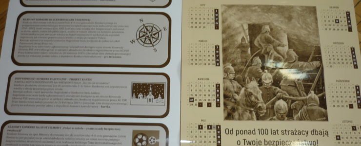 Na zakończenie spotkania nasz gość zaprezentował i przekazał uczniom tematyczne ulotki i KALENDZARZE PAŃSTWOWEJ STRAŻY POŻARNEJ na rok 2019 wraz z propozycją różnych konkursów dla starszych i młodszych uczniów.