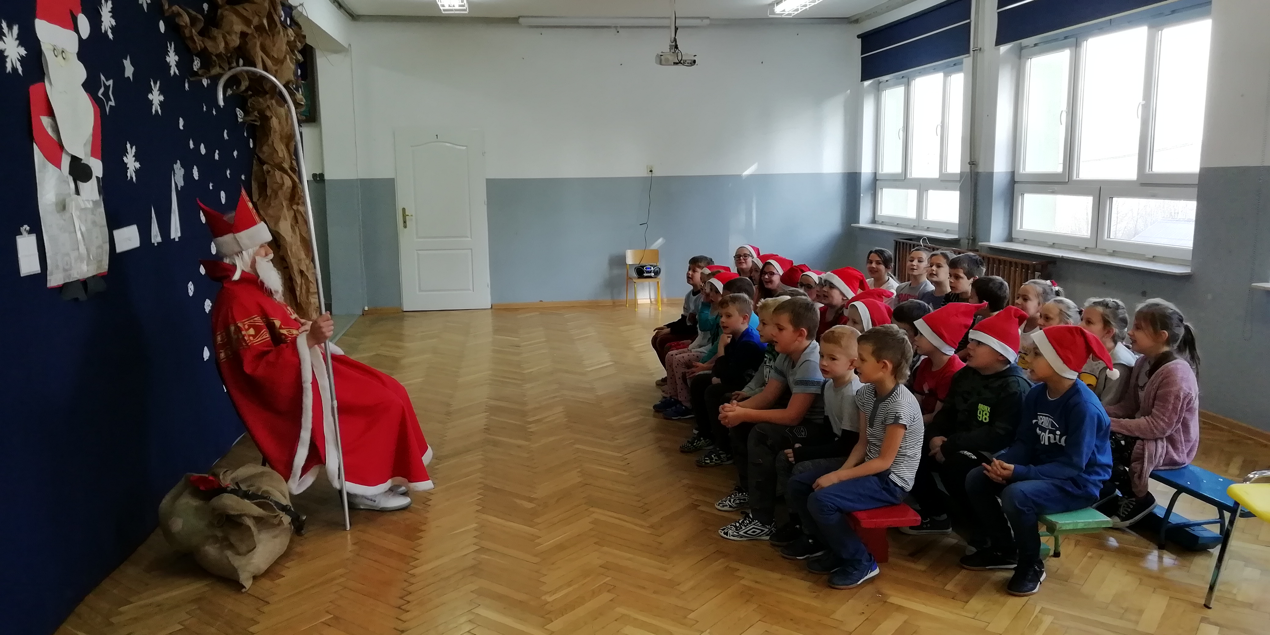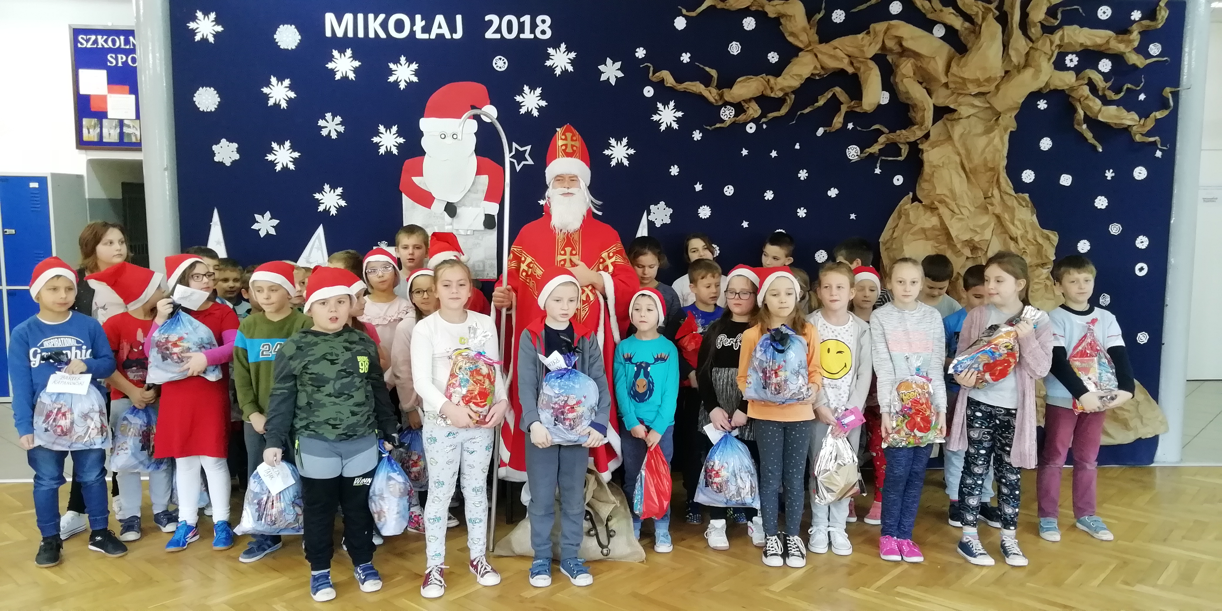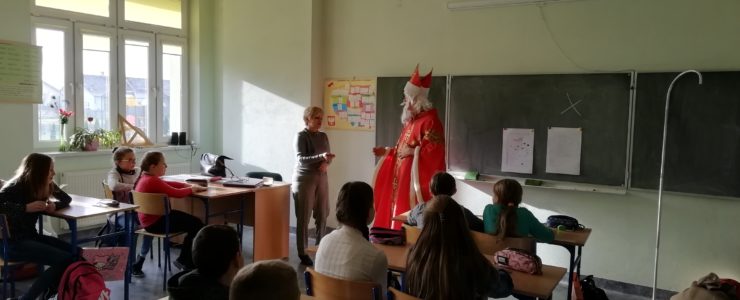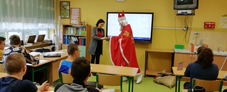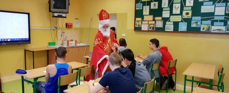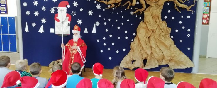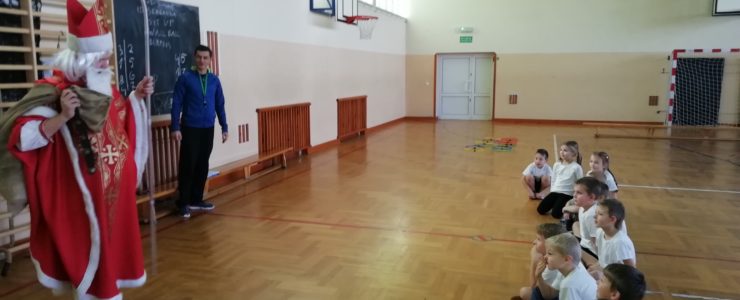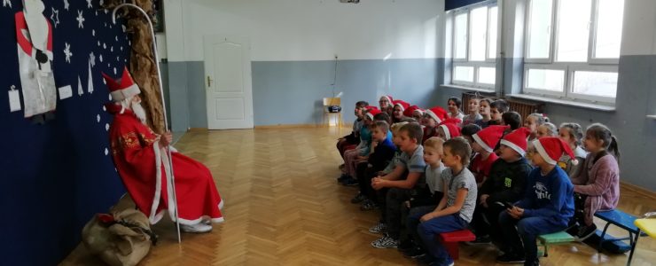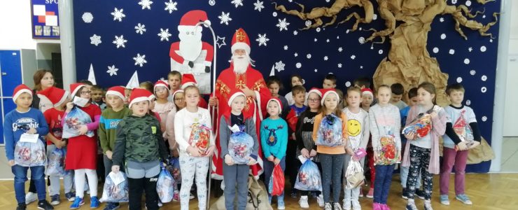 6 grudnia 2018r. do naszej szkoły zawitał Święty Mikołaj i sprawił, że dzień był wyjątkowy i pełen radości. Jego wizyty z niecierpliwością oczekiwali nie tylko najmłodsi uczniowie, ale także Ci troszkę starsi. Niezwykłego Gościa przywitali uczniowie klas I-III, śpiewając piosenki i recytując wiersze. Podczas wręczania prezentów Święty Mikołaj rozmawiał z dziećmi, pytał czy były grzeczne i zachęcał do czynienia dobra. Była też okazja do pamiątkowych zdjęć. Następnie Niecodzienny Gość odwiedził starszych uczniów, którym również wręczył słodkie upominki. Spotkanie ze Świętym Mikołajem zapewne na długo pozostanie w pamięci dzieci. Mikołaj obiecał, że odwiedzi naszą szkołę w przyszłym roku – o ile wszyscy będą grzeczni!