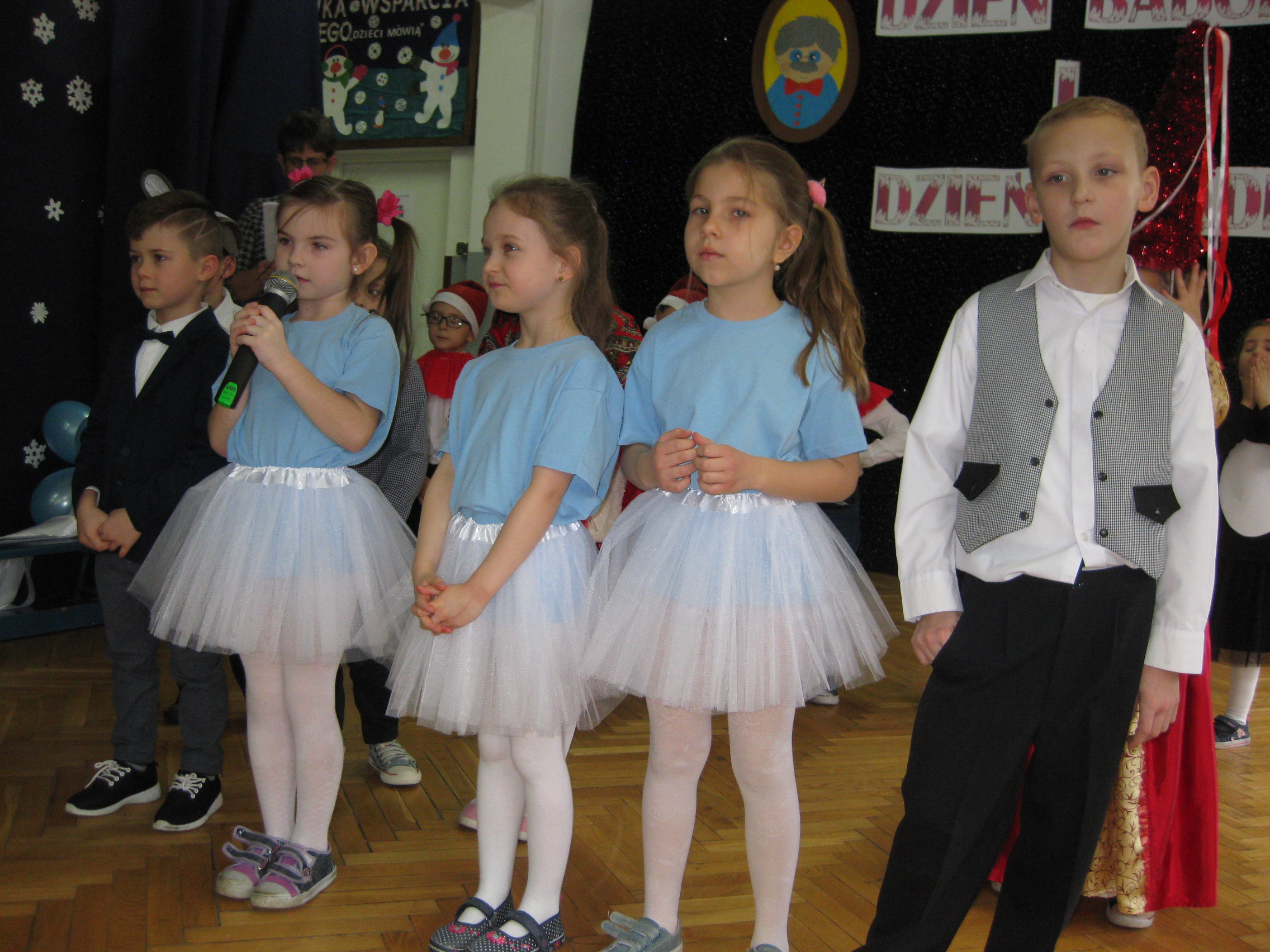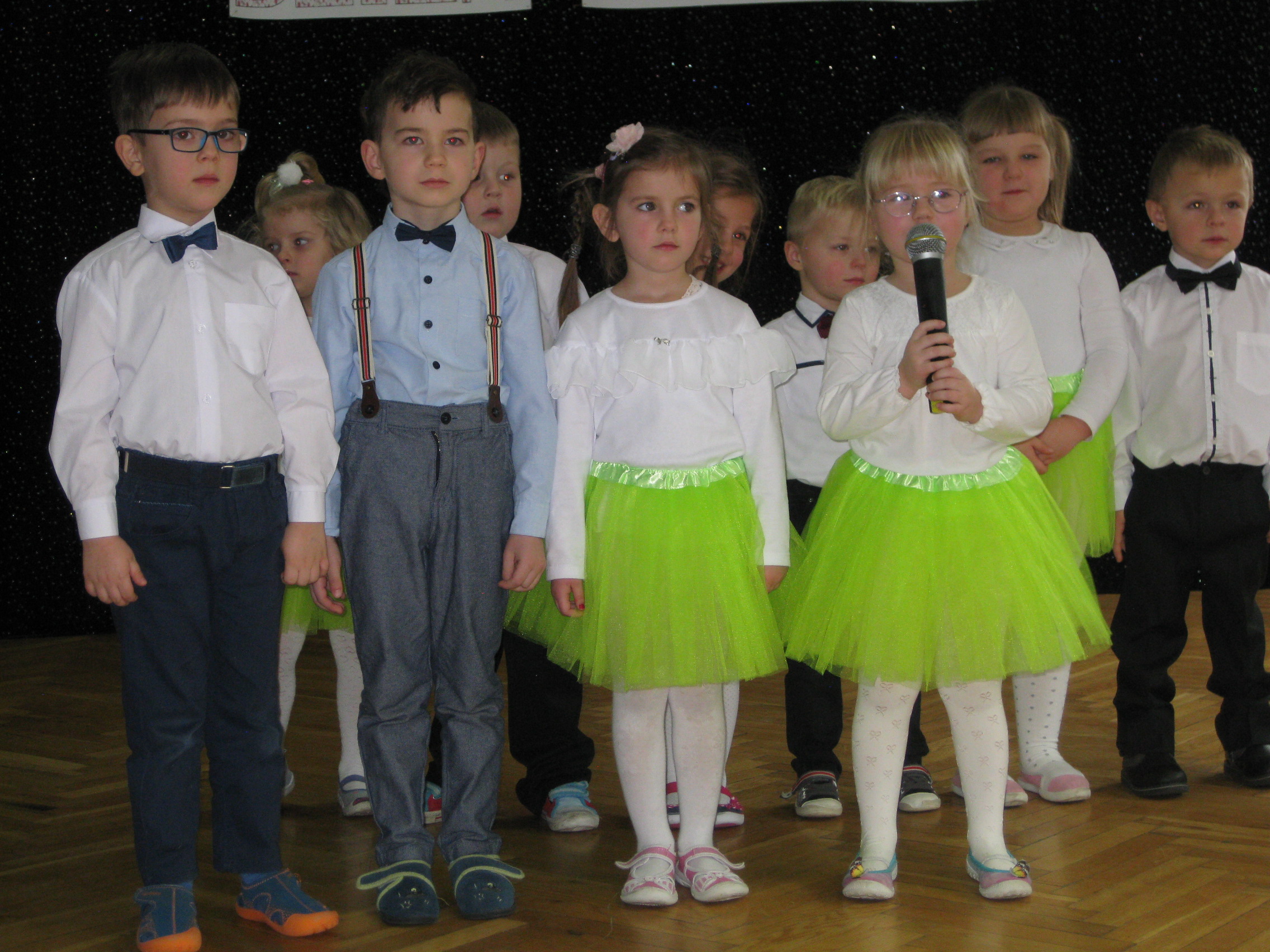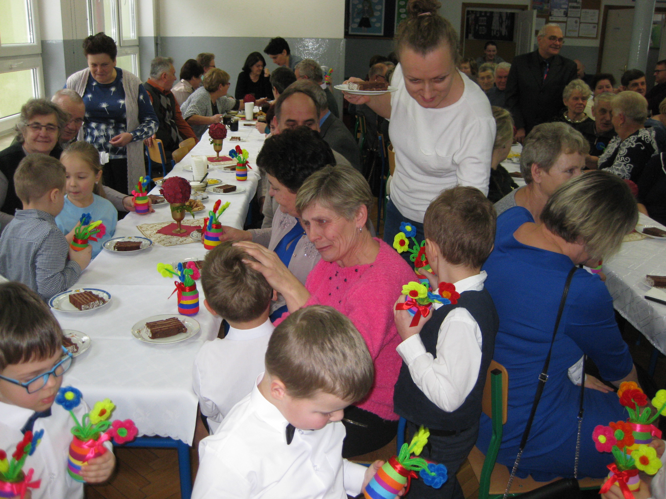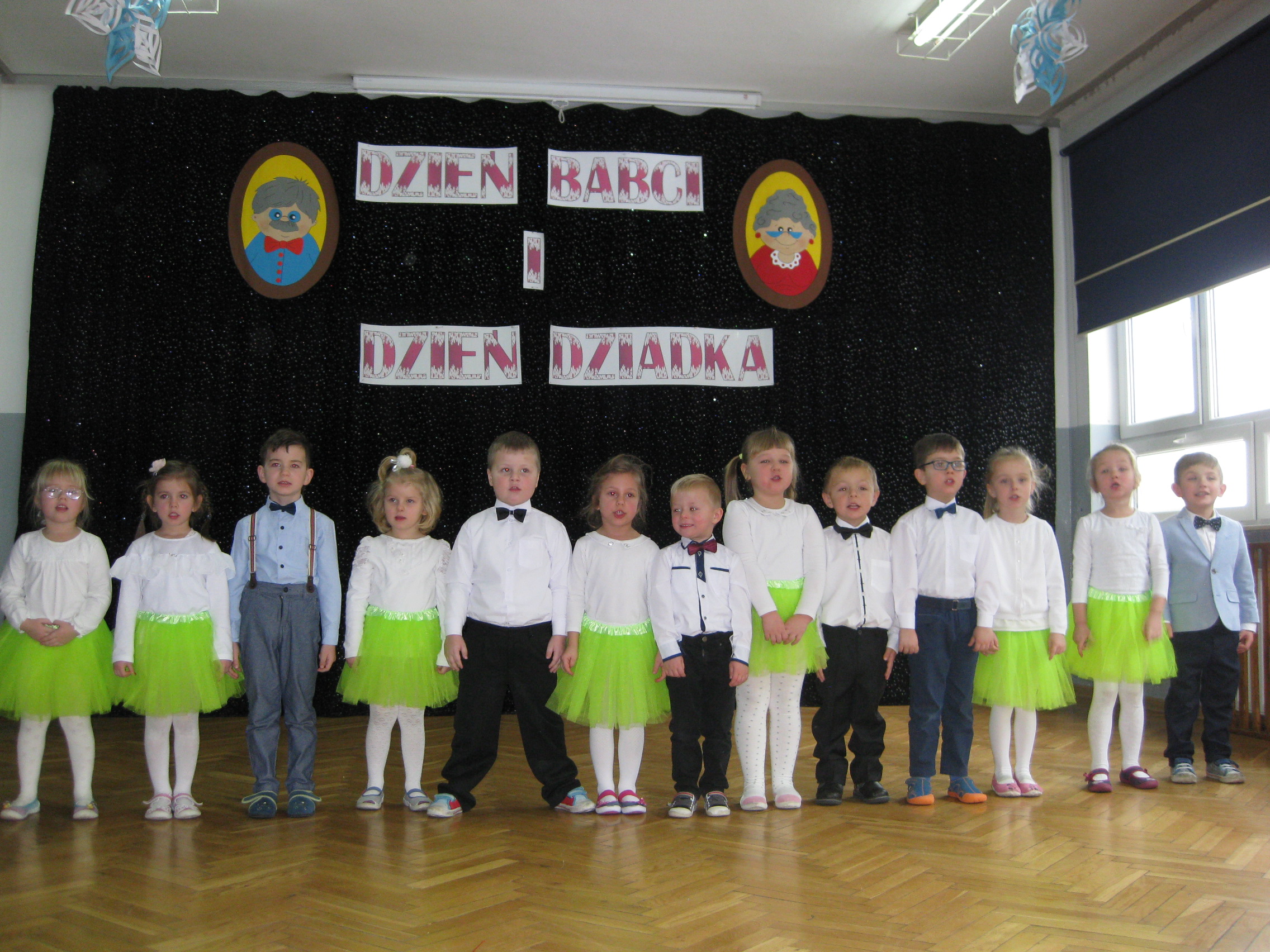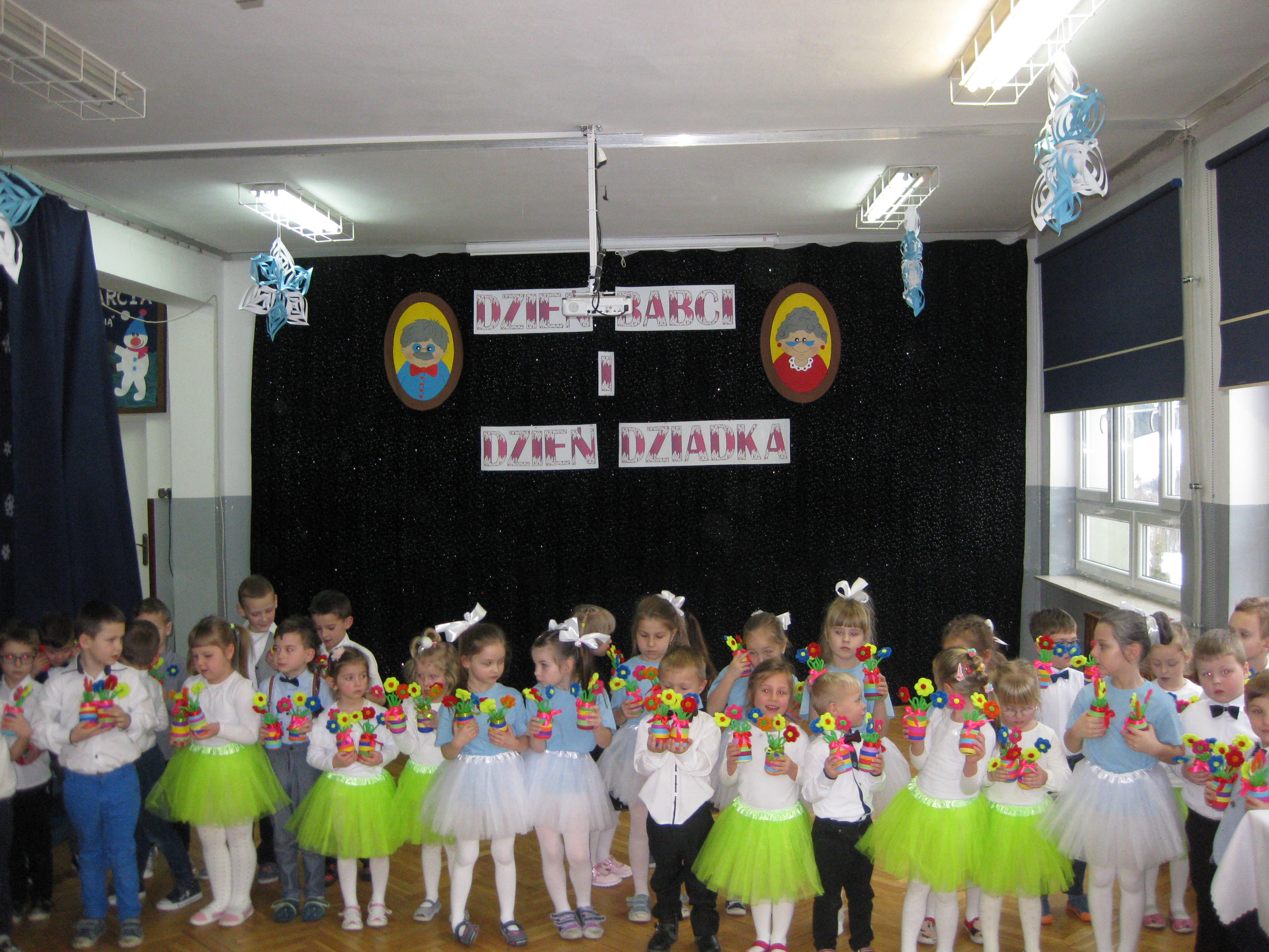 Każda grupa przygotowała swój program artystyczny, w którym pokazała swoje umiejętności muzyczne, taneczne, recytatorskie. Dziadkowie ze wzruszeniem przyglądali się występom swoich wnucząt, nagradzając je gromkimi brawami. Dzieci wspólnie odśpiewały 100 lat, wręczyły dziadkom piękne bukieciki kwiatów zapraszając równocześnie na kawę, herbatę i słodki poczęstunek. Szczęśliwe i rozpromienione twarze Babć i Dziadków ukazały nam jak ważne są takie spotkania i wspólnie spędzone chwile z wnukami.