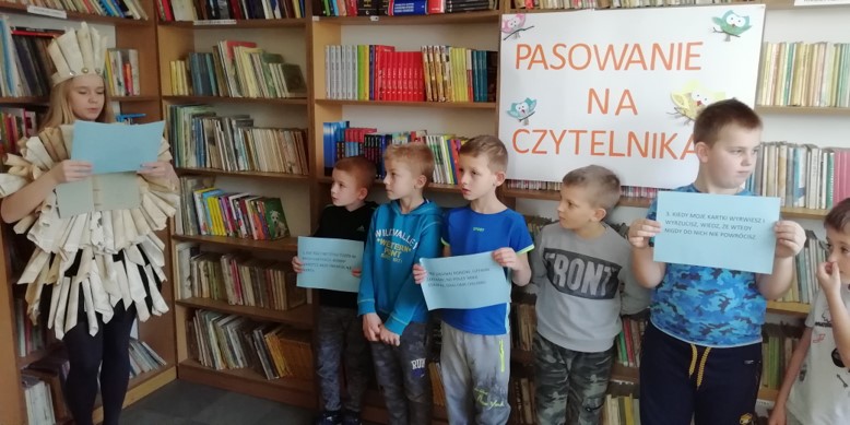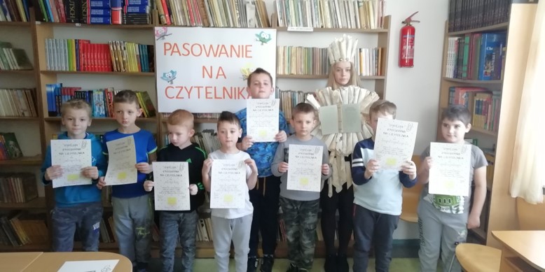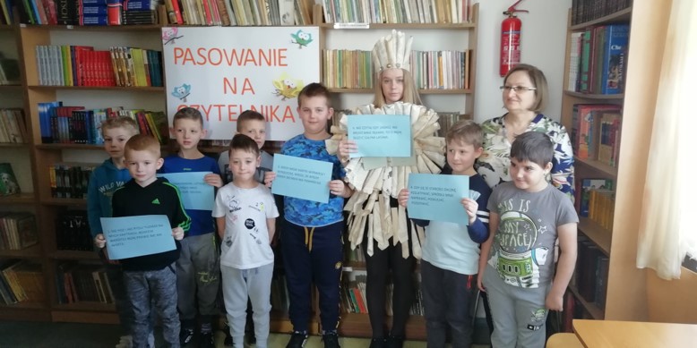 Dnia 6 lutego 2019 roku panie bibliotekarki z Zespołu Szkolno – Przedszkolnego w Strzeszynie zaprosiły do biblioteki szkolnej uczniów klasy I wraz z wychowawczynią. Pierwszakom został zaprezentowany Regulamin Biblioteki Szkolnej oraz księgozbiór dla najmłodszych. Następnie uczniowie klasy I przystąpili do egzaminu sprawdzającego ich gotowość do dołączenia do grona Czytelników biblioteki szkolnej. Dzieci musiały wykazać się znajomością bohaterów baśni i bajek oraz potwierdzić znajomość liter i umiejętność czytania. Wielką radość sprawiło uczniom pojawienie się w bibliotece Królowej Książki, której uroczyście przyrzekły, że „będą książki kochać”, a „obowiązki czytelnika traktować z wielką powagą”. Potem nastąpił uroczysty moment Pasowania na Czytelnika. Na potwierdzenie aktu pasowania uczniowie otrzymali dyplomy, a na pamiątkę – zakładki do książek. Mamy nadzieję, że emocje związane z PASOWANIEM NA CZYTELNIKA na długo zostaną w pamięci uczniów, a biblioteka zyska nowych, wiernych czytelników.