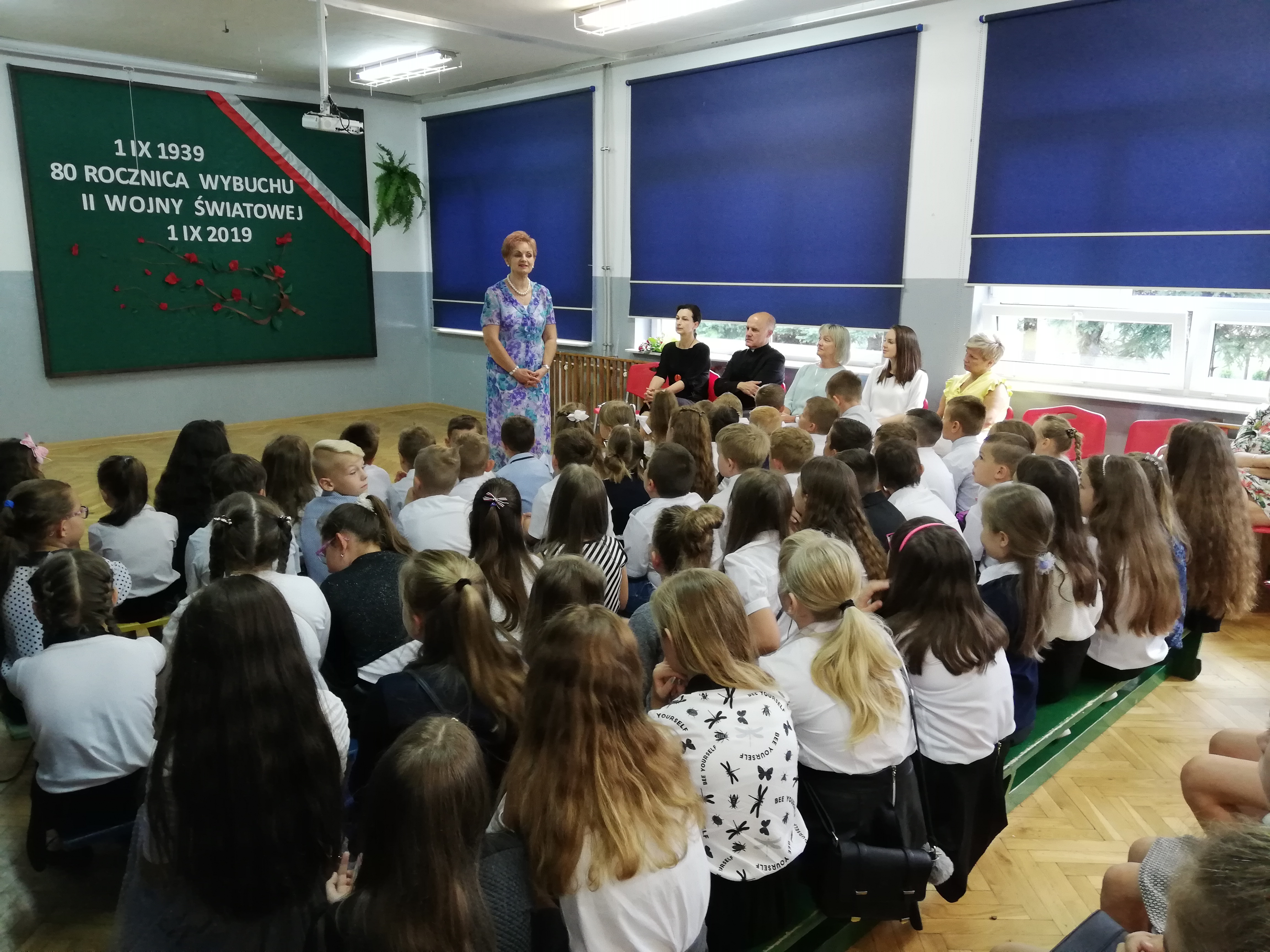 W przemówieniu dyrektora nie zabrakło także nawiązania do kolejnej-80 rocznicy wybuchu II wojny światowej oraz jej tragicznych skutków. Ofiary działań wojennych uczcili uczniowie klasy III i IV krótką inscenizacją przygotowaną pod kierunkiem pani Dagmary Dżuła. Na zakończenie wychowawcy spotkali się z uczniami, aby przedstawić plan zajęć lekcyjnych.