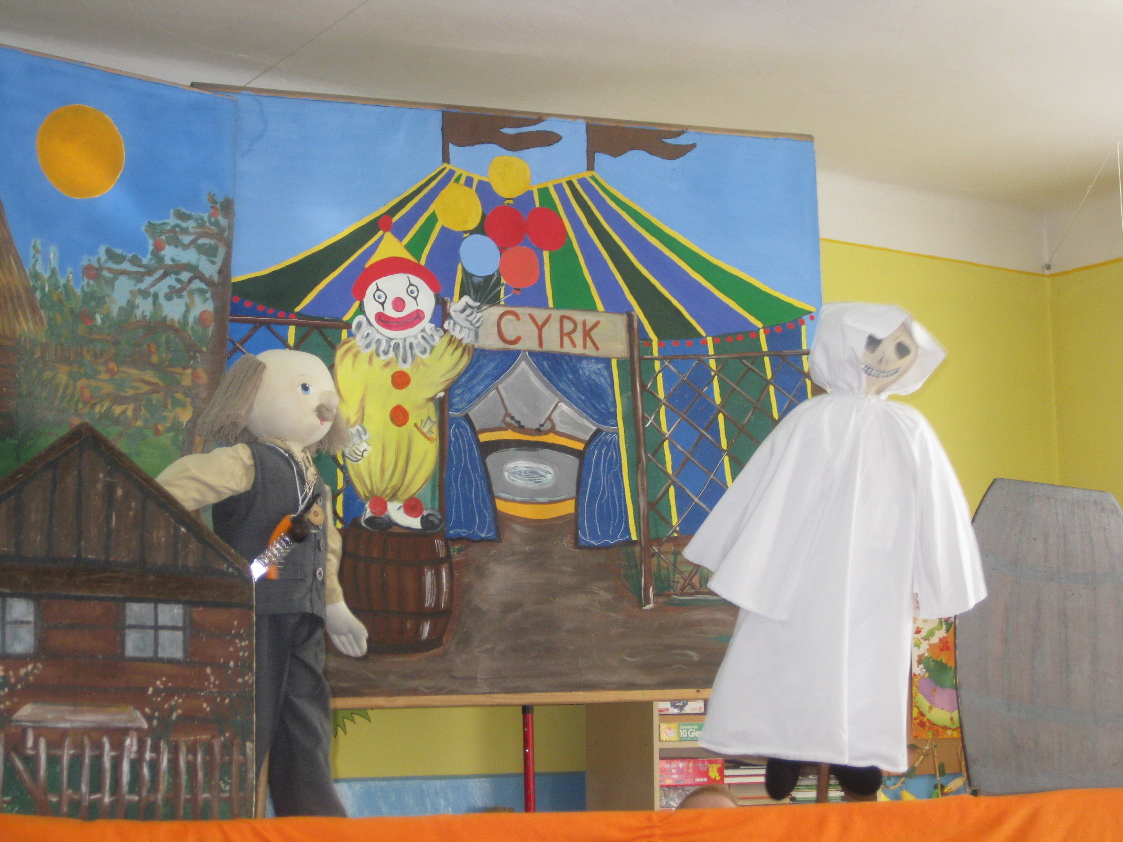 W czwartek odwiedził nasze przedszkole Teatr Lalek „Tomcio” z Nowego Sącza. Aktorzy zaprezentowali dzieciom „Bajkę o szczęściu”. Dzieci z wielkim zainteresowaniem śledziły losy Dziadka, który zaprzyjaźnił się z Myszką, Świnką i Kogutem. Była to pouczająca bajka o człowieku, który w zamian za rzeczy materialne oddawał handlarzowi zwierzęta, które wiernie towarzyszyły mu w codziennym życiu. Głęboka treść, piękna scenografia, kukiełki i muzyka sprawiły, że przenieśliśmy się w baśniową krainę i z niecierpliwością czekaliśmy na szczęśliwe zakończenie. Jak to w bajkach bywa wszystko skończyło się dobrze. A morał płynący z bajki był taki, że przedmioty choćby najpiękniejsze szczęścia nie dają.