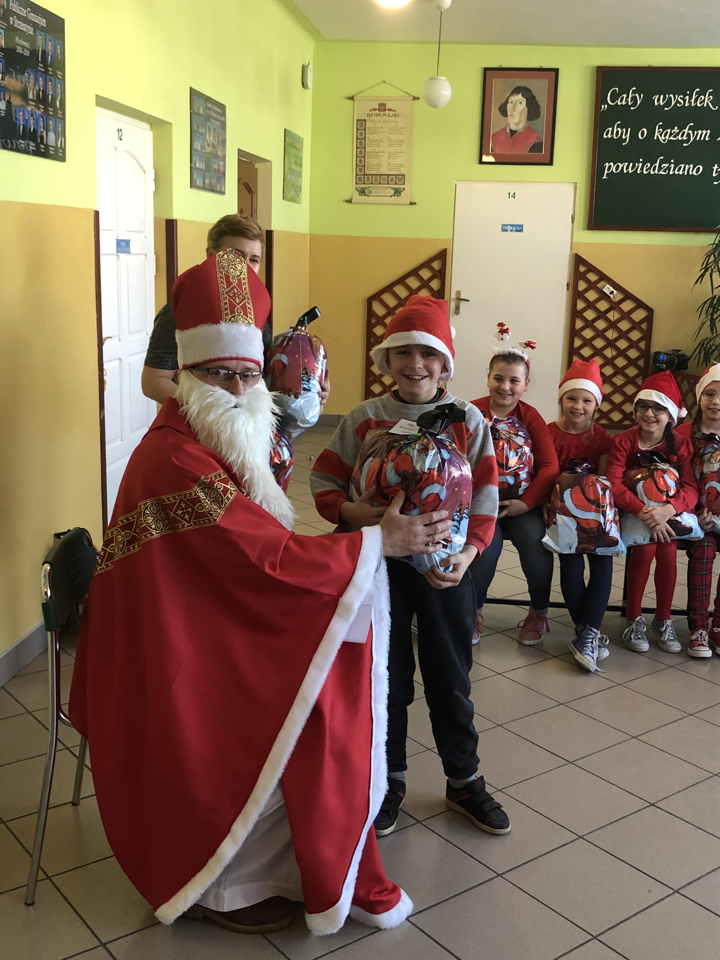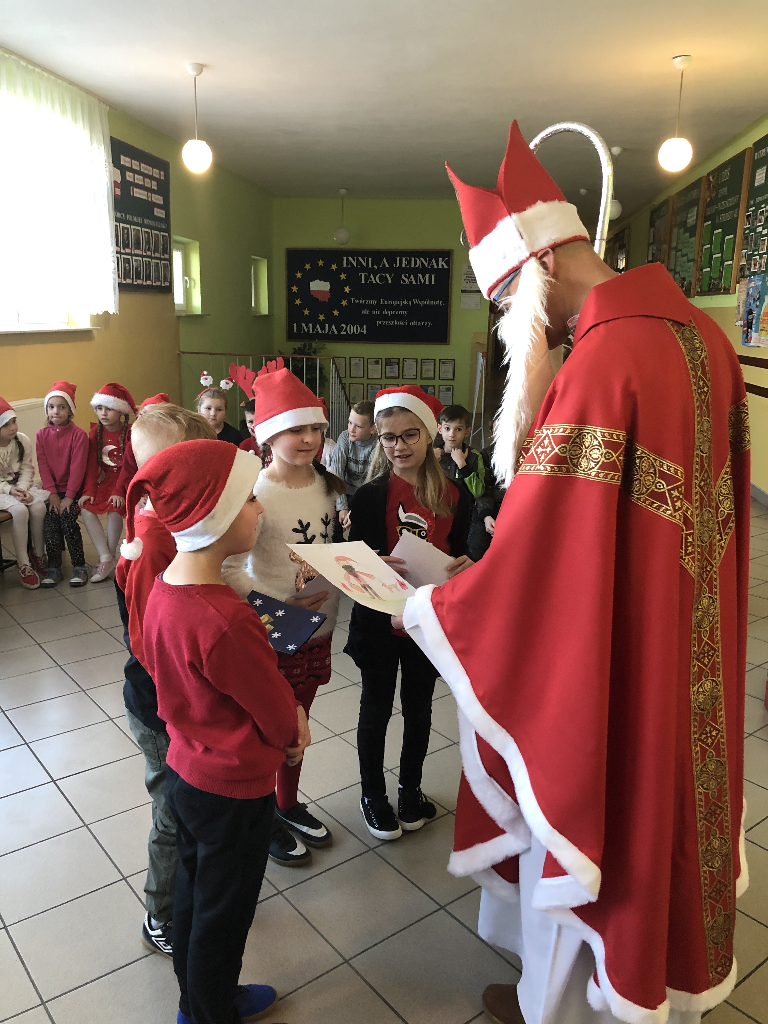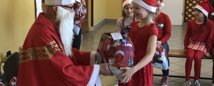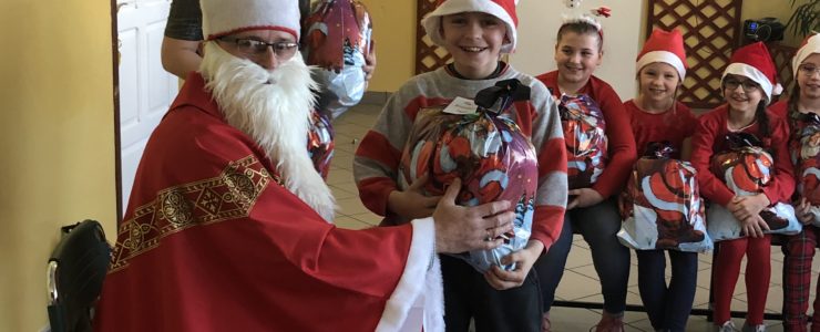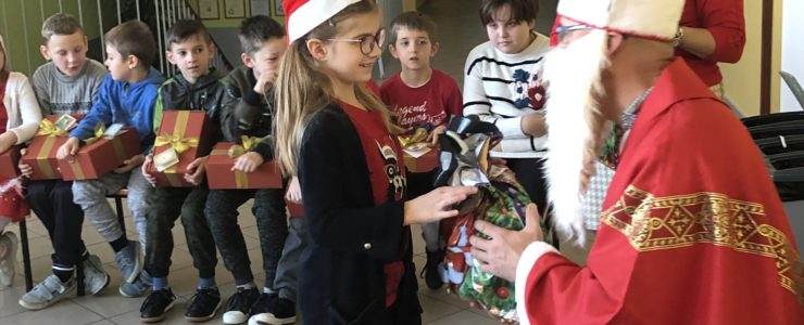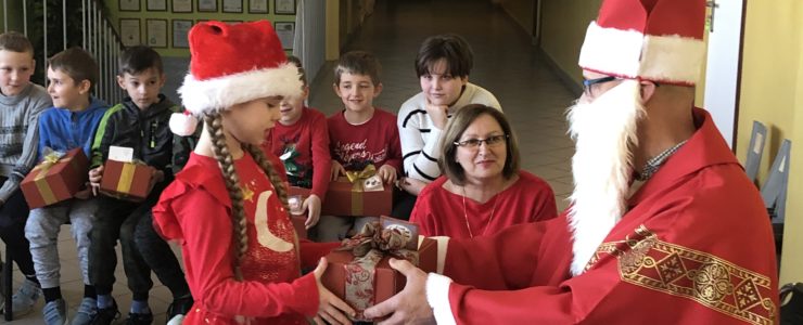Długo oczekiwana wizyta św. Mikołaja w naszej szkole minęła w miłej atmosferze i przyniosła naszym dzieciakom wiele radości i zadowolenia. Dzień ten na długo pozostanie w pamięci wszystkich uczniów, którzy mają nadzieję, że w następnym roku też spotkają św.Mikołaja i zasłużą sobie na piękne prezenty.