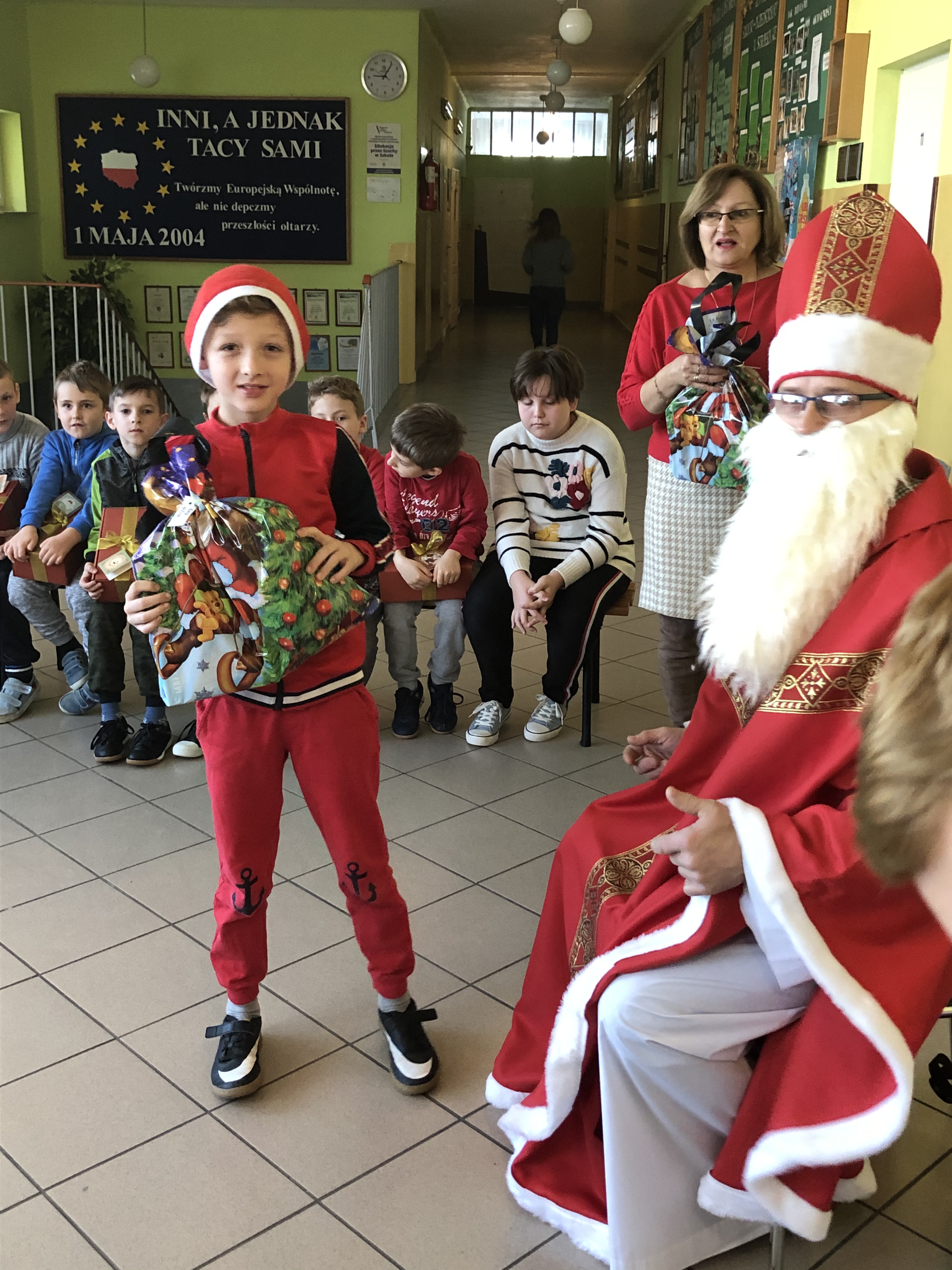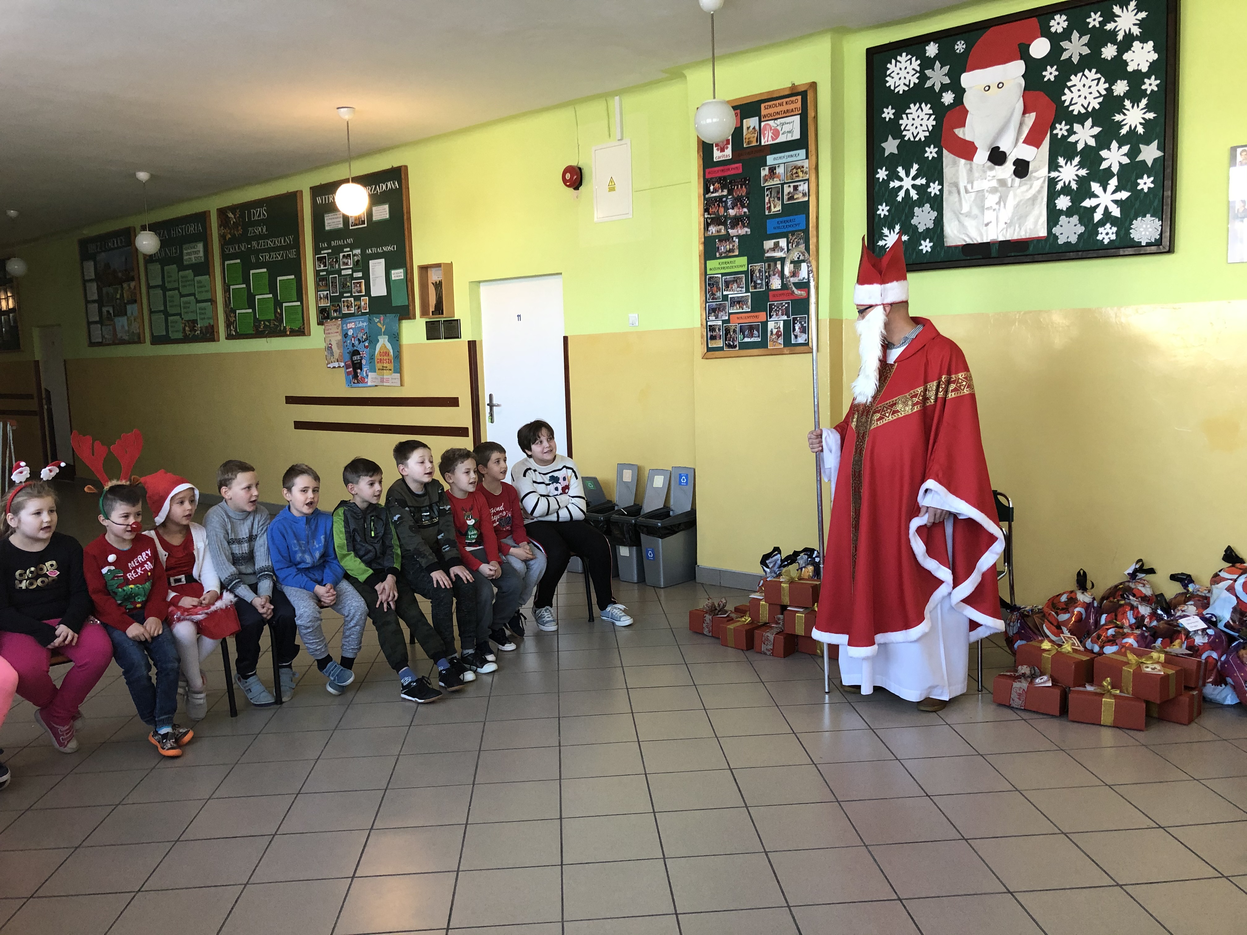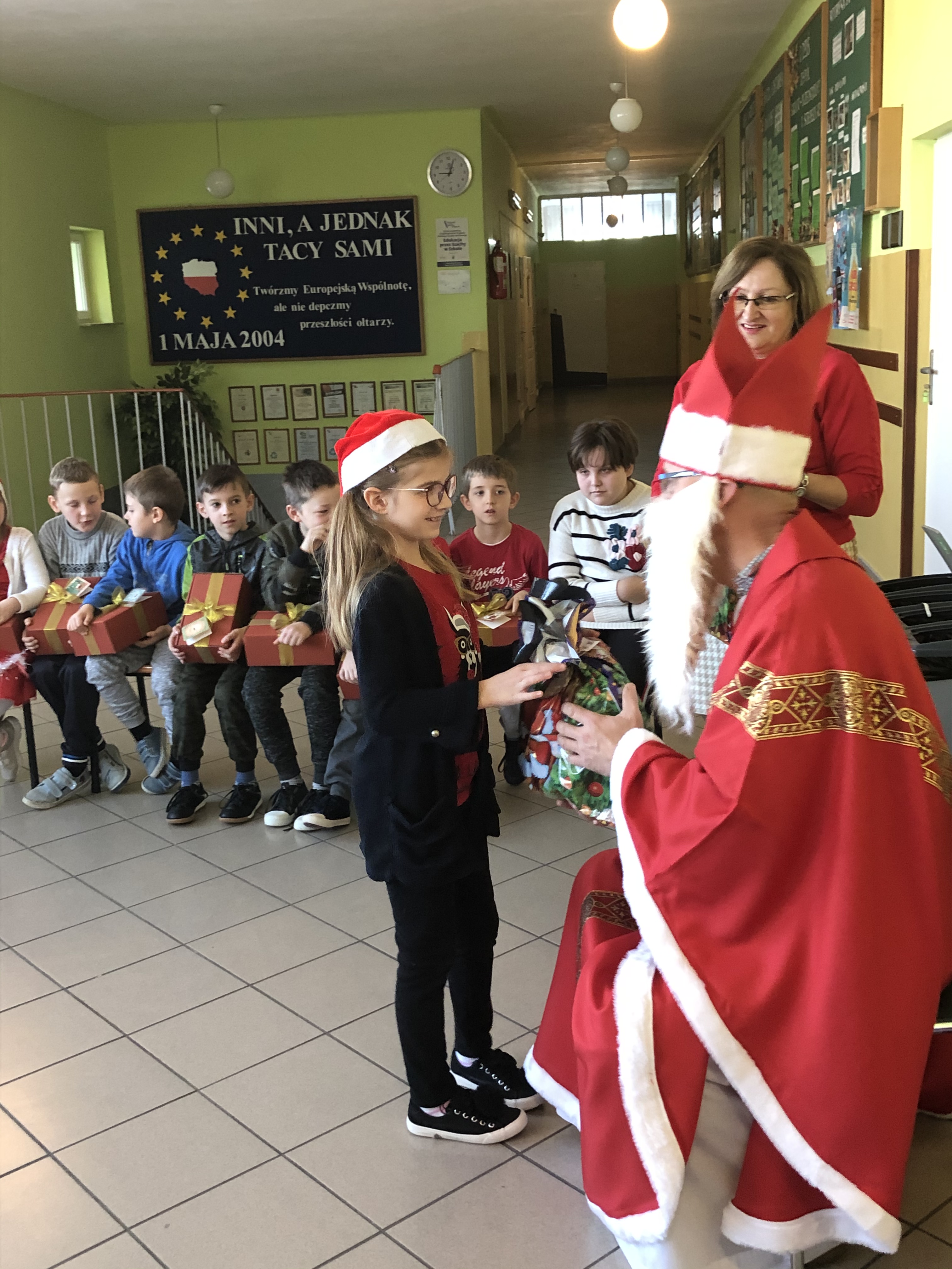 Długo oczekiwana wizyta św. Mikołaja w naszej szkole minęła w miłej atmosferze i przyniosła naszym dzieciakom wiele radości i zadowolenia. Dzień ten na długo pozostanie w pamięci wszystkich uczniów, którzy mają nadzieję, że w następnym roku też spotkają św.Mikołaja i zasłużą sobie na piękne prezenty.