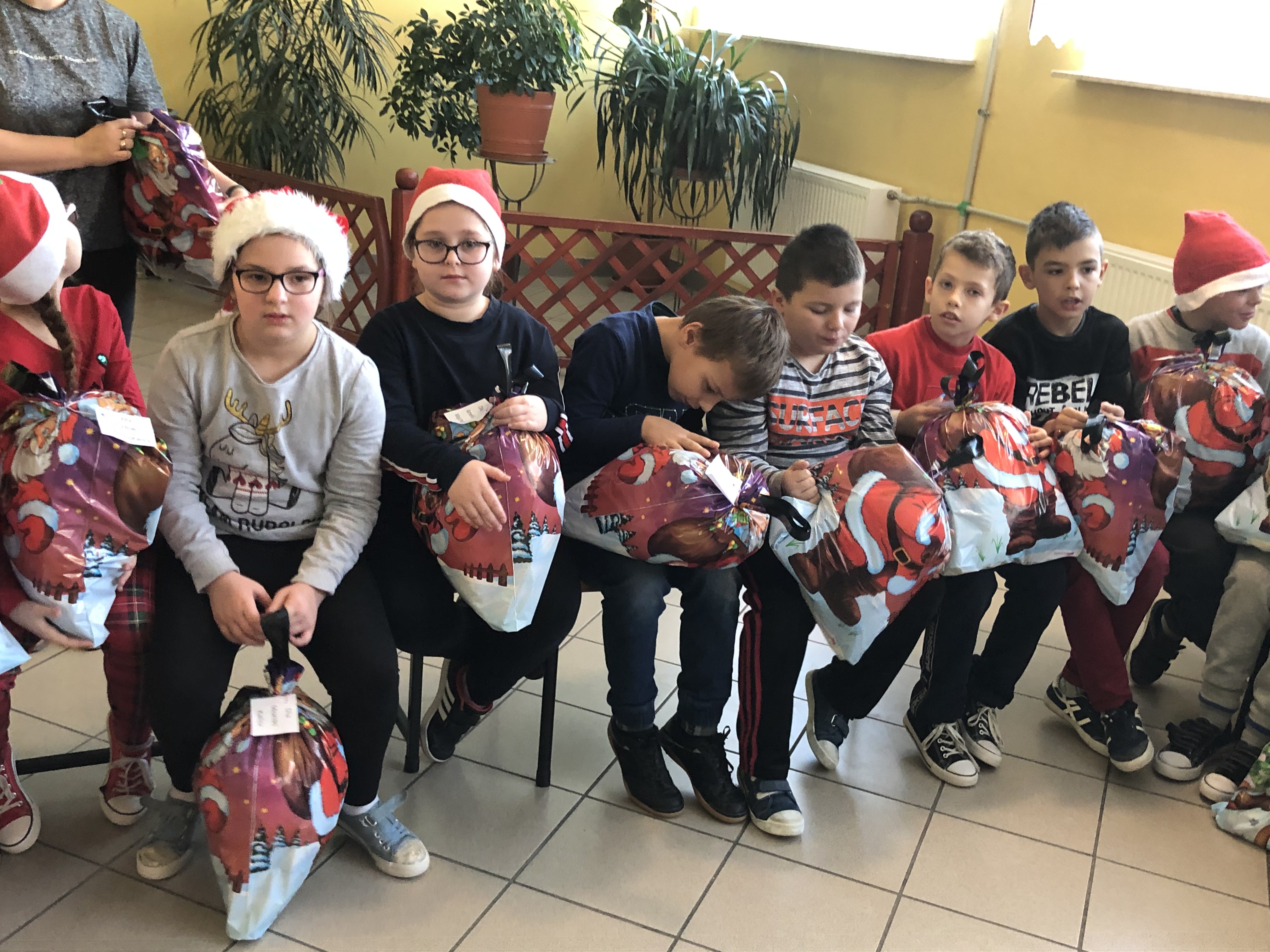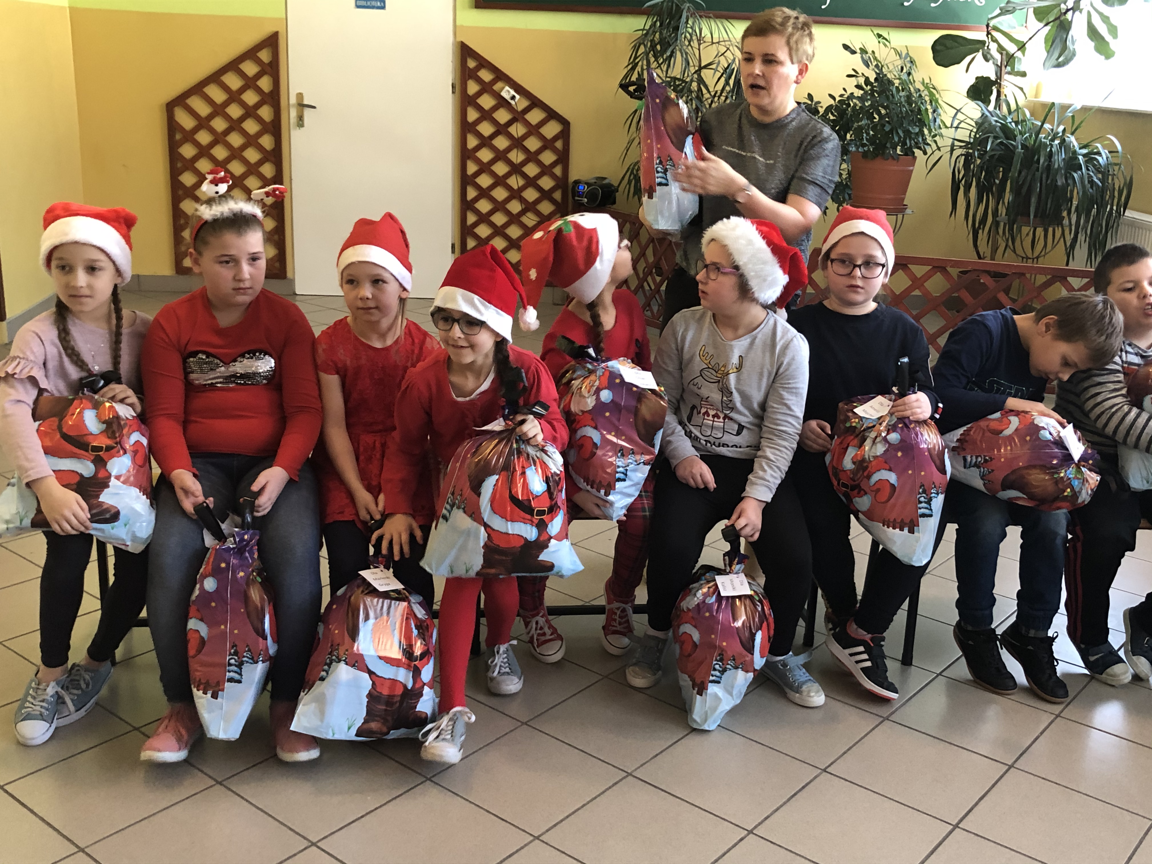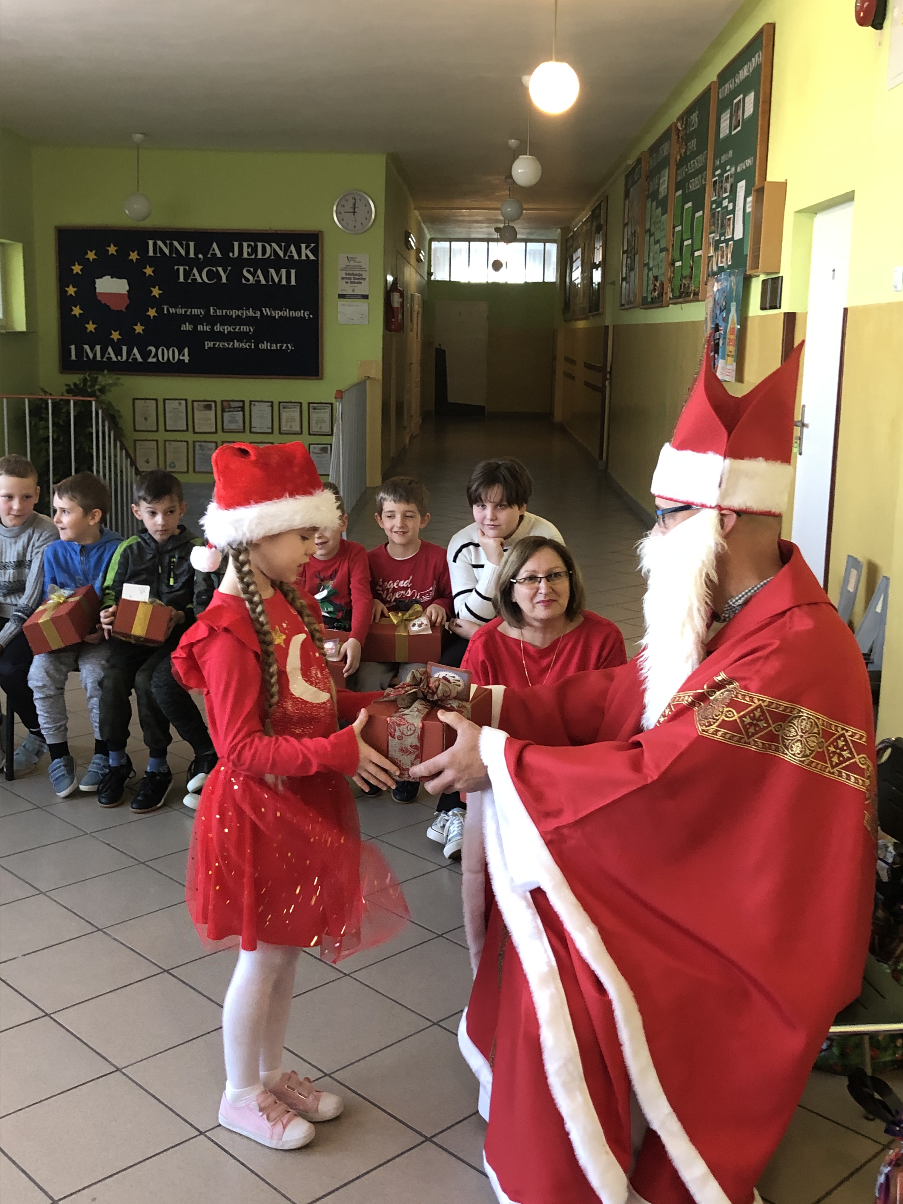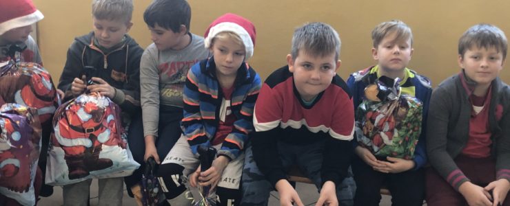 Św. Mikołaj, przywiózł ze sobą dla wszystkich piękne prezenty. Podczas ich wręczania, gość rozmawiał z dziećmi, zachęcał ich, aby były grzeczne i słuchały swoich rodziców oraz pań w szkole. Za piękne prezenty, dzieciaki odwdzięczyły się okrzykami radości, wspólną piosenką o Mikołaju, wierszem i kolorowymi rysunkami z podobizną naszego gościa.