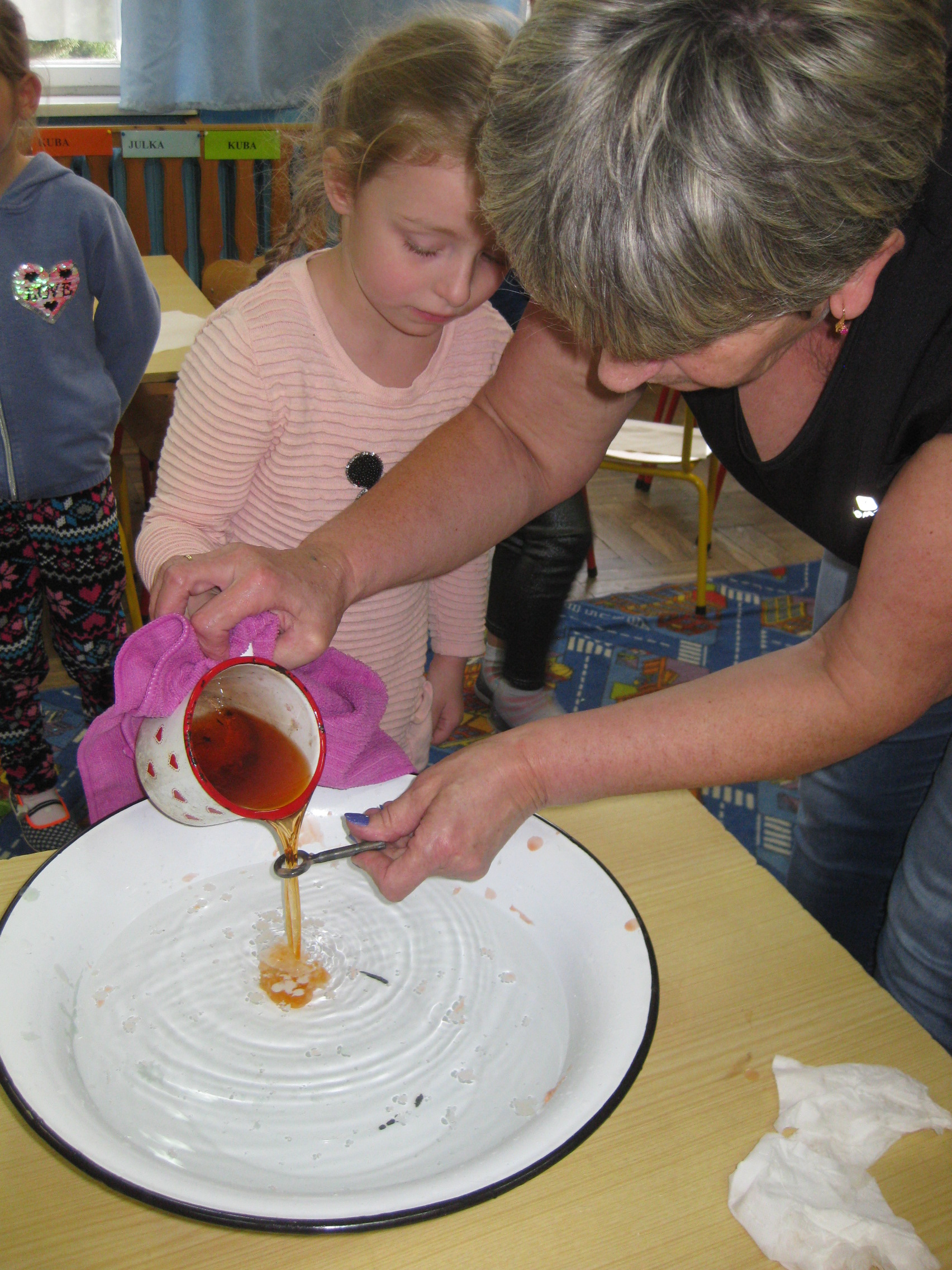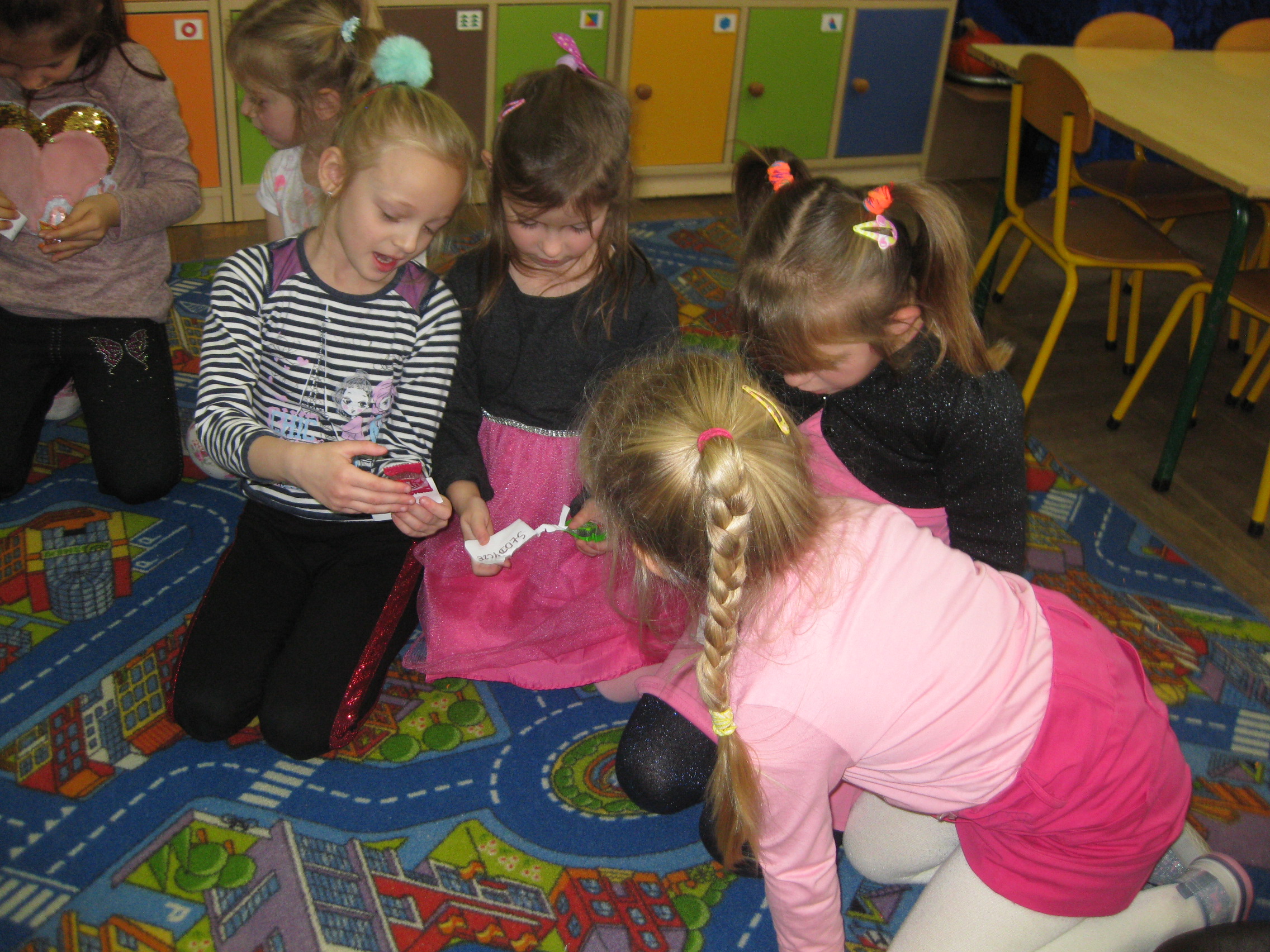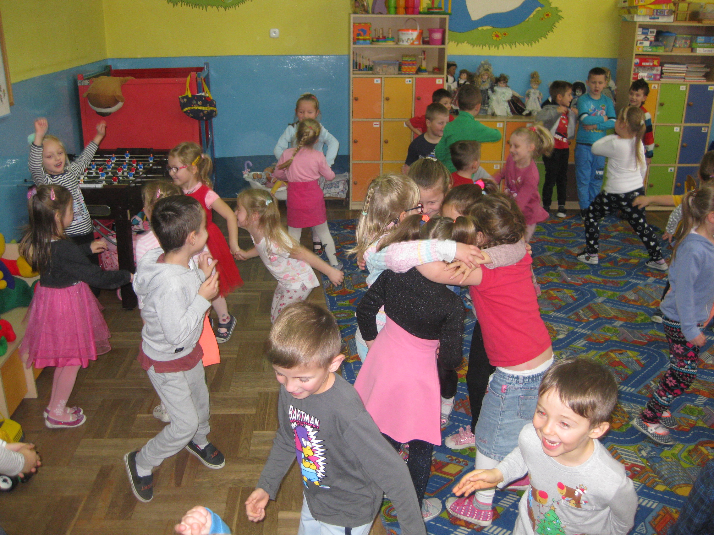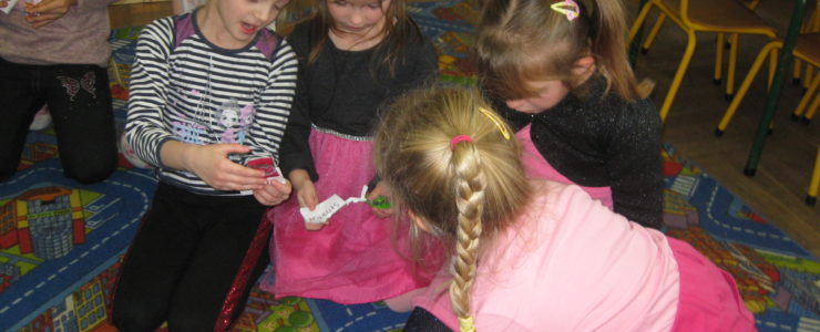 Andrzejki w naszym przedszkolu to już tradycja. Ten dzień był dniem radosnych zabaw i wróżb, w których dzieci mogły poznać swoją bliższą i dalszą przyszłość. Nie zabrakło przekłuwania serduszek z imionami, wróżenia za pomocą wirującej butelki, słodkich cukierków z wróżbą na przyszłość. Wrzucały również monety do miski z wodą, aby marzenia wszystkim się spełniły. Wróżby przeplatane były tańcami oraz zabawami przy skocznej muzyce. Pod koniec oczywiście czekał na wszystkich słodki poczęstunek i lanie wosku.