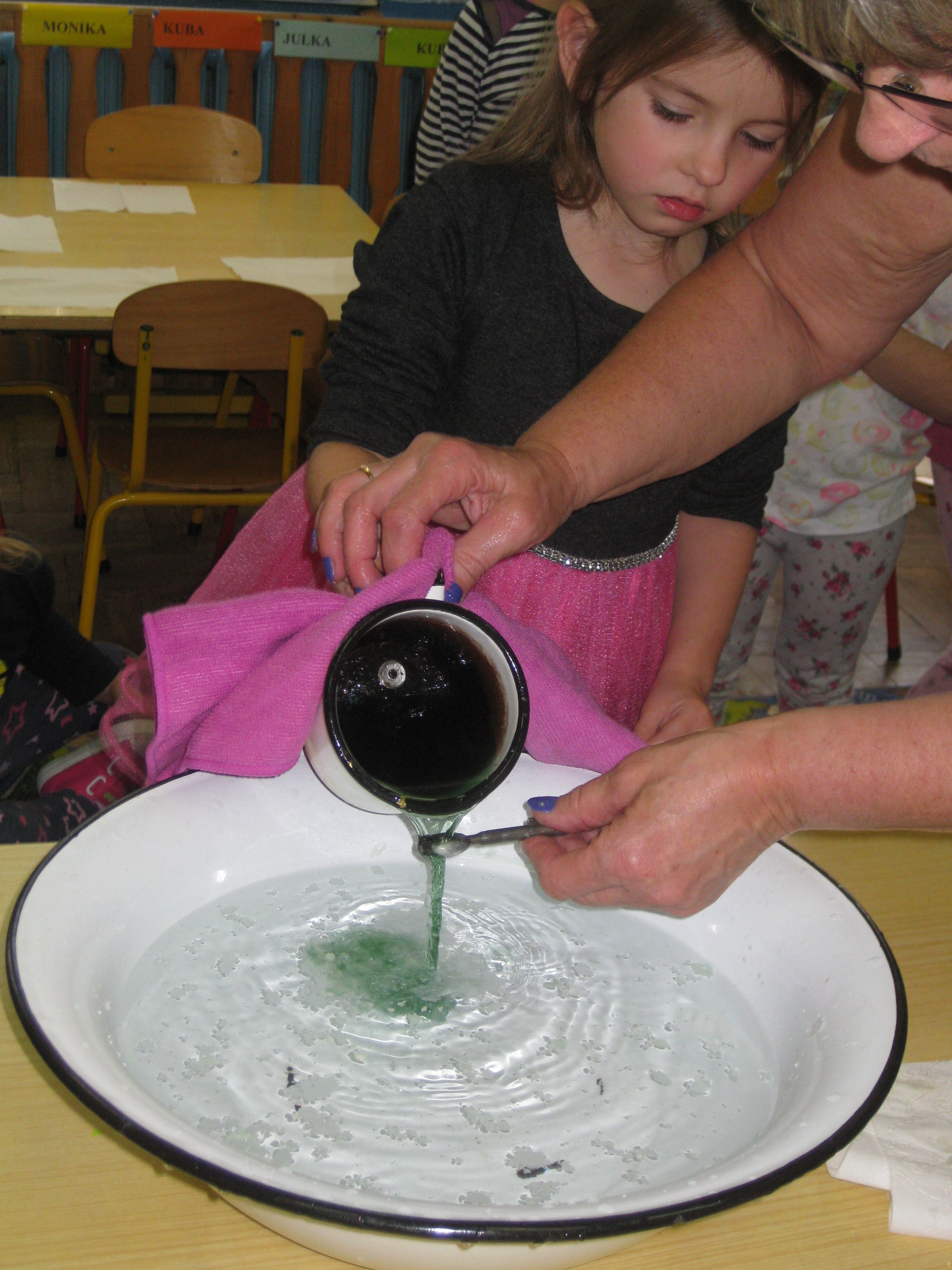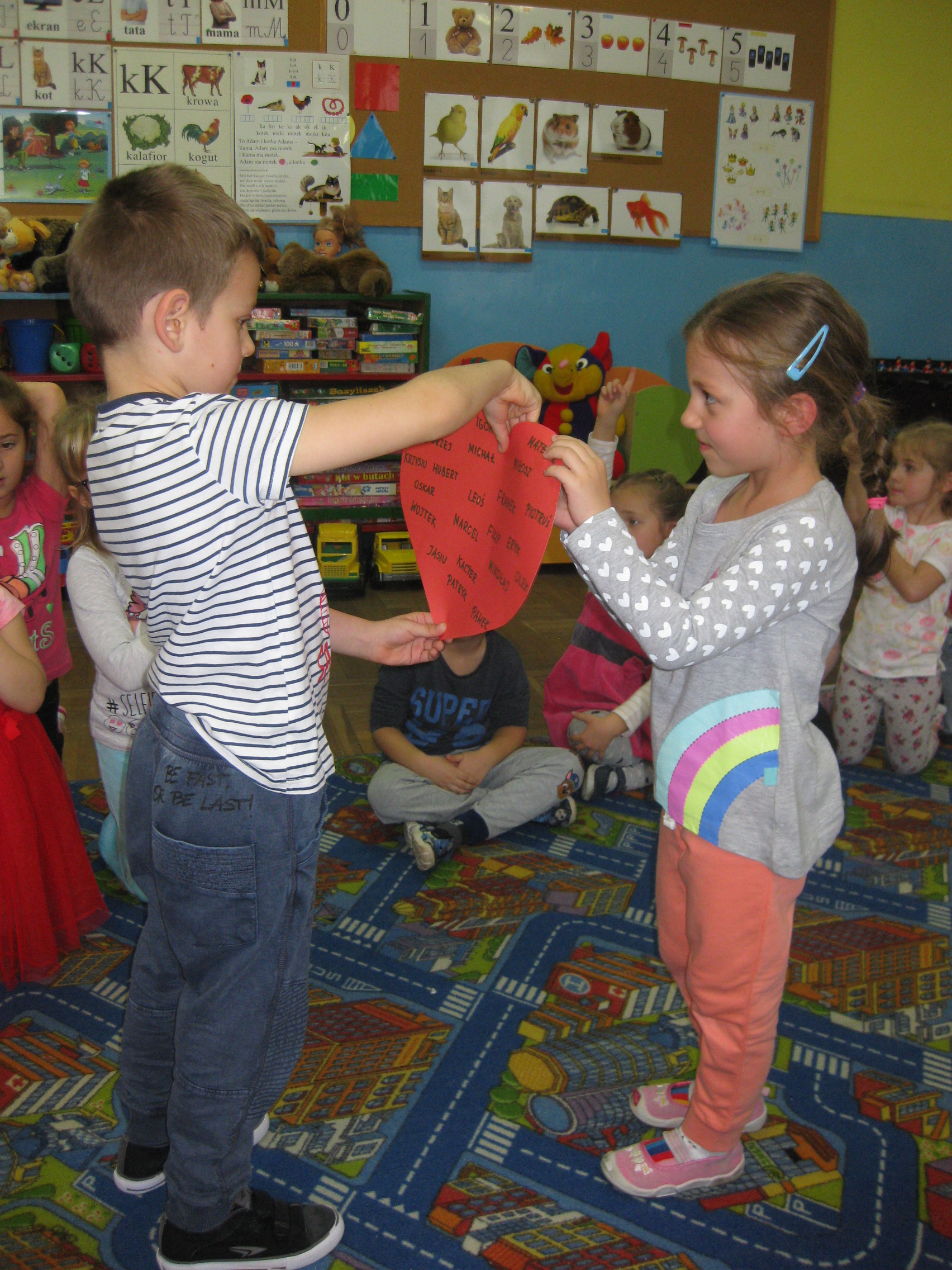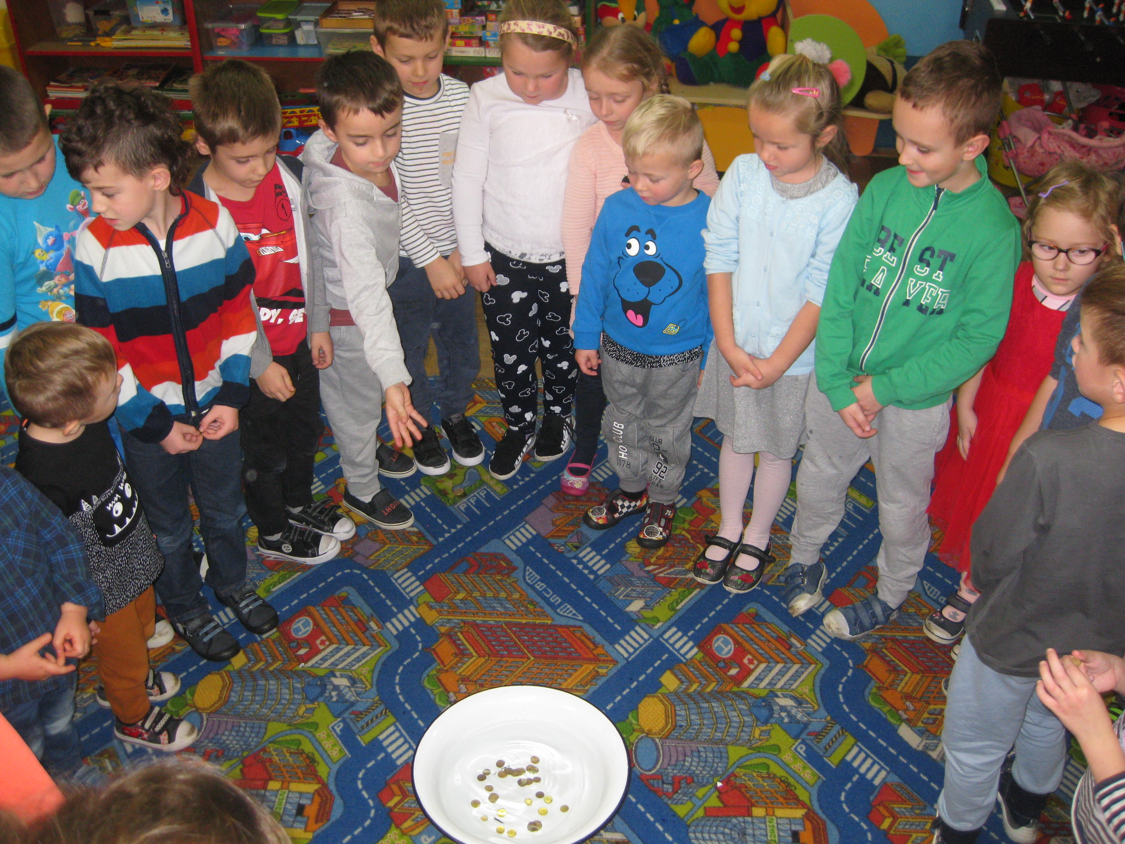 Andrzejki w naszym przedszkolu to już tradycja. Ten dzień był dniem radosnych zabaw i wróżb, w których dzieci mogły poznać swoją bliższą i dalszą przyszłość. Nie zabrakło przekłuwania serduszek z imionami, wróżenia za pomocą wirującej butelki, słodkich cukierków z wróżbą na przyszłość. Wrzucały również monety do miski z wodą, aby marzenia wszystkim się spełniły. Wróżby przeplatane były tańcami oraz zabawami przy skocznej muzyce. Pod koniec oczywiście czekał na wszystkich słodki poczęstunek i lanie wosku.