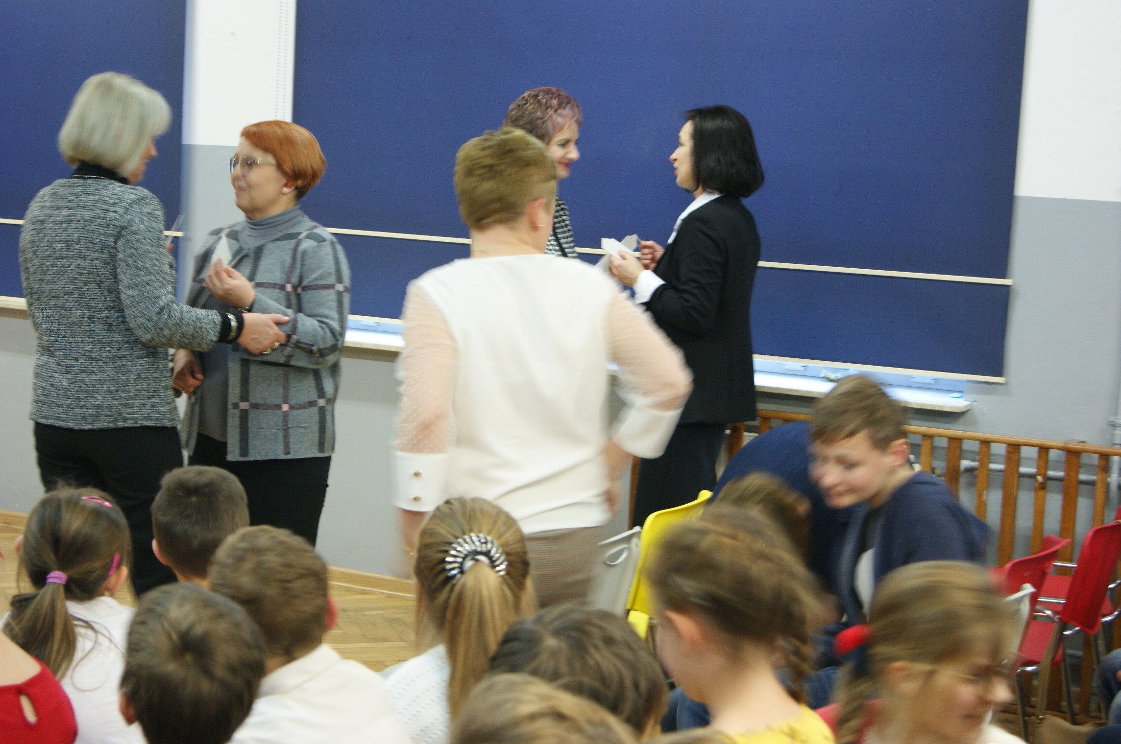 Po występach Dyrektor szkoły złożyła wszystkim obecnym tradycyjne życzenia i rozpoczęła łamanie się opłatkiem. Odśpiewanie kolędy „Bóg się rodzi” zakończyło spotkanie, wprowadzając obecnych w bożonarodzeniowy nastrój.