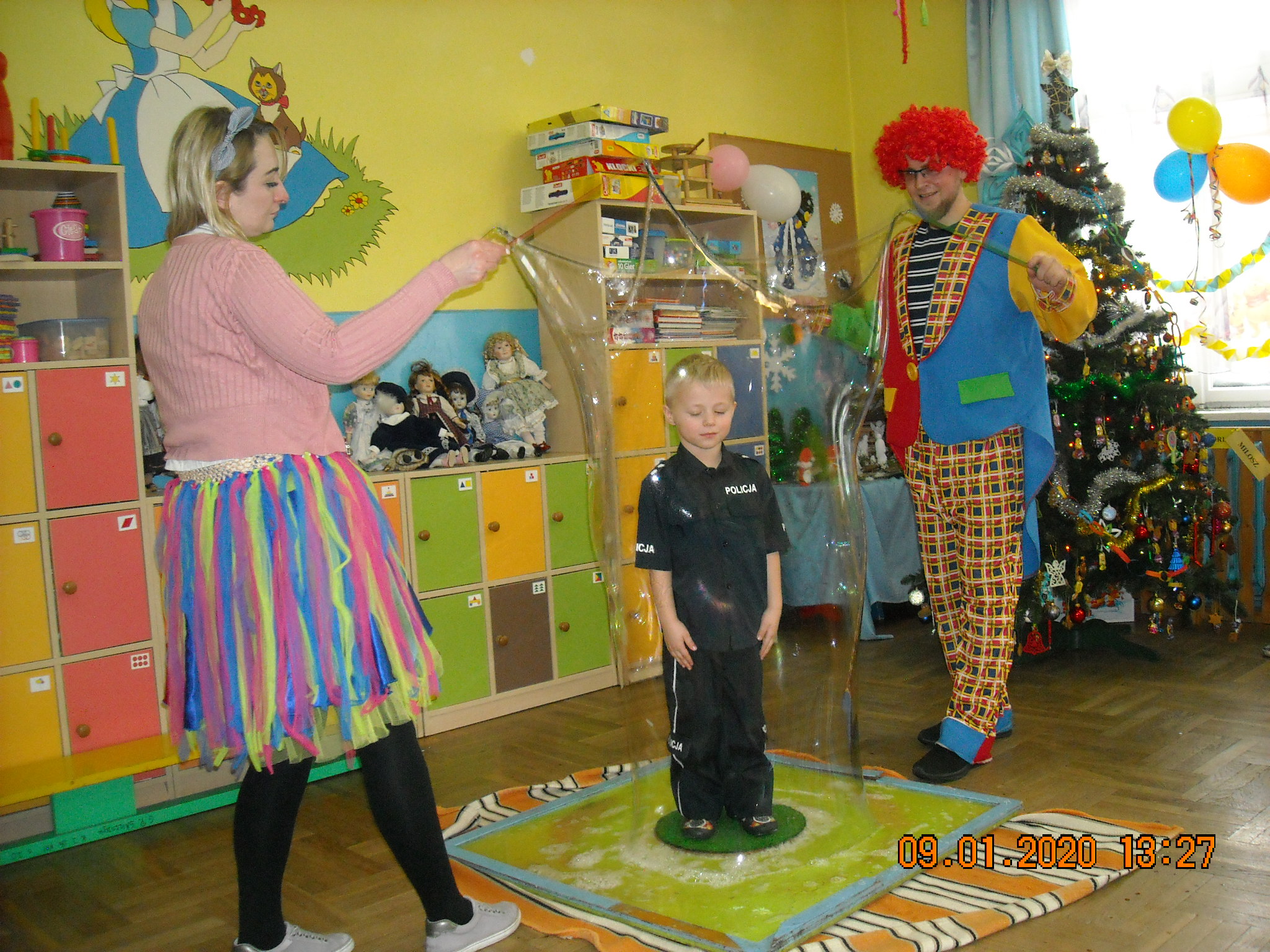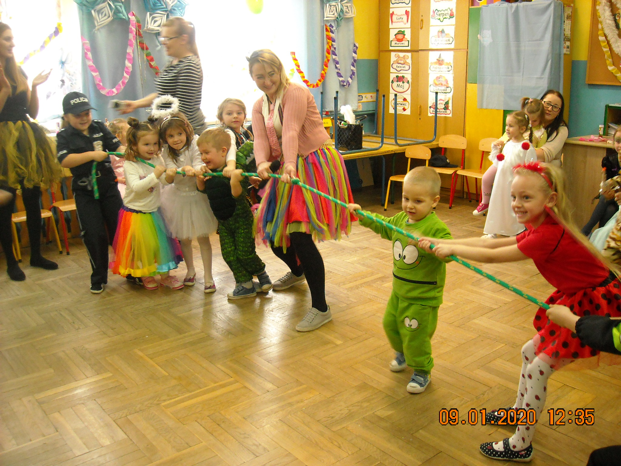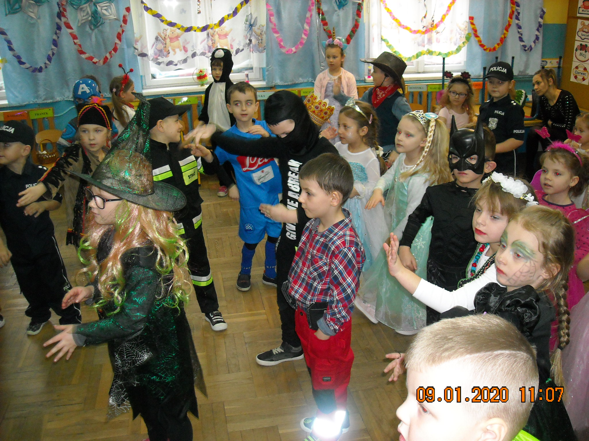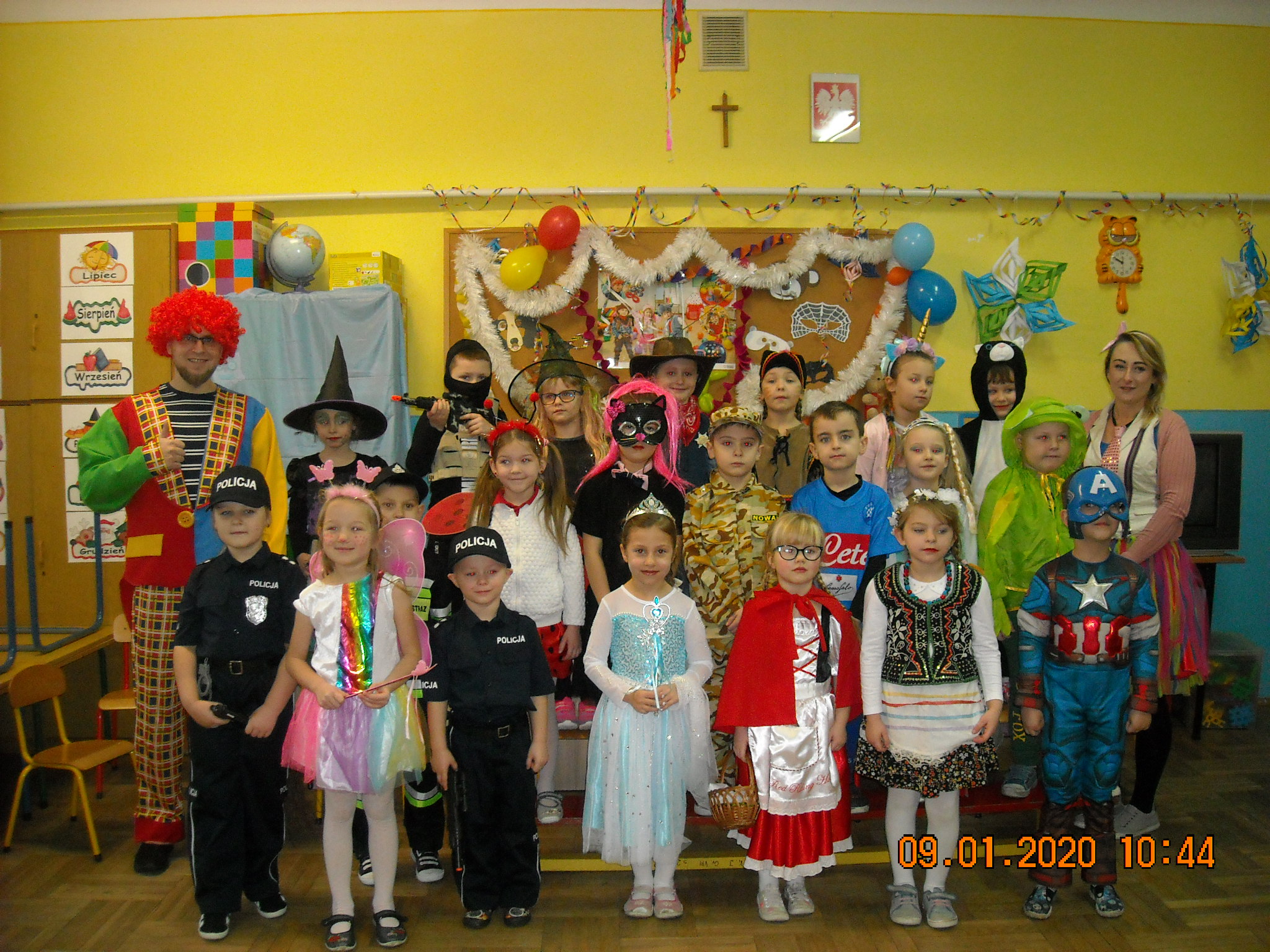 09.01.2020r. w przedszkolu odbył się Bal Karnawałowy. Już od wejścia można było wyczuć niecodzienną atmosferę. Panie dołożyły wszelkich starań, by wystrój sali wprowadził dzieci w radosny nastrój oraz zachęcał do wesołej zabawy. Dzieci przebrane w barwne i pomysłowe stroje bawiły się świetnie pod czujnym okiem klauna Edzia i Minionka. Skoczna muzyka zachęcała je do tańców. Nie zabrakło konkursów, a zwycięzcy nagradzani byli nagrodami. Największą atrakcją balu było zamykanie dzieci w bańkach mydlanych. Do domu przedszkolaki wracały we wspaniałych humorach, dzieląc się z rodzicami swoimi przeżyciami. Wspomnienia po balu długo pozostaną w naszej pamięci.